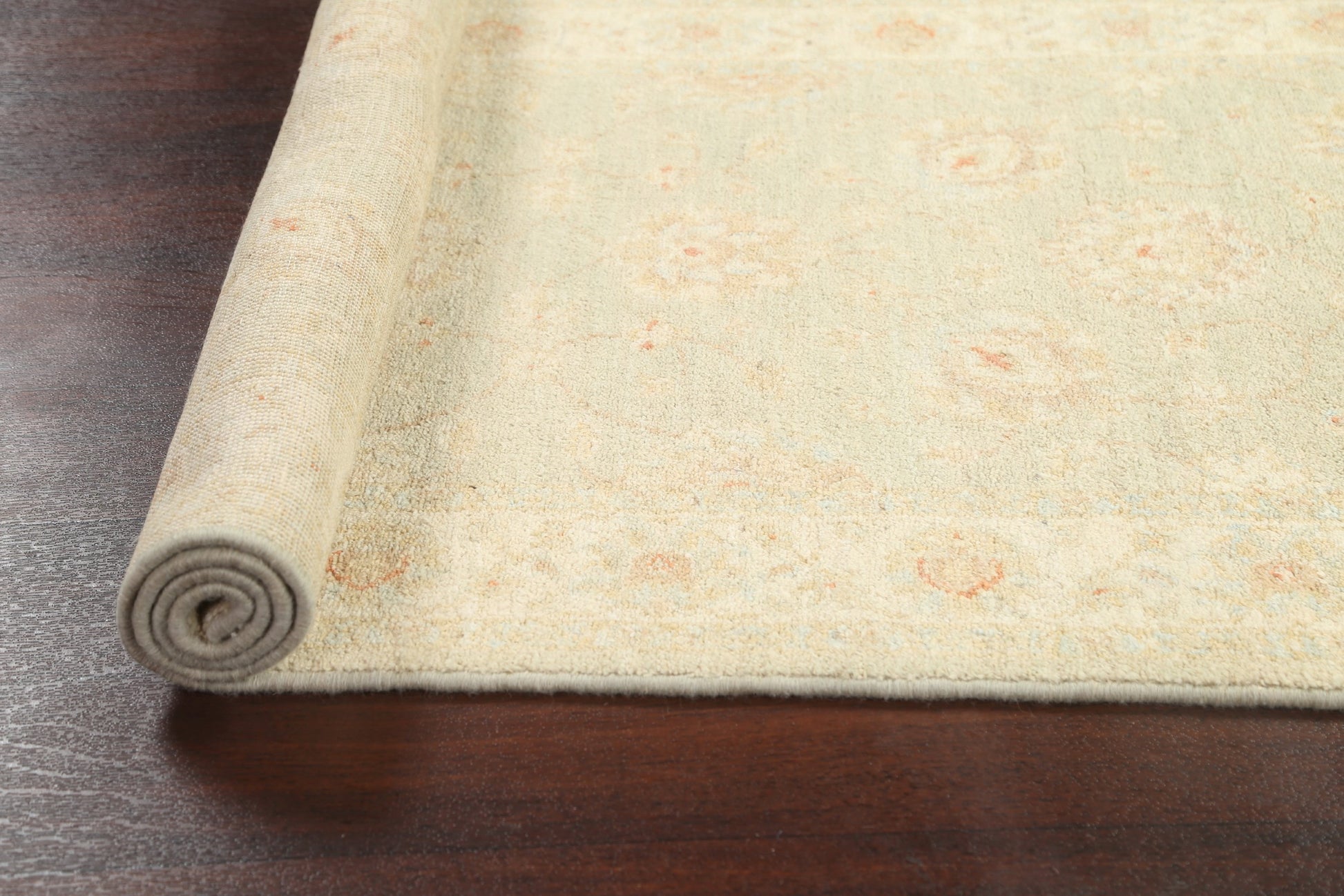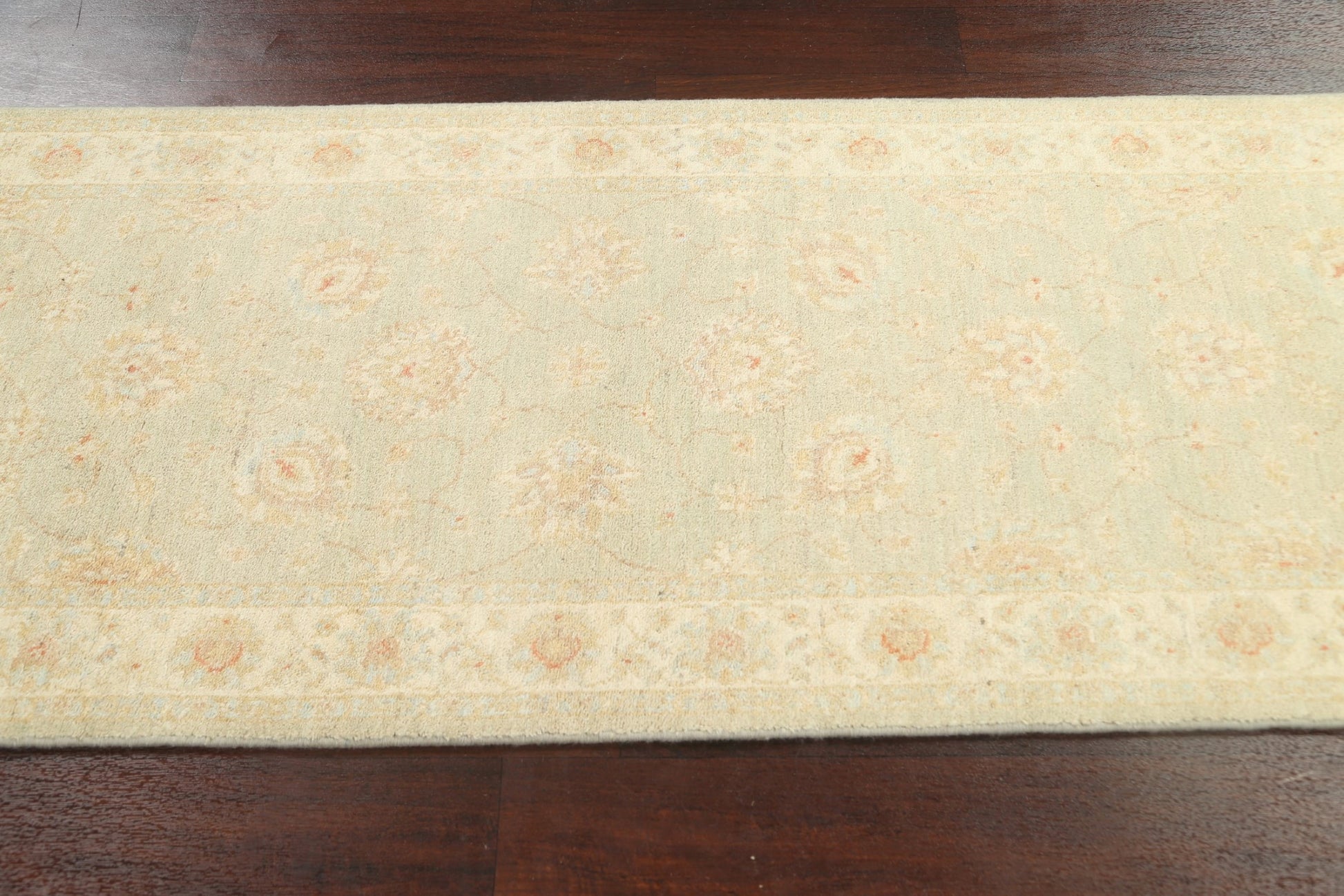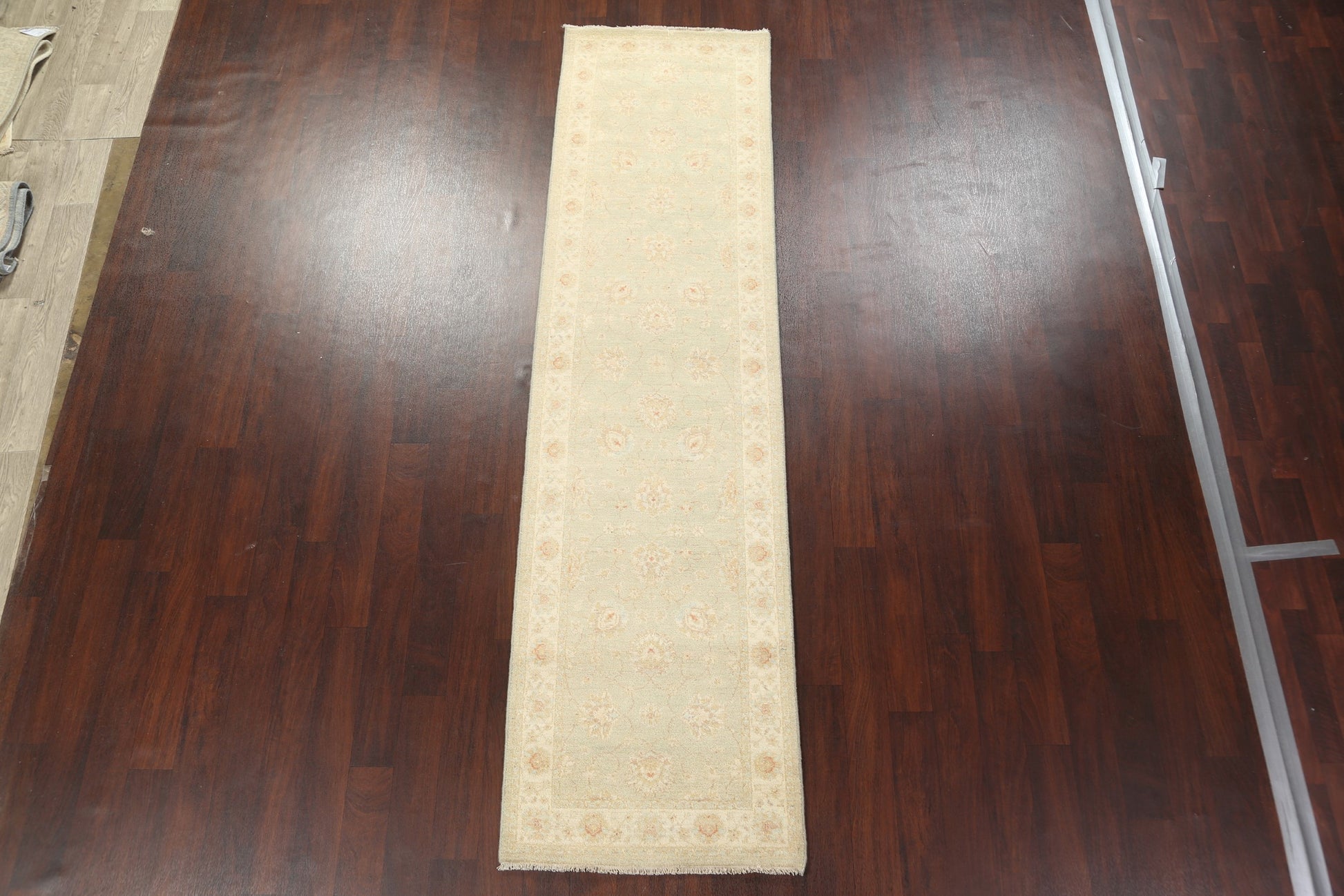 A Beautiful Genuine Pakistan Peshawar-Chobi rug is Hand Knotted by skillful weavers in Pakistan with 100% Wool Material. This rug is in New, First Quality condition. dimensions are 10' 0'' X 2' 8'' in foot and 305 X 81 in centimeter. the primary color is Green.