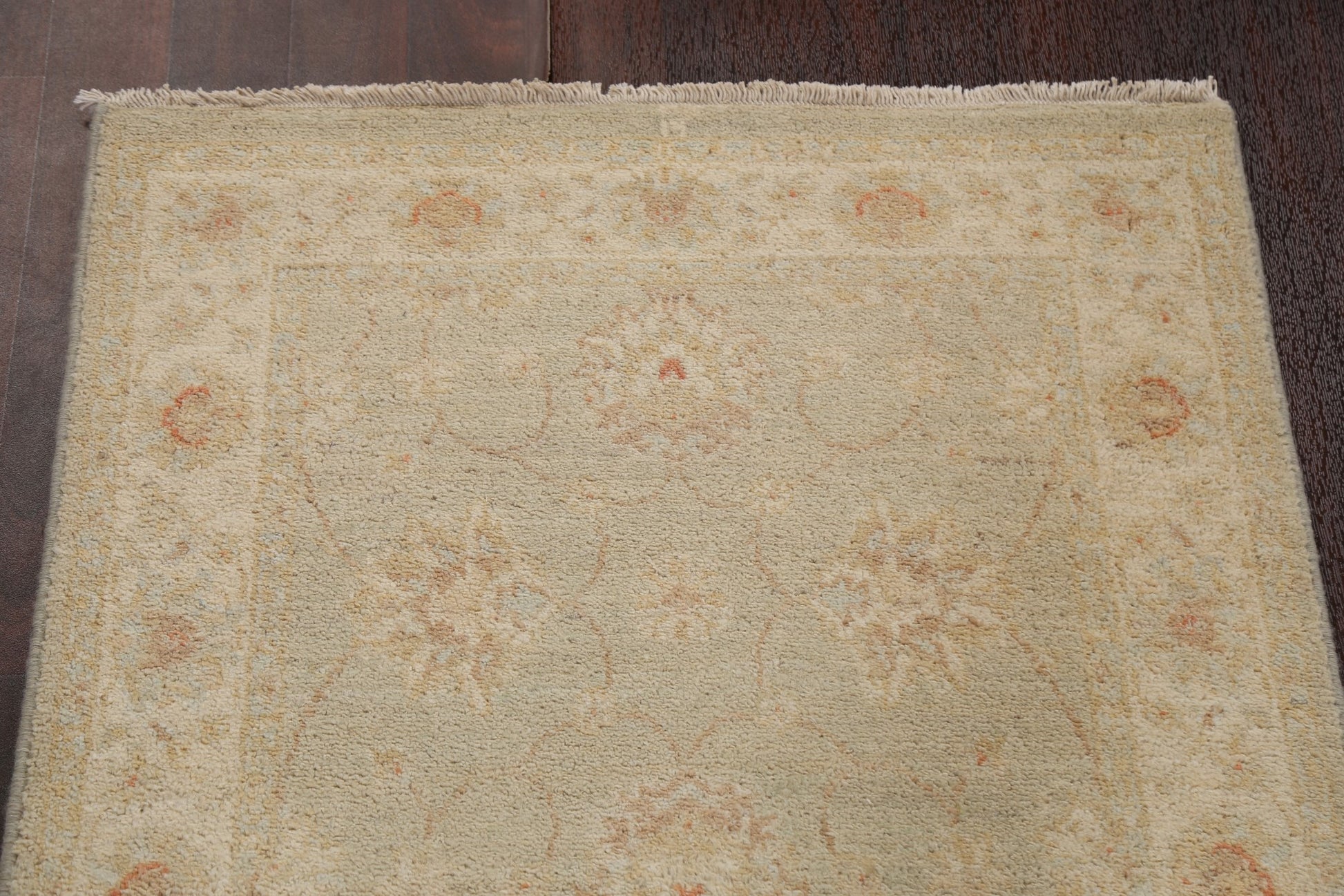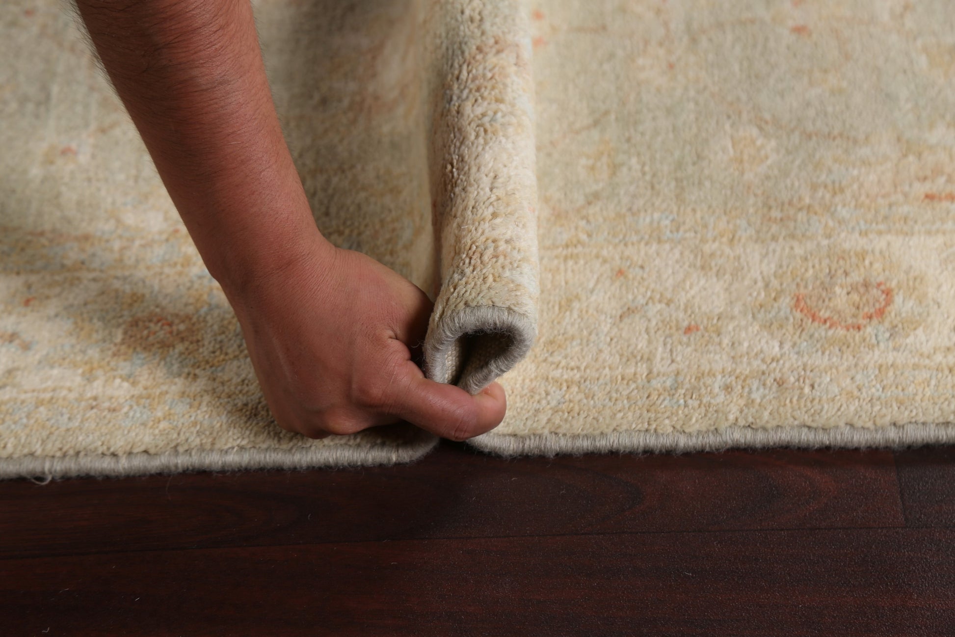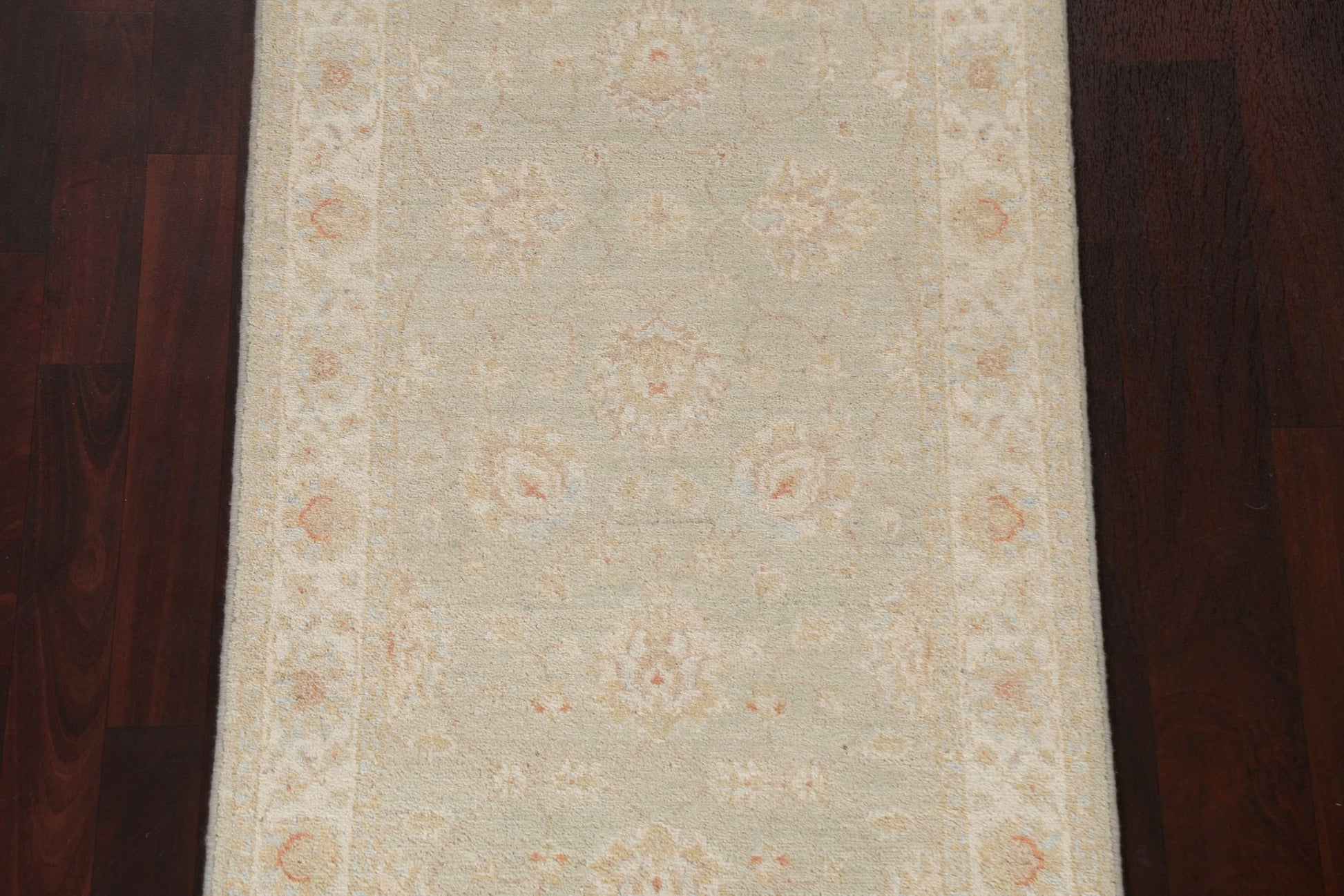 A Beautiful Genuine Pakistan Peshawar-Chobi rug is Hand Knotted by skillful weavers in Pakistan with 100% Wool Material. This rug is in New, First Quality condition. dimensions are 10' 1'' X 2' 7'' in foot and 307 X 79 in centimeter. the primary color is Green.