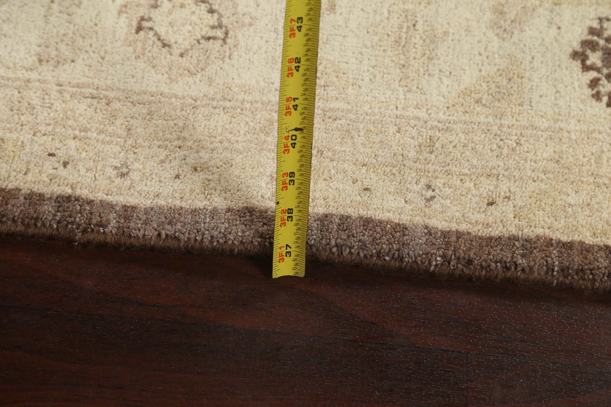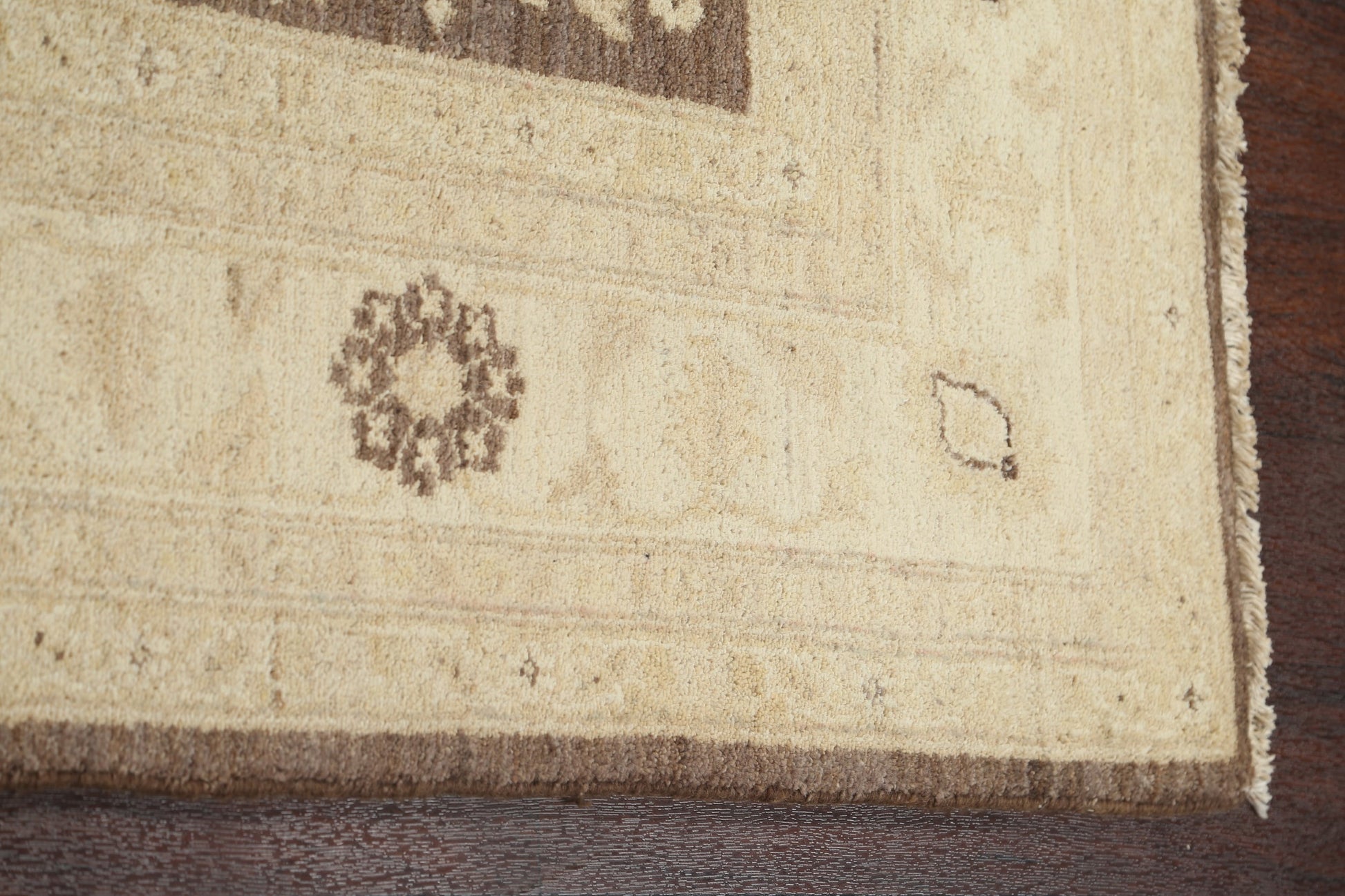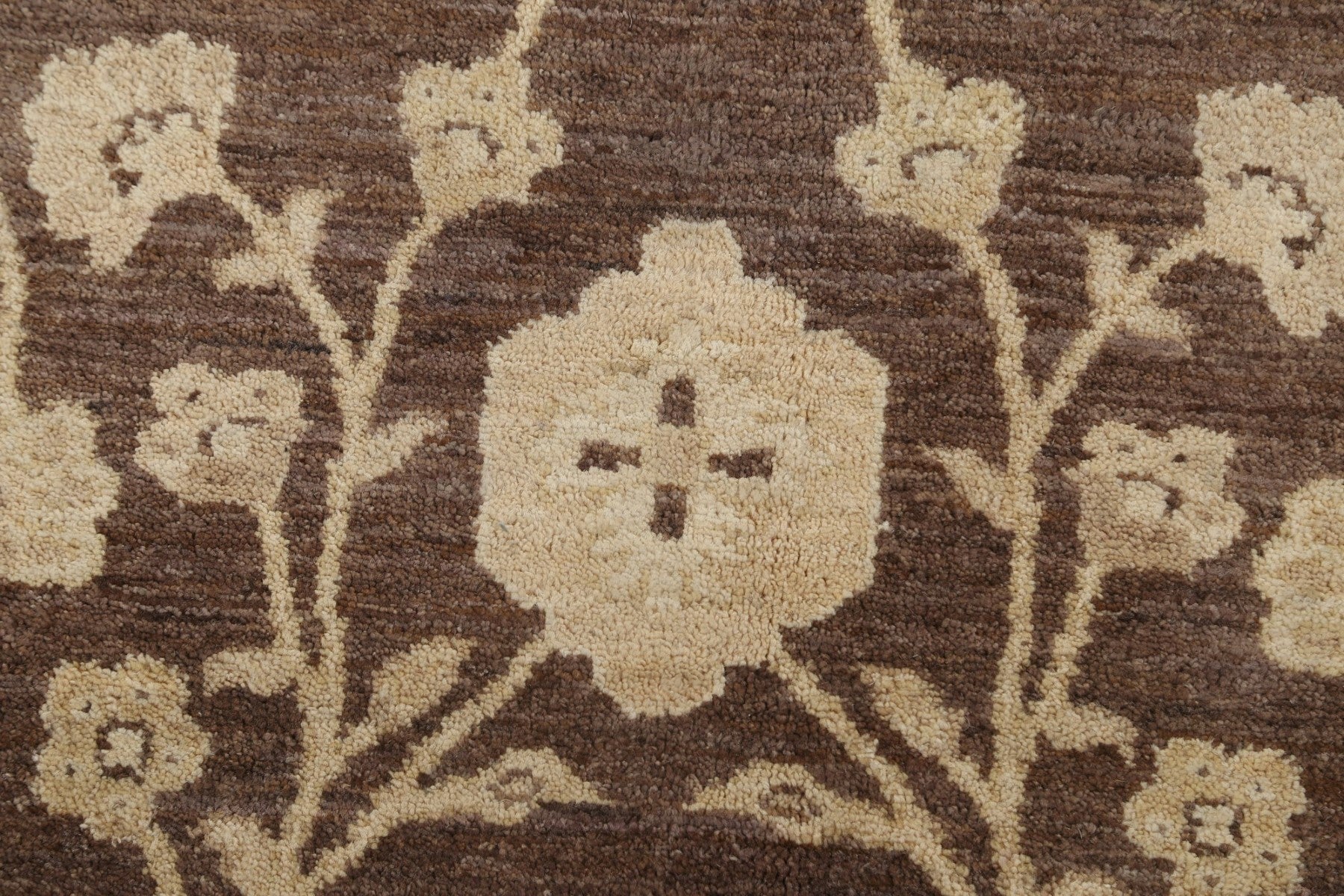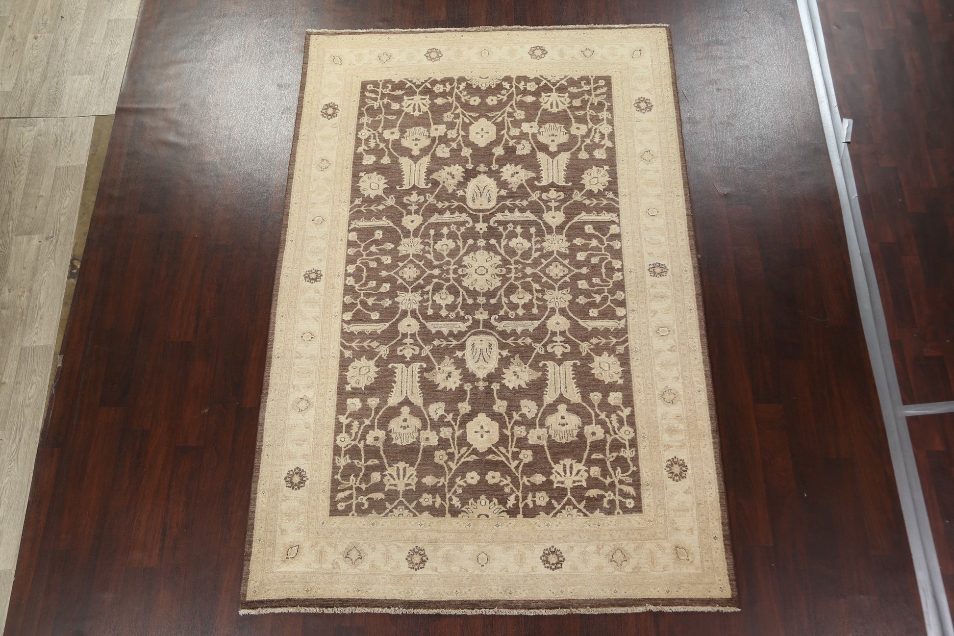 A Beautiful Genuine Pakistan Peshawar-Chobi rug is Hand Knotted by skillful weavers in Pakistan with 100% Wool Material. This rug is in New, First Quality condition. dimensions are 9' 9'' X 6' 6'' in foot and 297 X 198 in centimeter. the primary color is Brown.