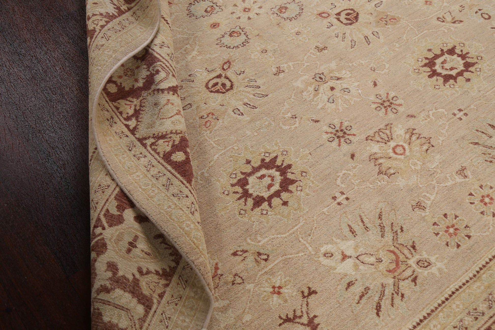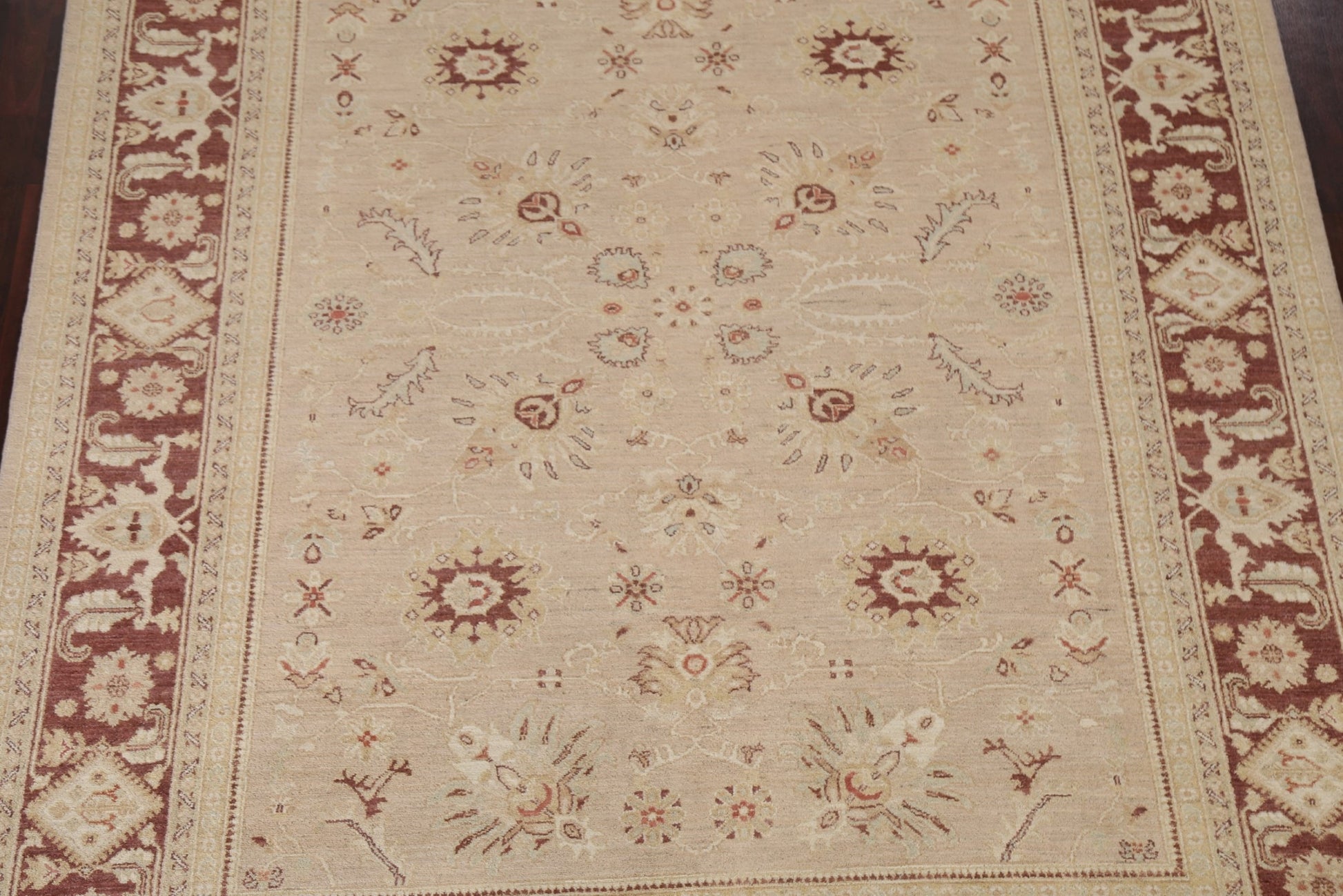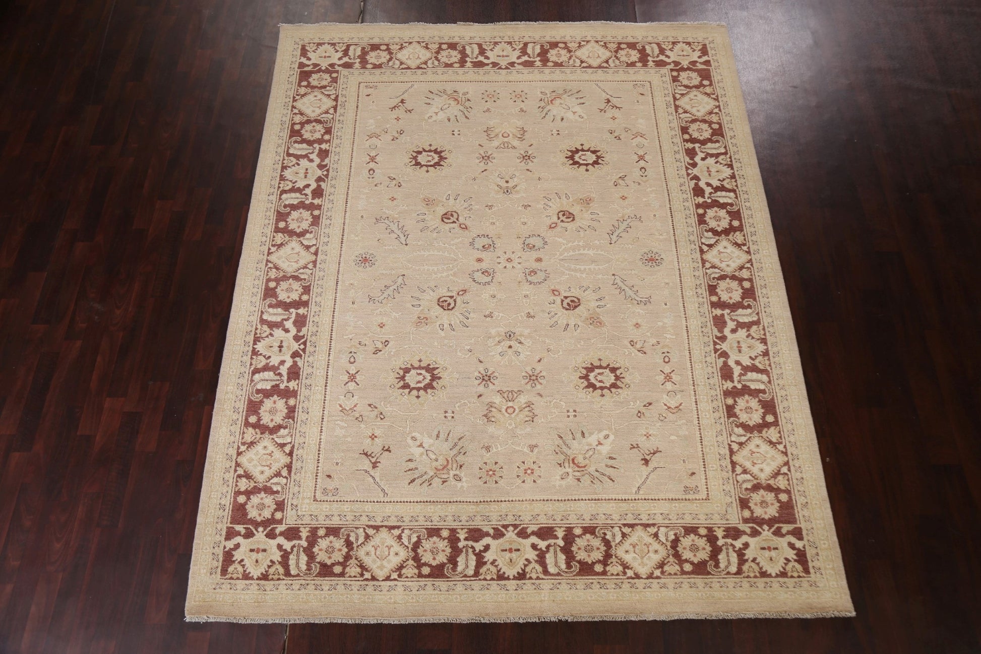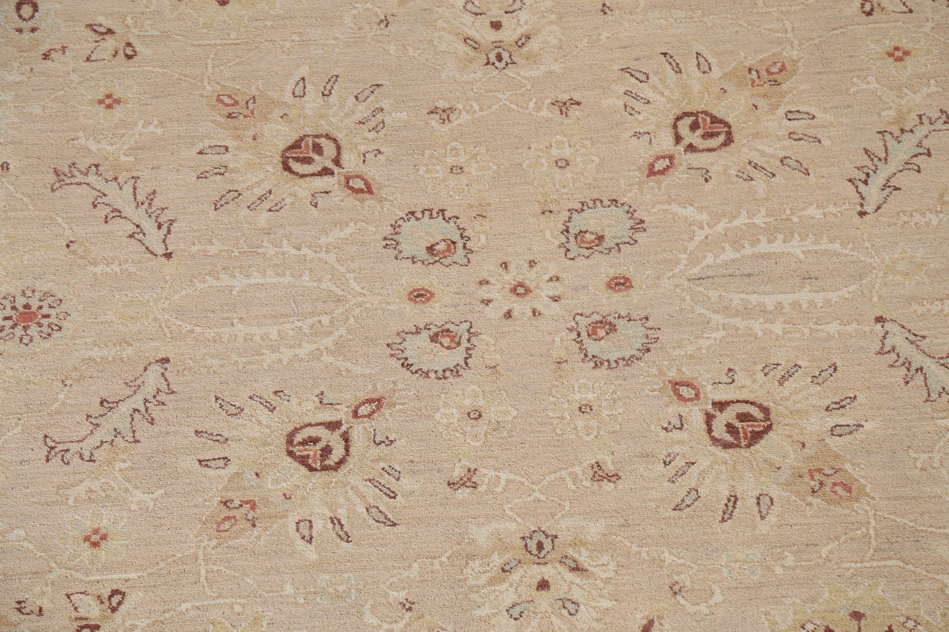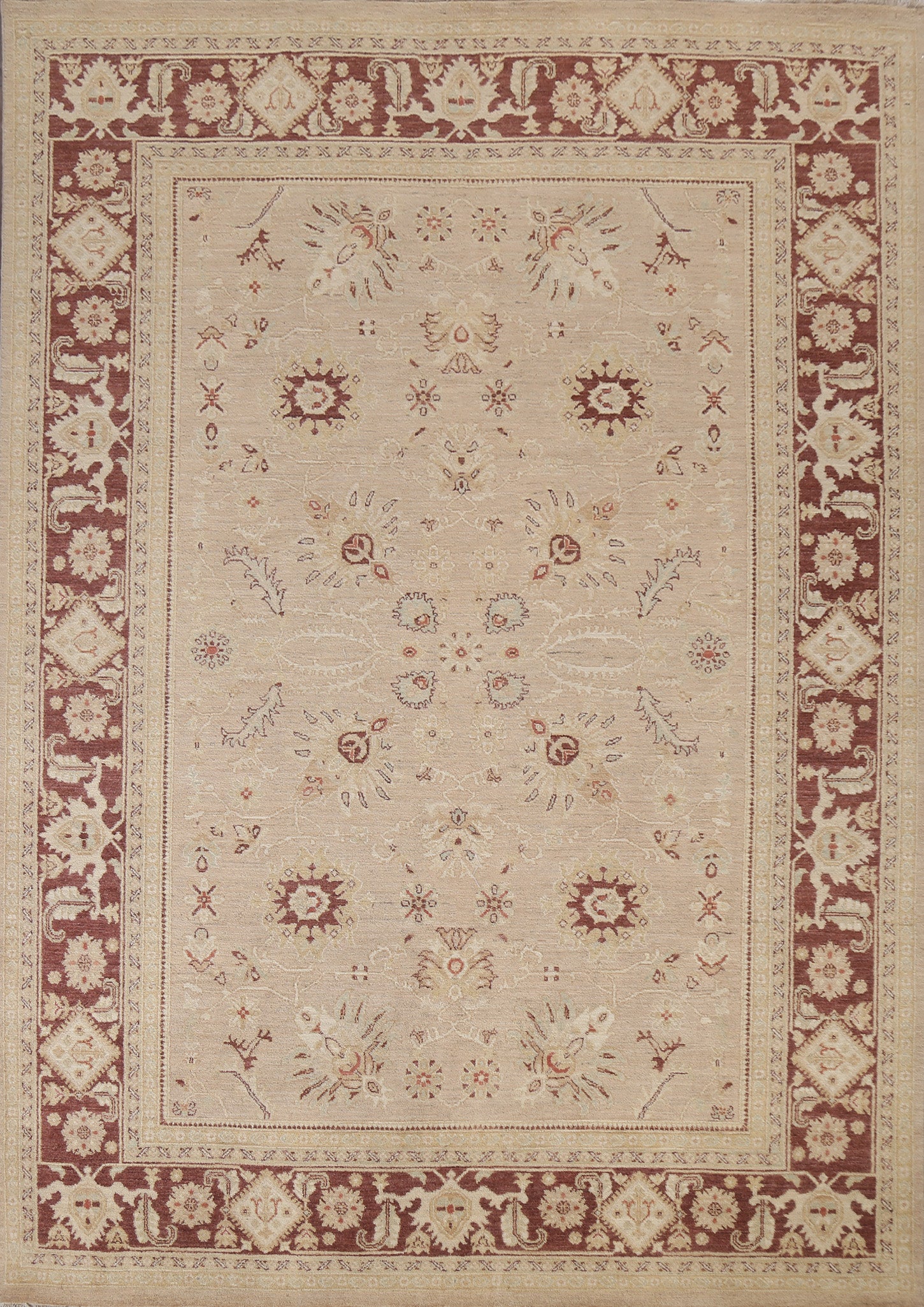 A Beautiful Genuine Pakistan Peshawar-Chobi rug is Hand Knotted by skillful weavers in Pakistan with 100% Wool Material. This rug is in New, First Quality condition. dimensions are 9' 10'' X 7' 11'' in foot and 300 X 241 in centimeter. the primary color is Beige & Ivories.