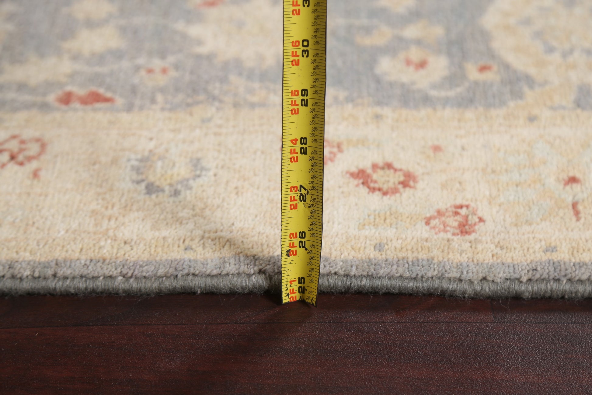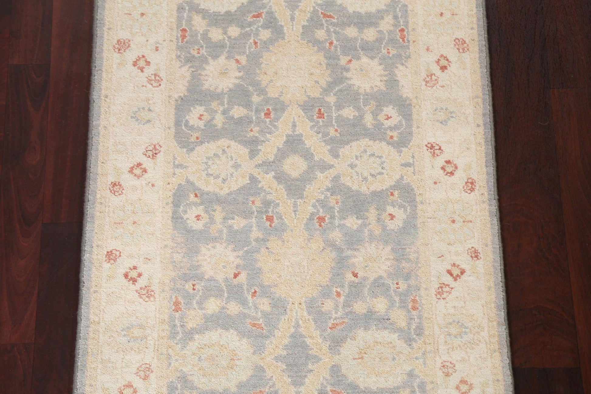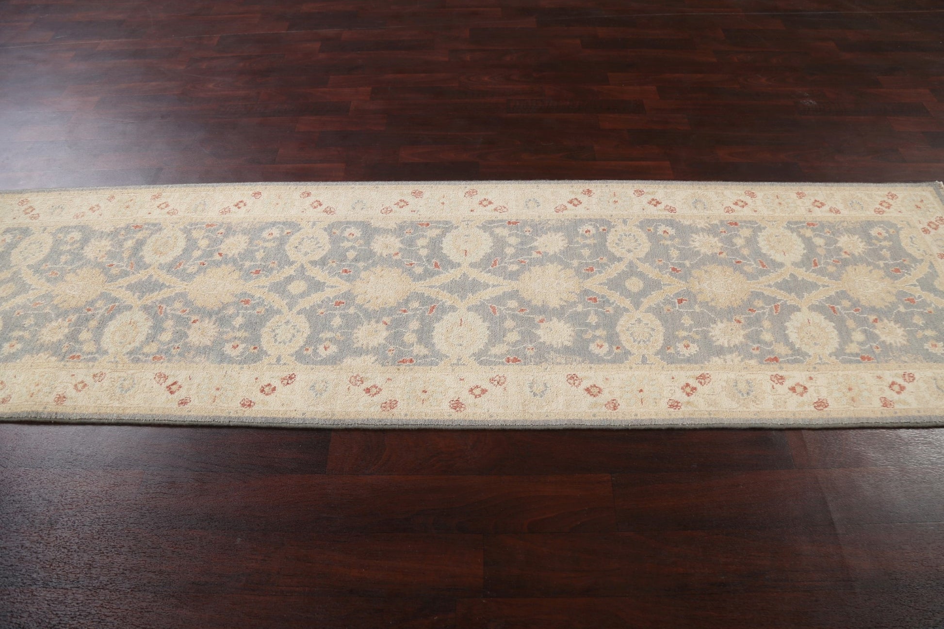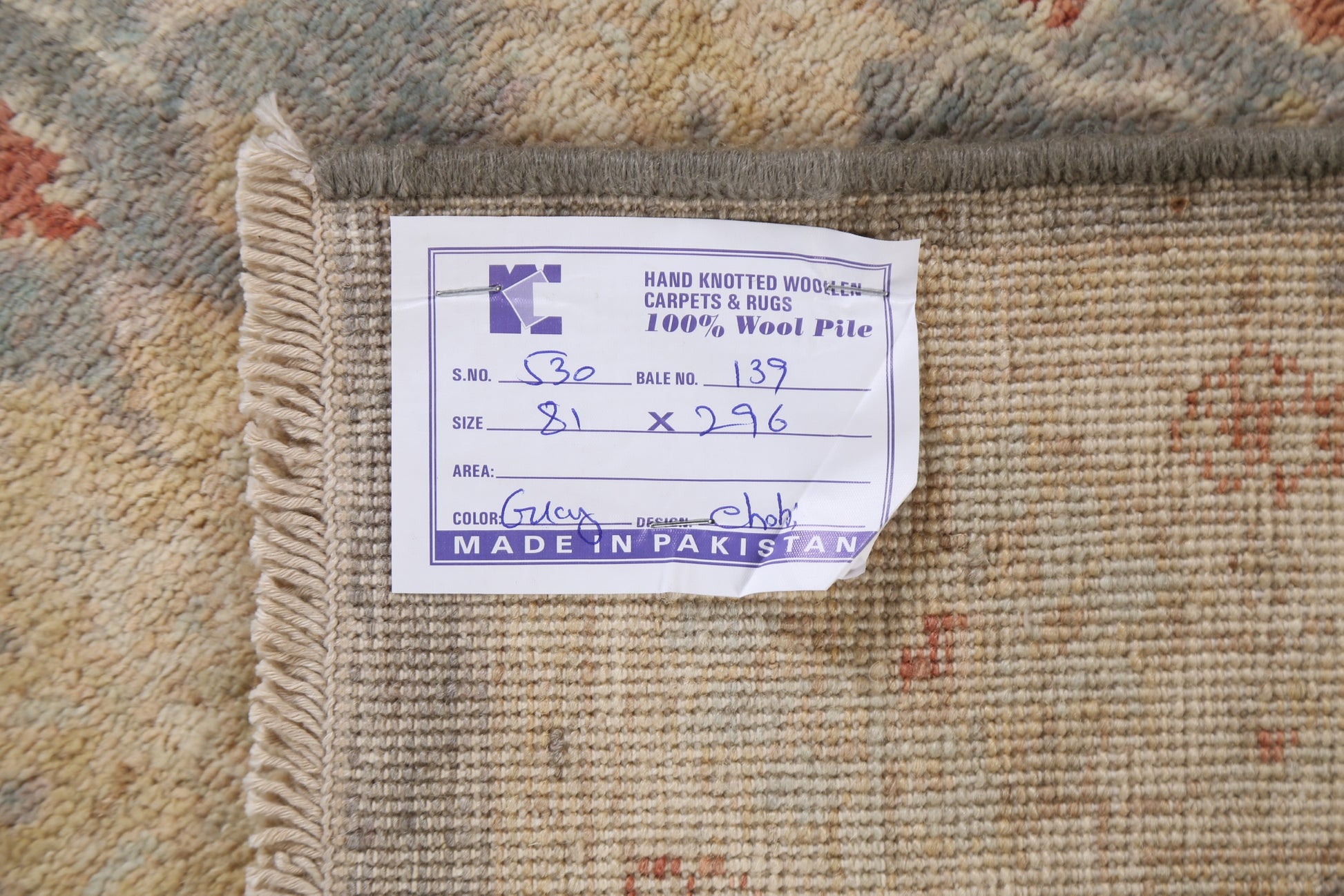 A Beautiful Genuine Pakistan Peshawar-Chobi rug is Hand Knotted by skillful weavers in Pakistan with 100% Wool Material. This rug is in New, First Quality condition. dimensions are 9' 10'' X 2' 9'' in foot and 300 X 84 in centimeter. the primary color is Greys & Charcoal.