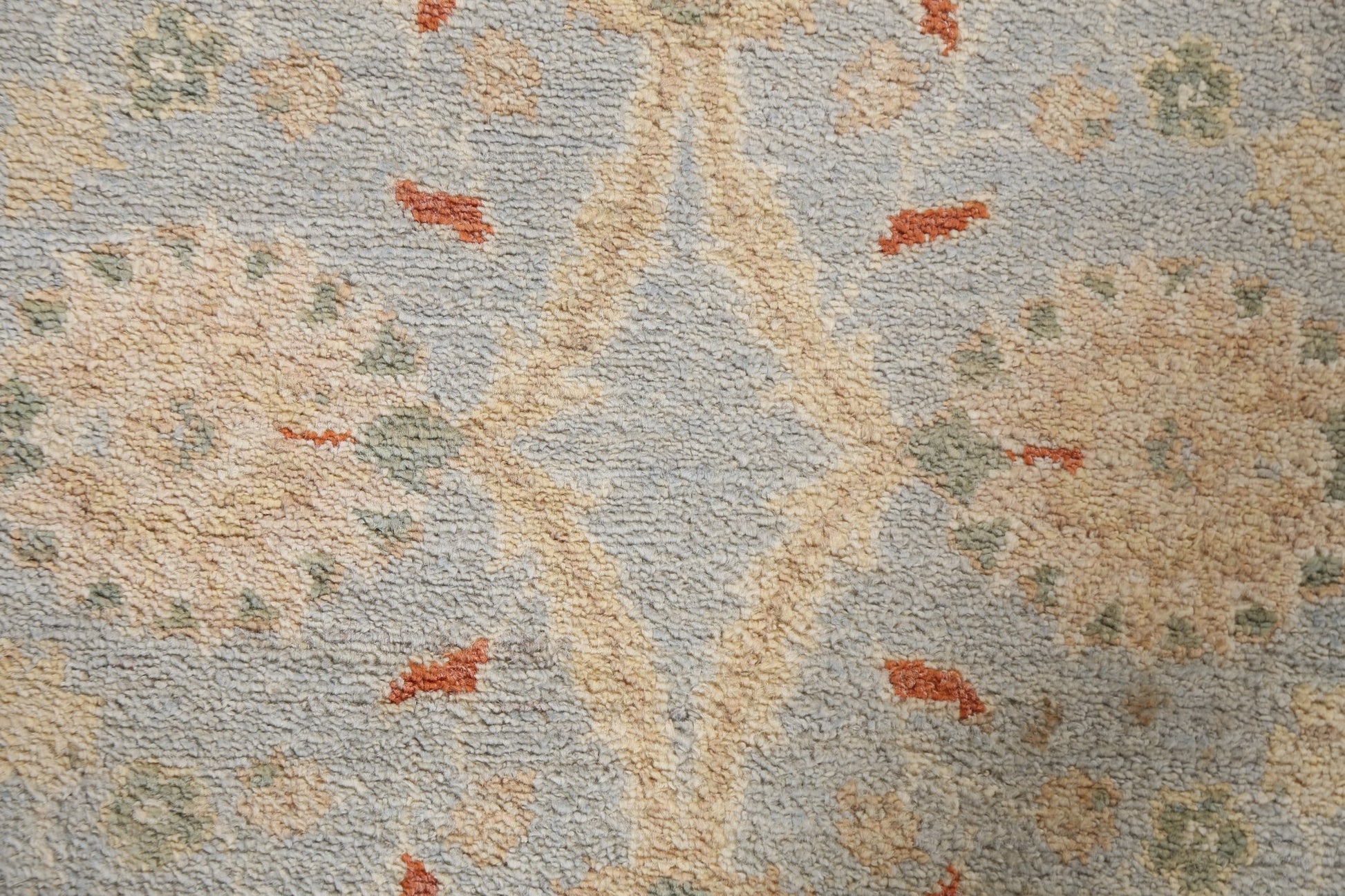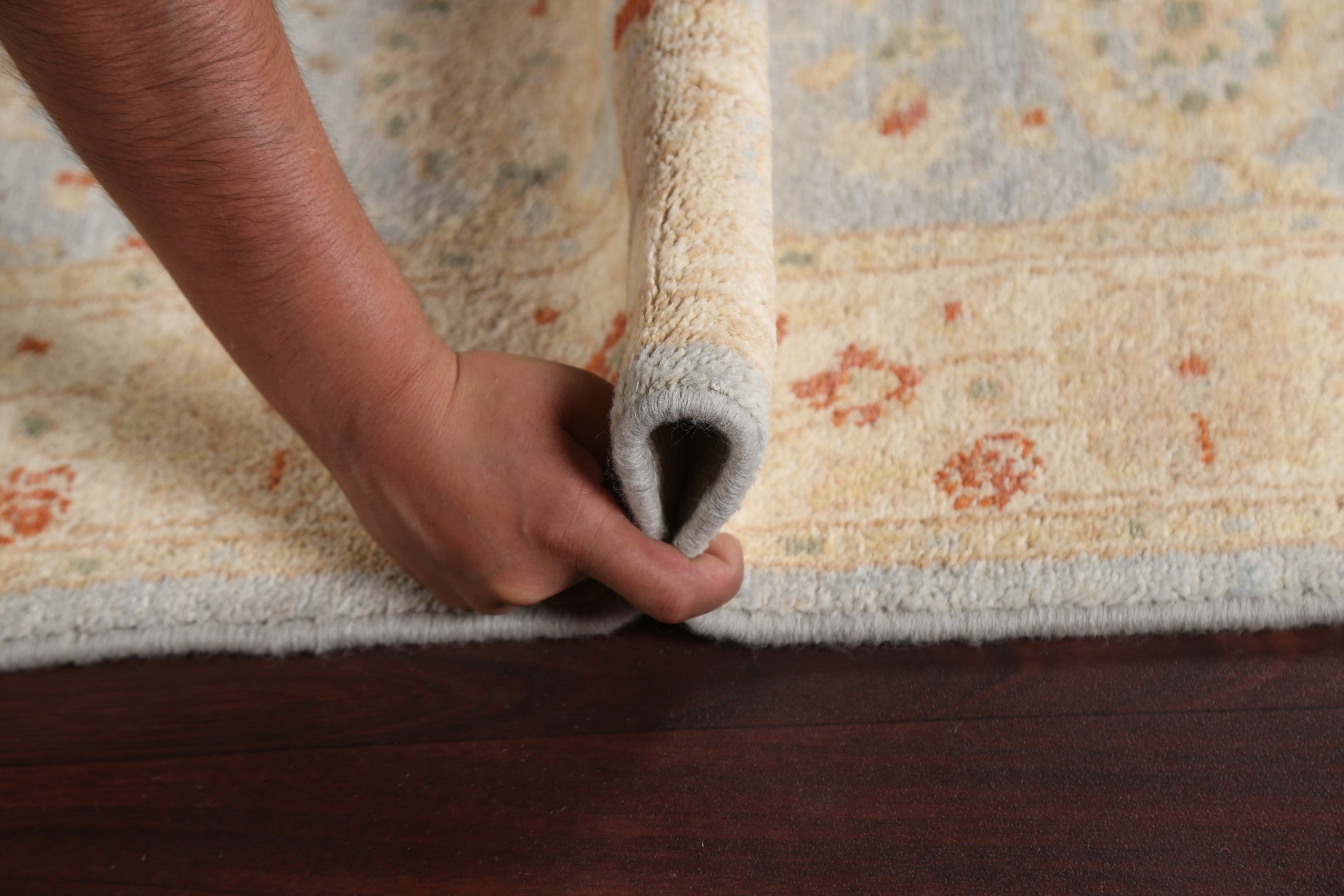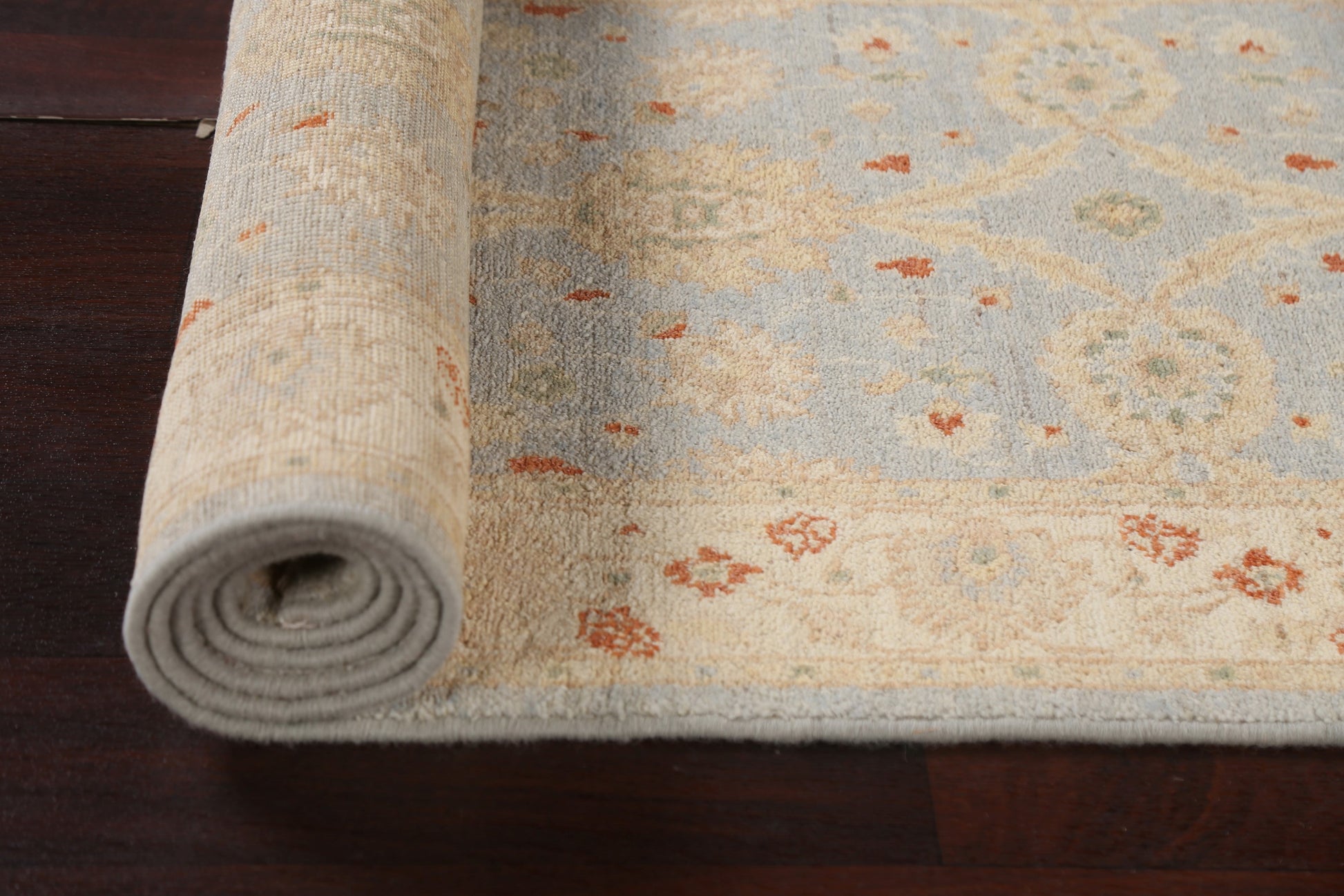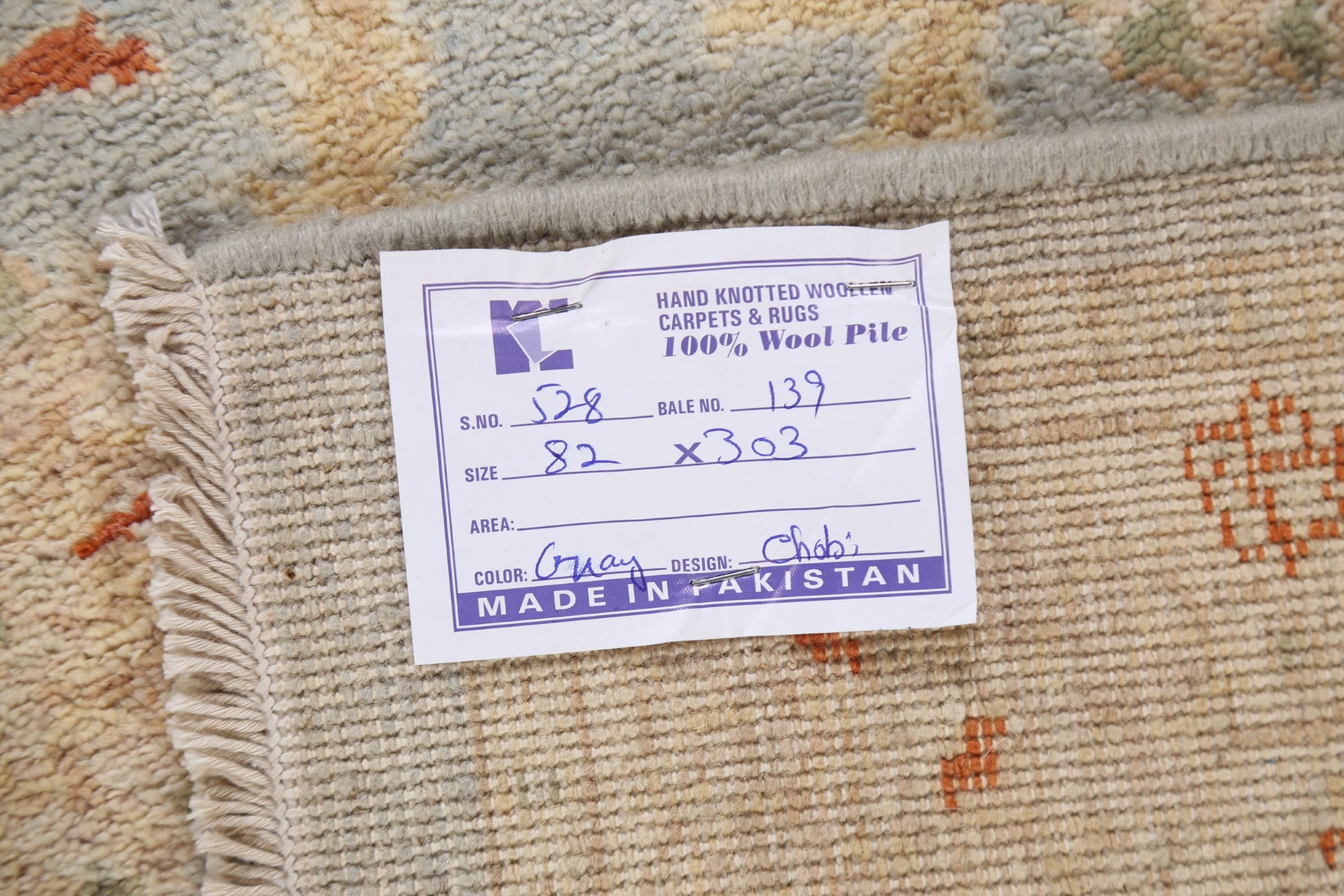 A Beautiful Genuine Pakistan Peshawar-Chobi rug is Hand Knotted by skillful weavers in Pakistan with 100% Wool Material. This rug is in New, First Quality condition. dimensions are 10' 0'' X 2' 9'' in foot and 305 X 84 in centimeter. the primary color is Navy Blue & Blues.