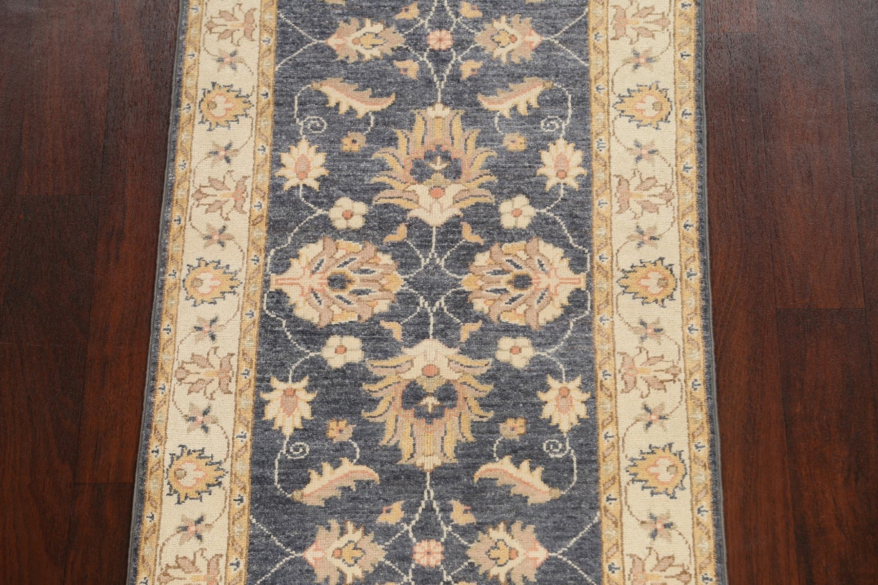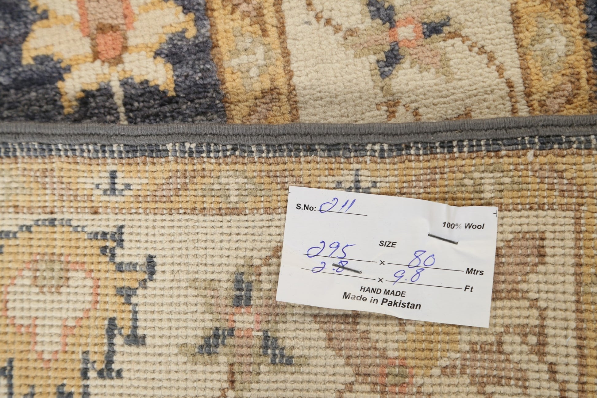 A Beautiful Genuine Pakistan Chobi-Peshawar rug is Hand Knotted by skillful weavers in Pakistan with 100% Wool Material. This rug is in New, First Quality condition. dimensions are 9' 8'' X 2' 8'' in foot and 295 X 81 in centimeter. the primary color is Greys & Charcoal.