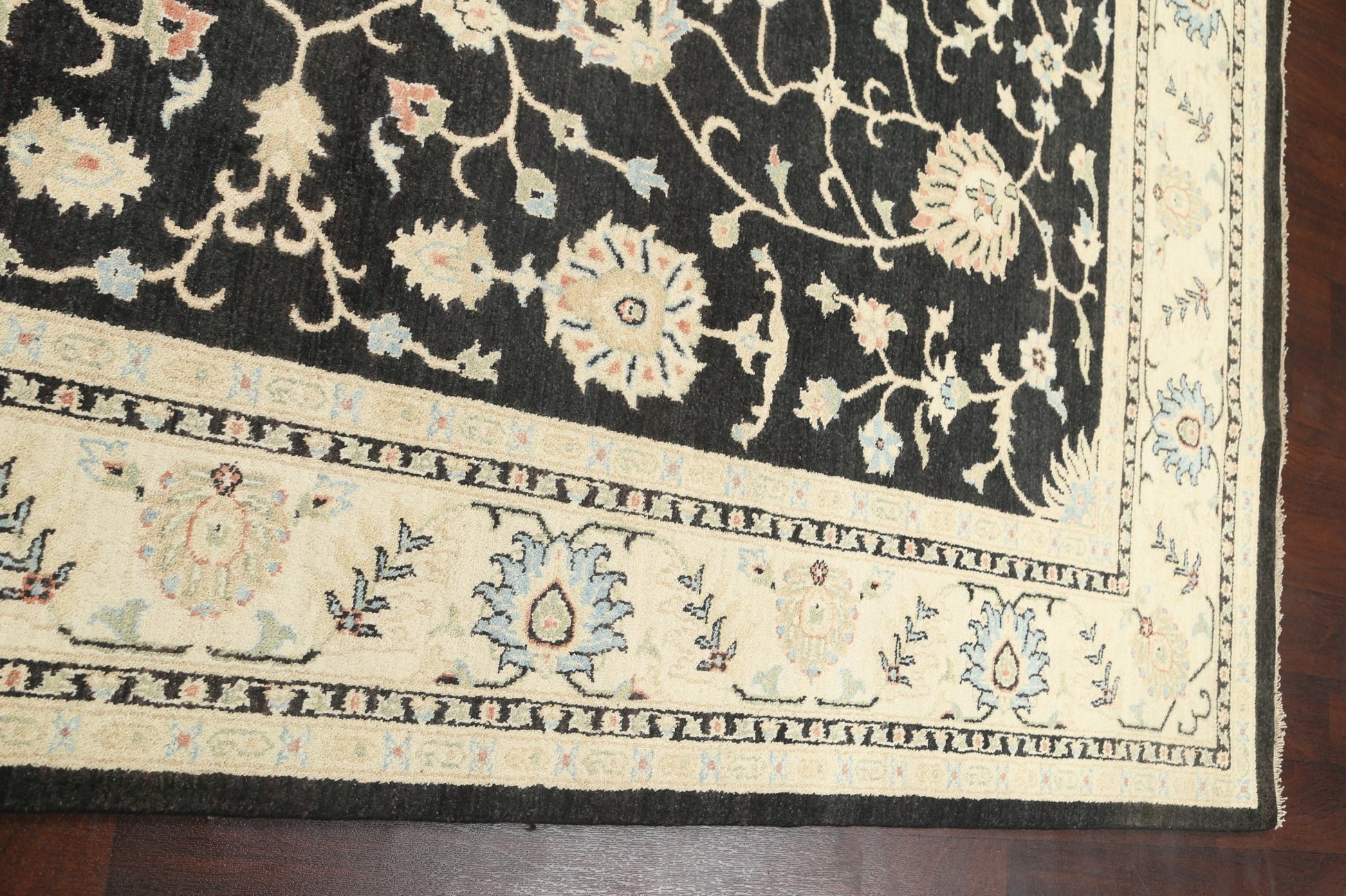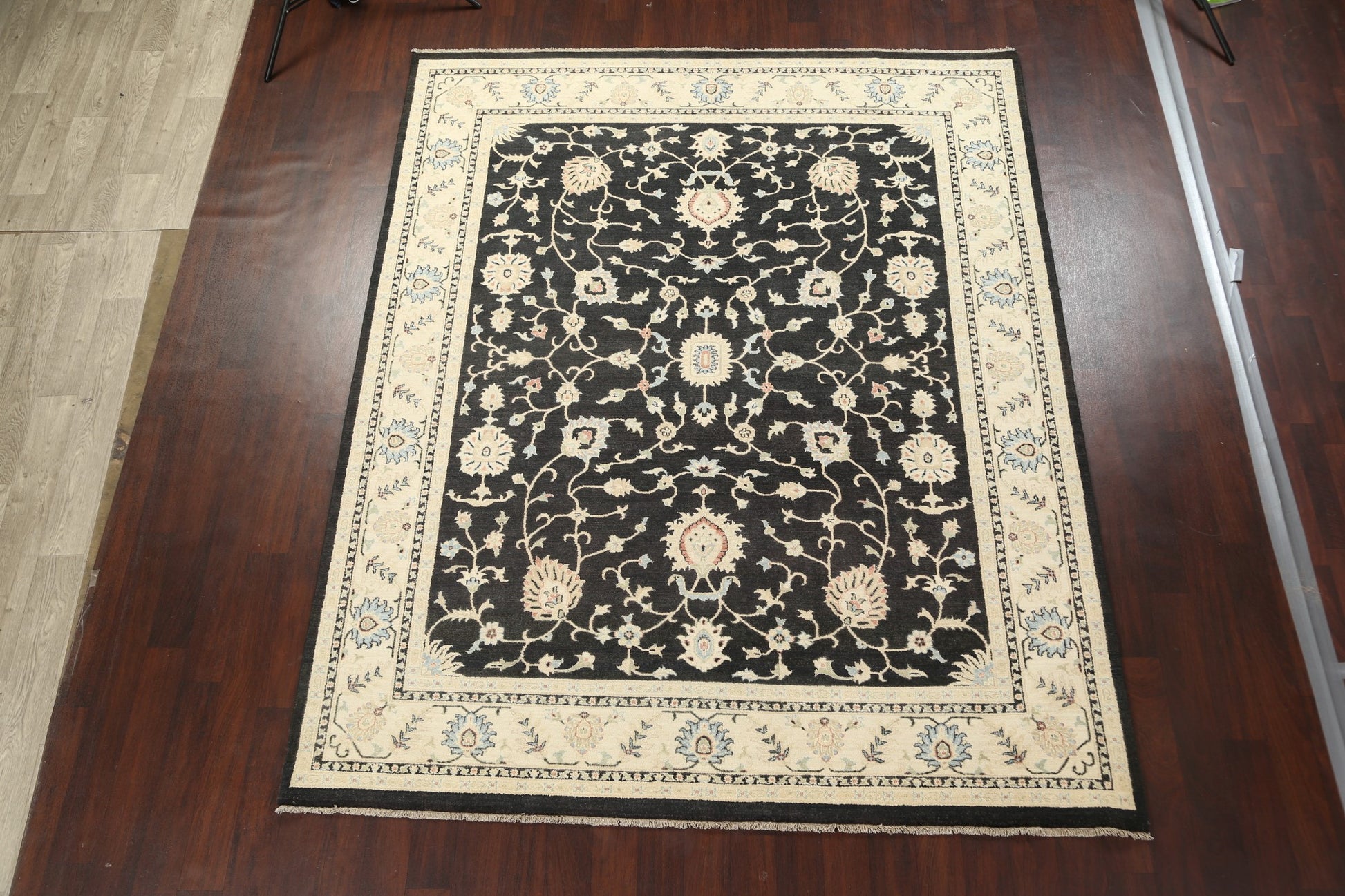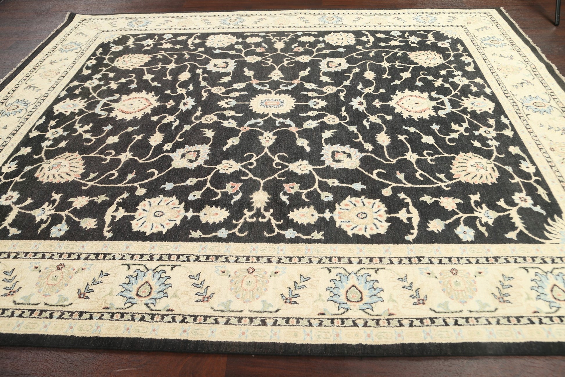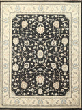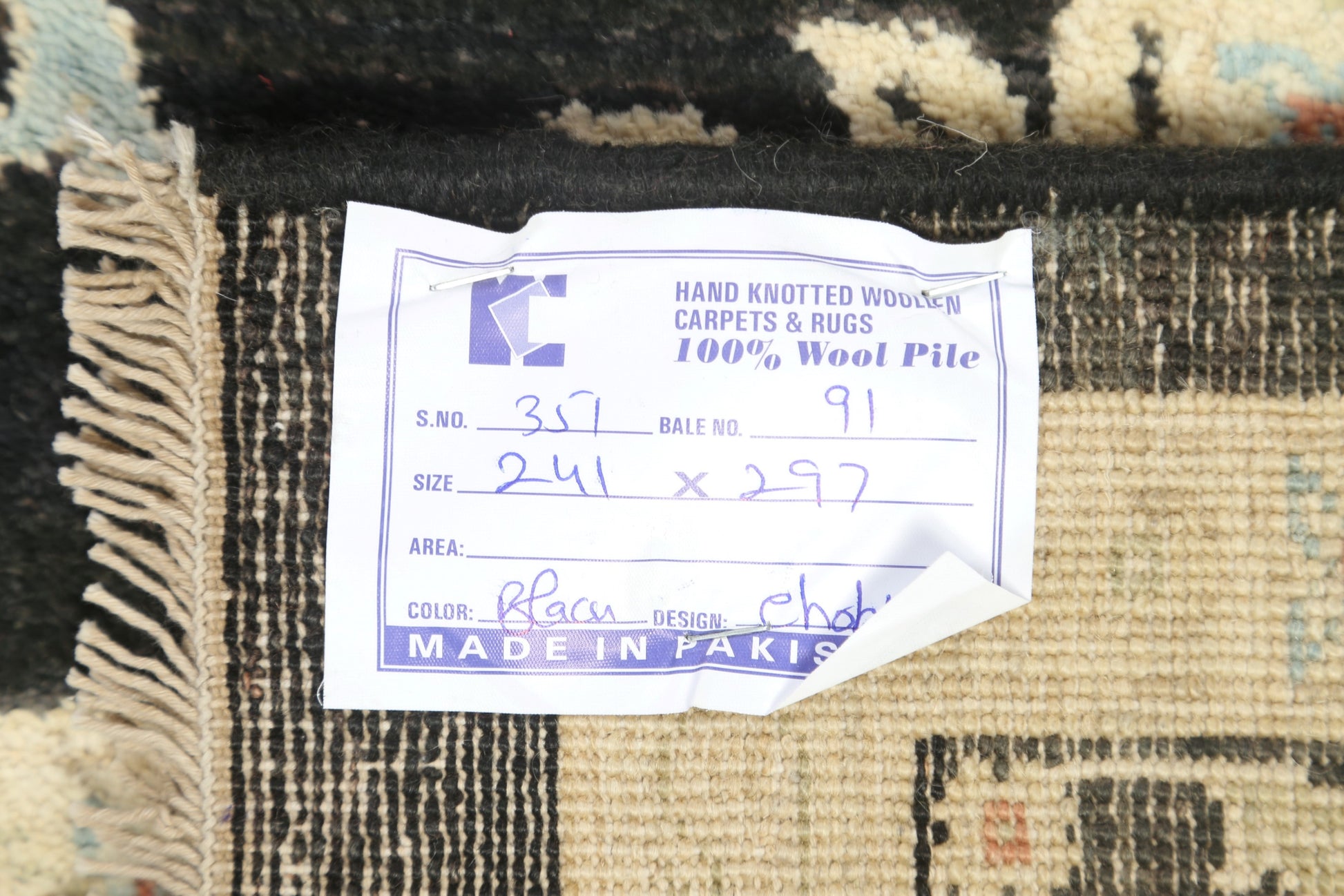 A Beautiful Genuine Pakistan Peshawar-Chobi rug is Hand Knotted by skillful weavers in Pakistan with 100% Wool Material. This rug is in New, First Quality condition. dimensions are 9' 10'' X 7' 10'' in foot and 300 X 239 in centimeter. the primary color is Black.