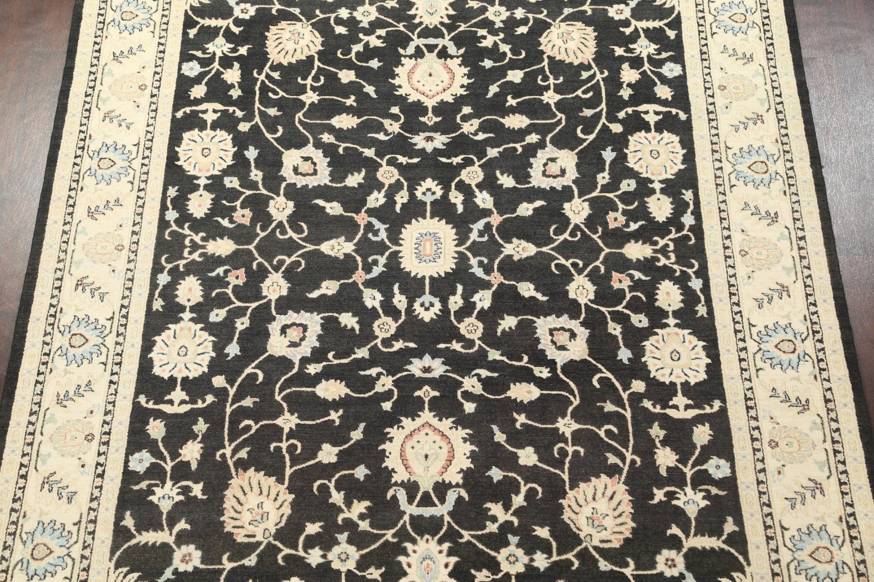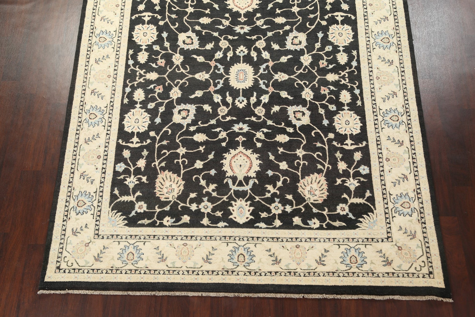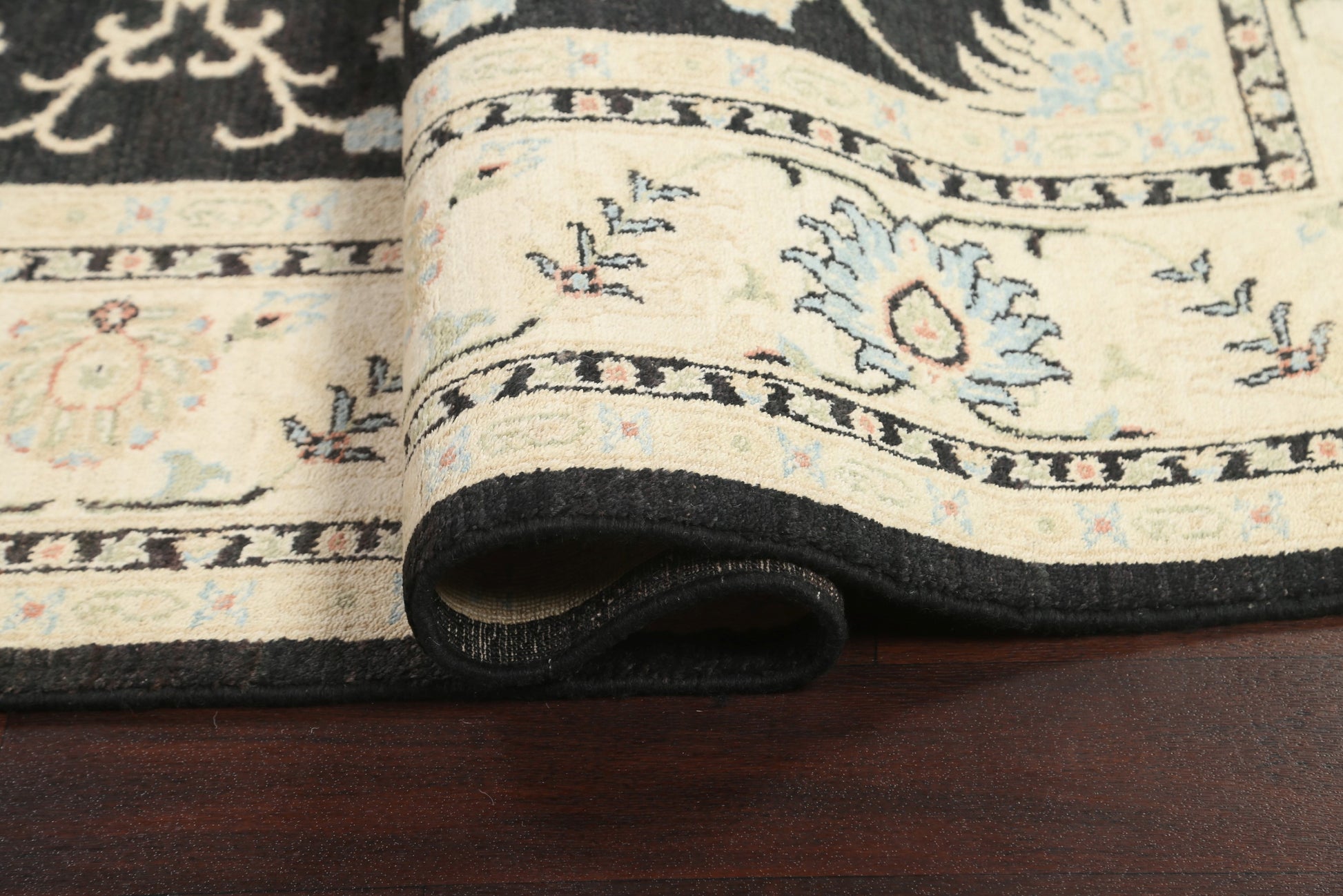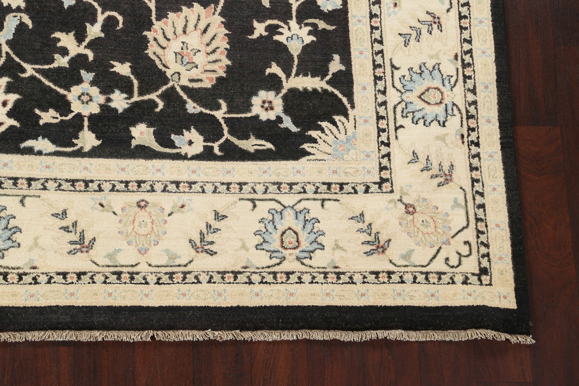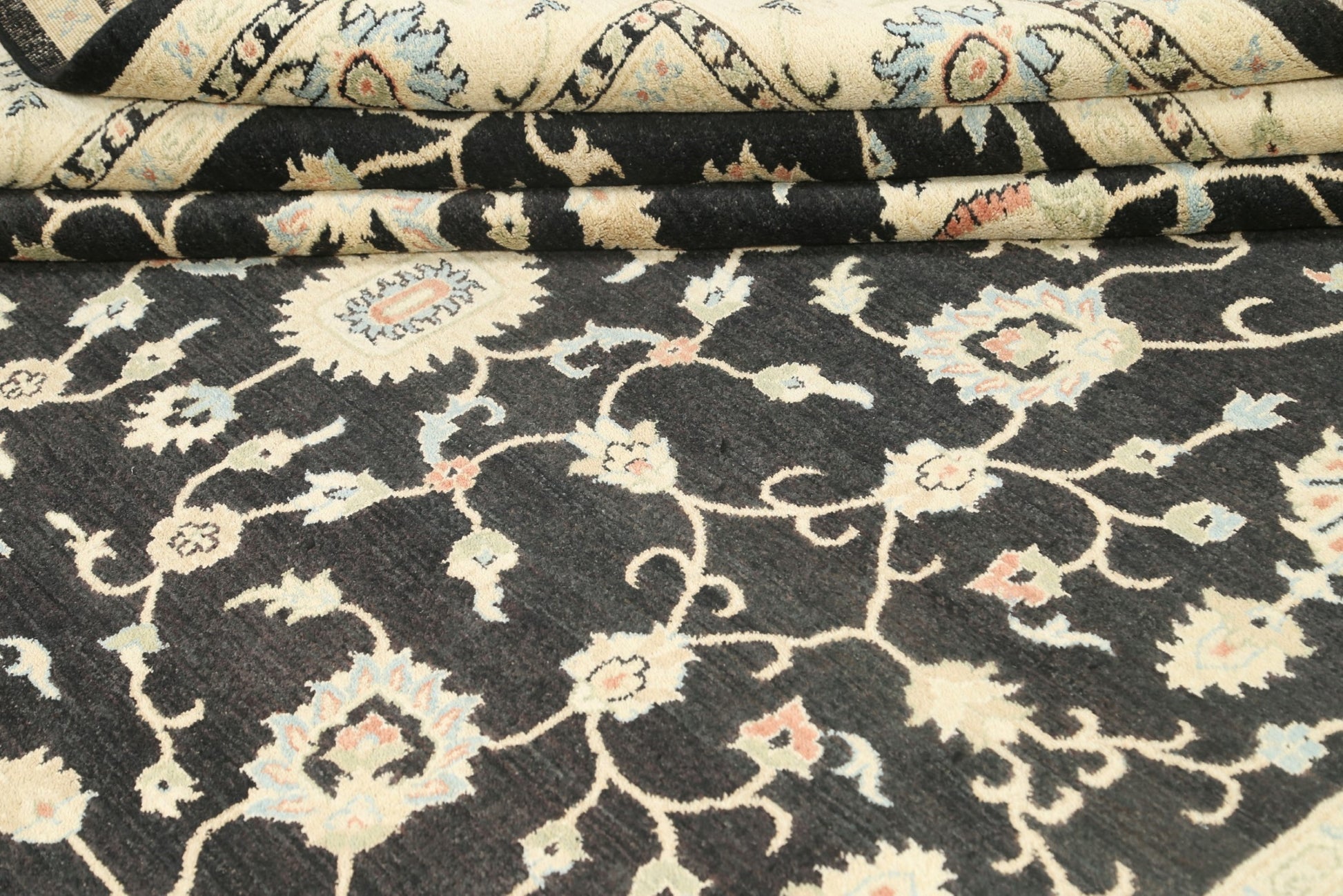 A Beautiful Genuine Pakistan Peshawar-Chobi rug is Hand Knotted by skillful weavers in Pakistan with 100% Wool Material. This rug is in New, First Quality condition. dimensions are 9' 10'' X 7' 10'' in foot and 300 X 239 in centimeter. the primary color is Black.