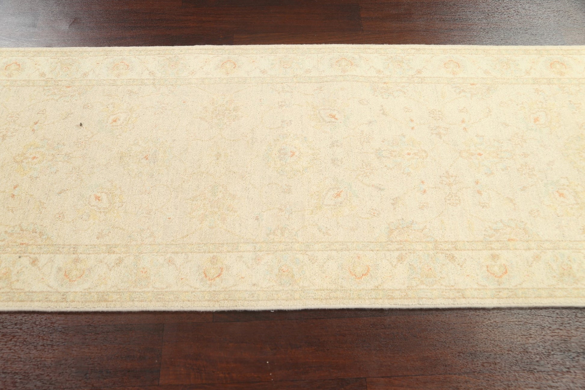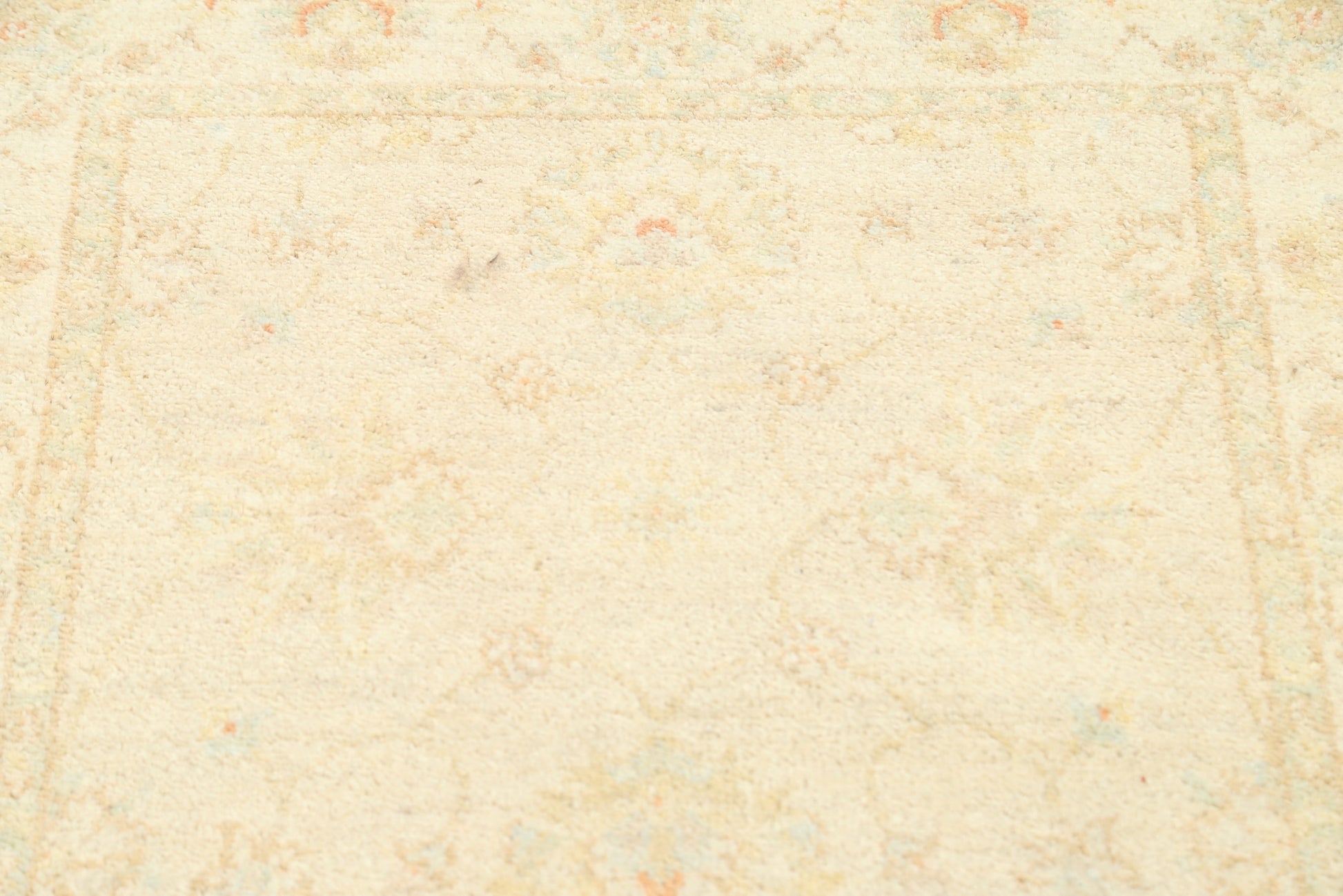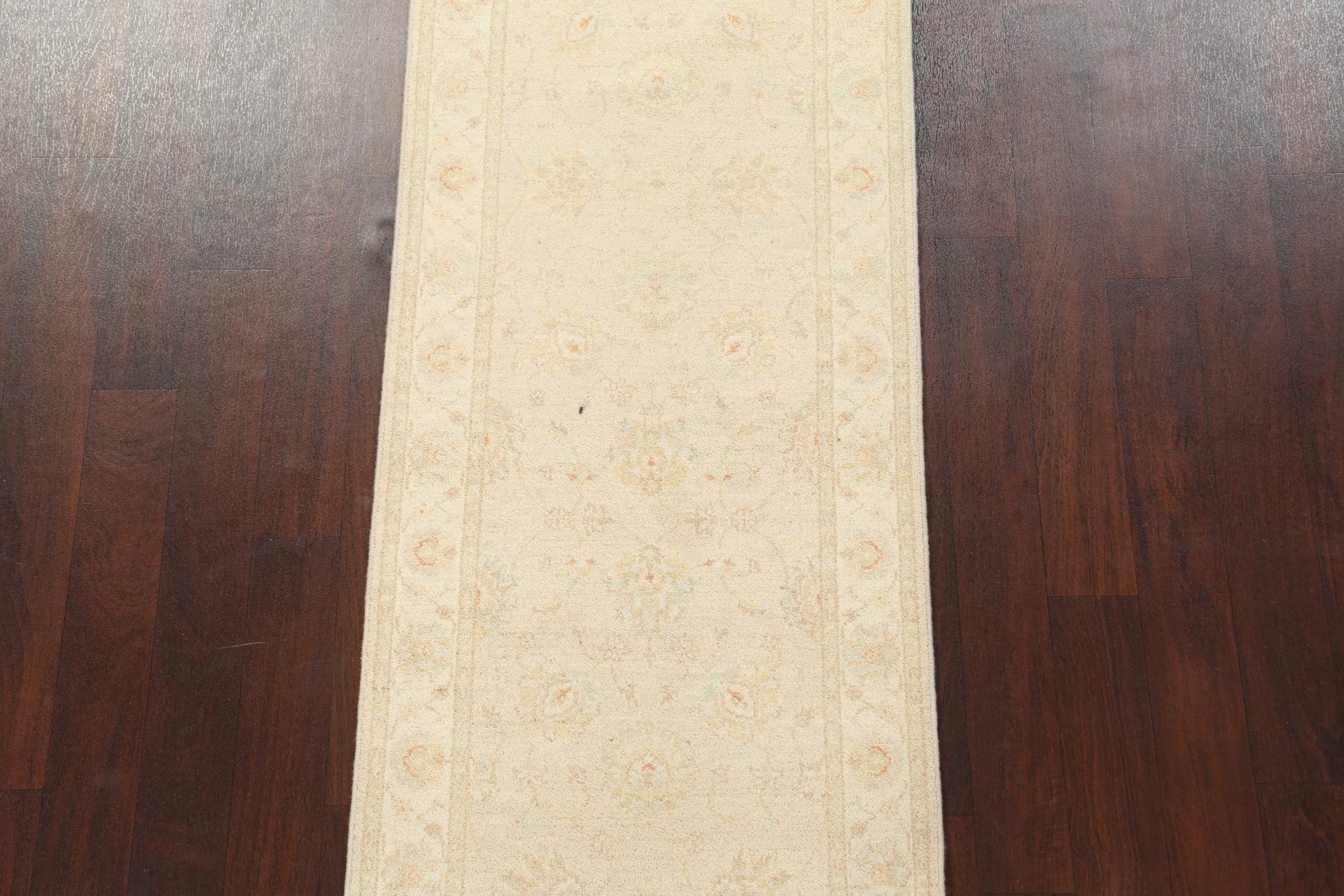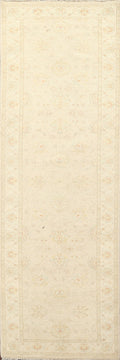 A Beautiful Genuine Pakistan Peshawar-Chobi rug is Hand Knotted by skillful weavers in Pakistan with 100% Wool Material. This rug is in New, First Quality condition. dimensions are 9' 11'' X 2' 8'' in foot and 302 X 81 in centimeter. the primary color is Beige & Ivories.