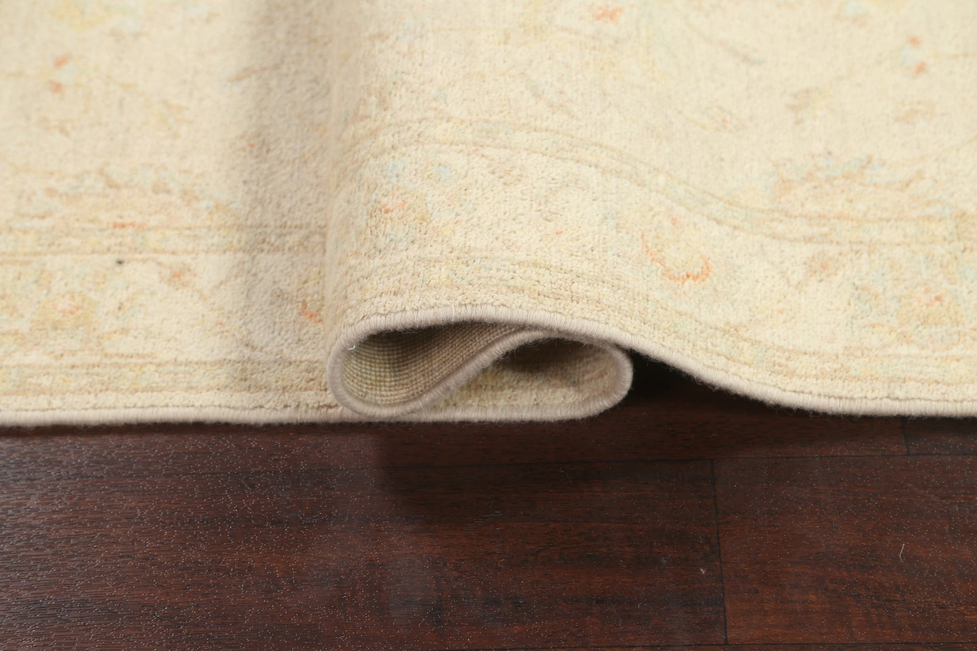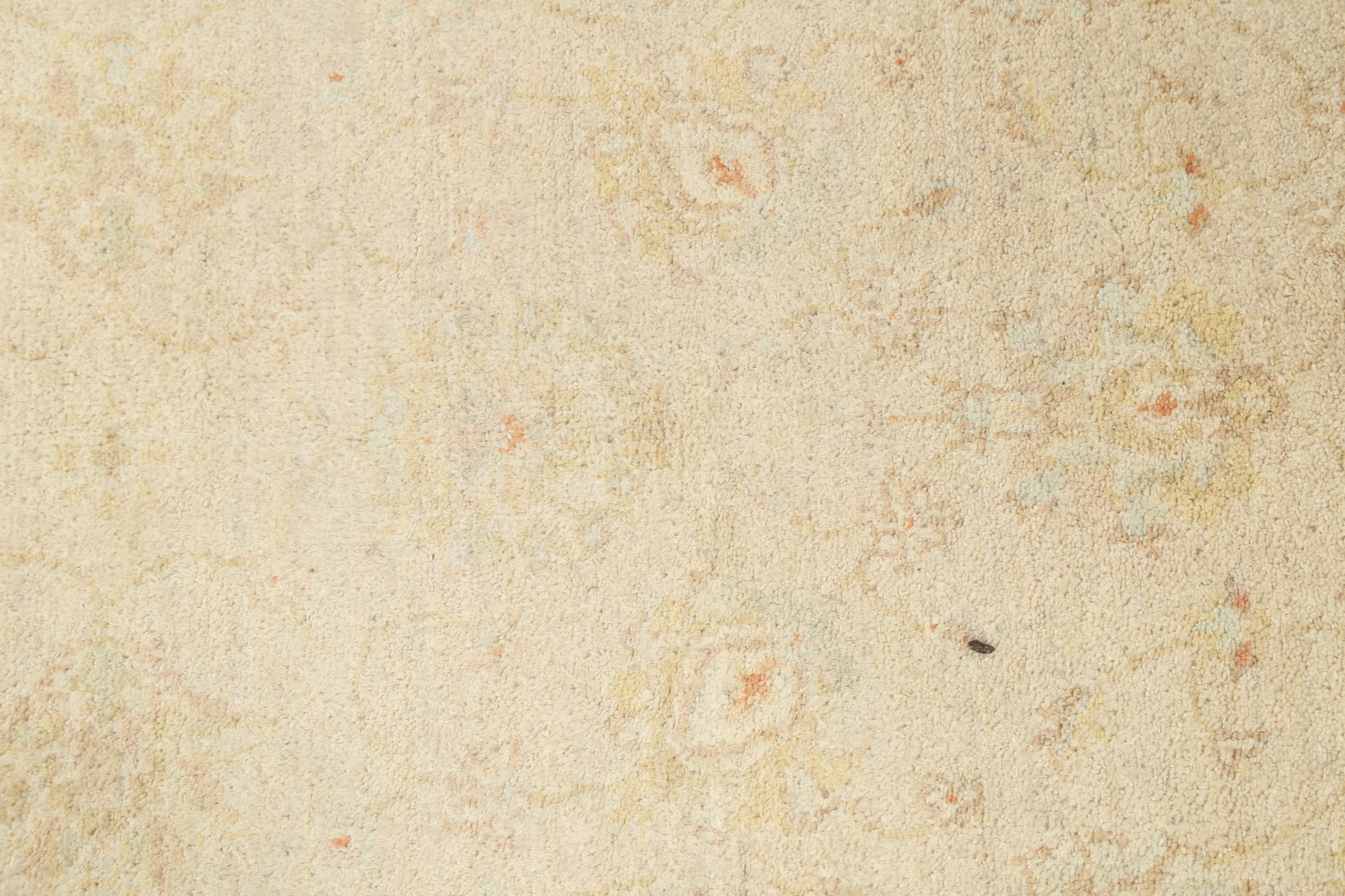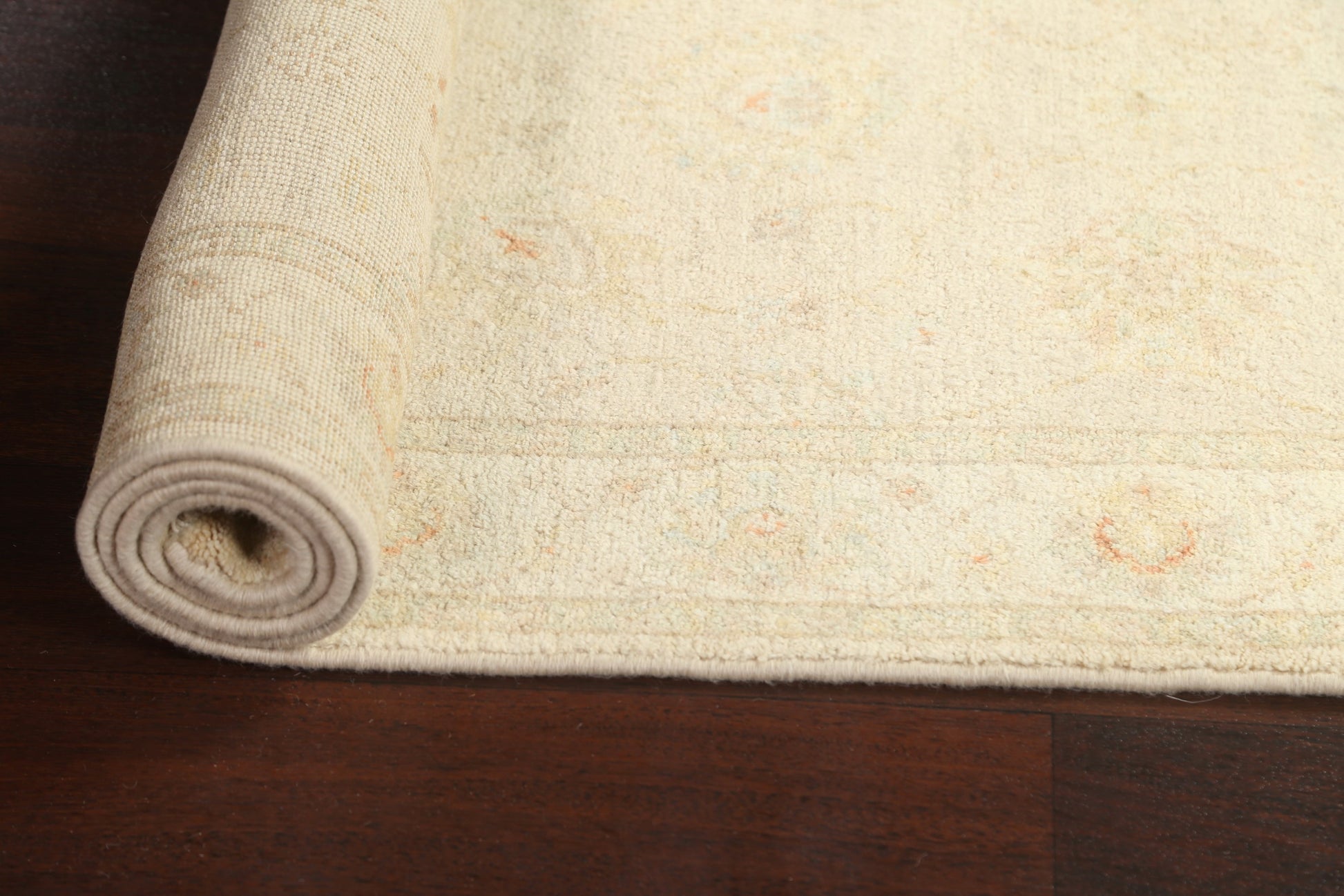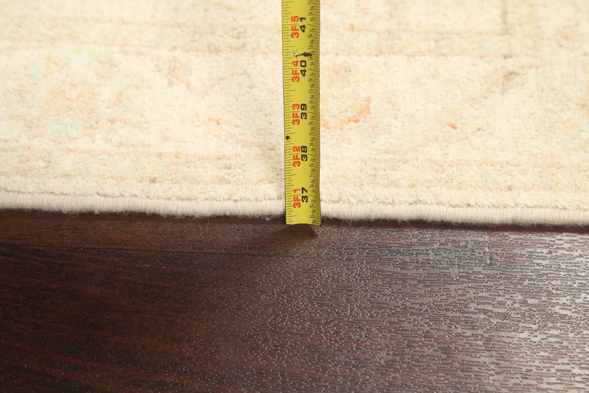 A Beautiful Genuine Pakistan Peshawar-Chobi rug is Hand Knotted by skillful weavers in Pakistan with 100% Wool Material. This rug is in New, First Quality condition. dimensions are 9' 11'' X 2' 8'' in foot and 302 X 81 in centimeter. the primary color is Beige & Ivories.
