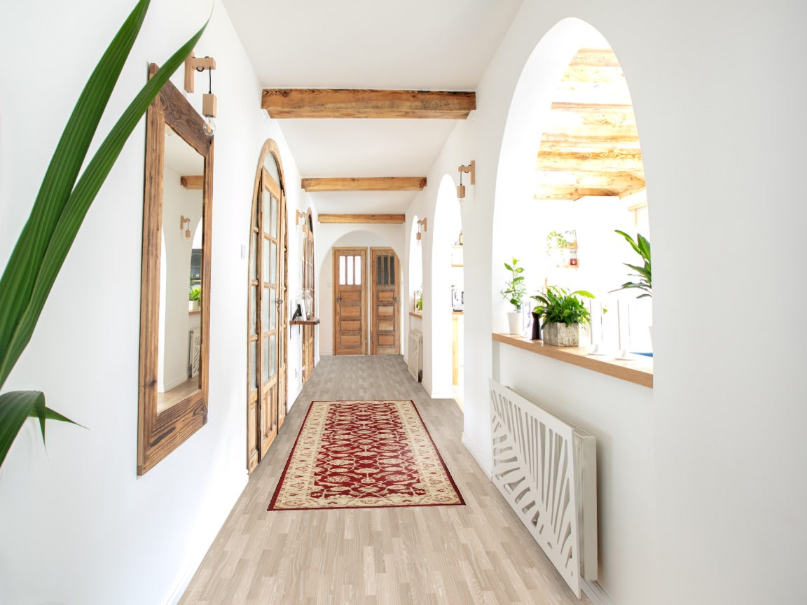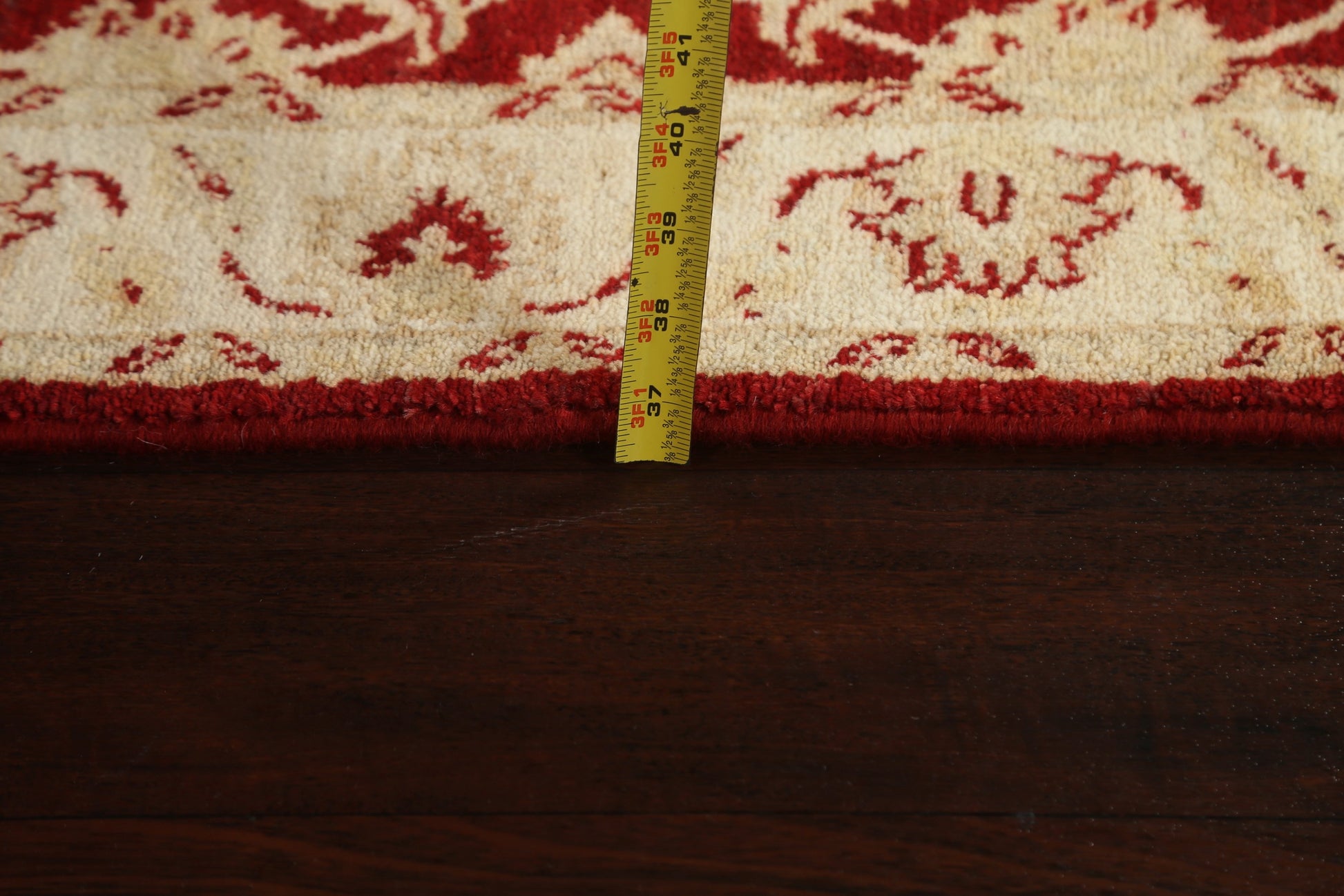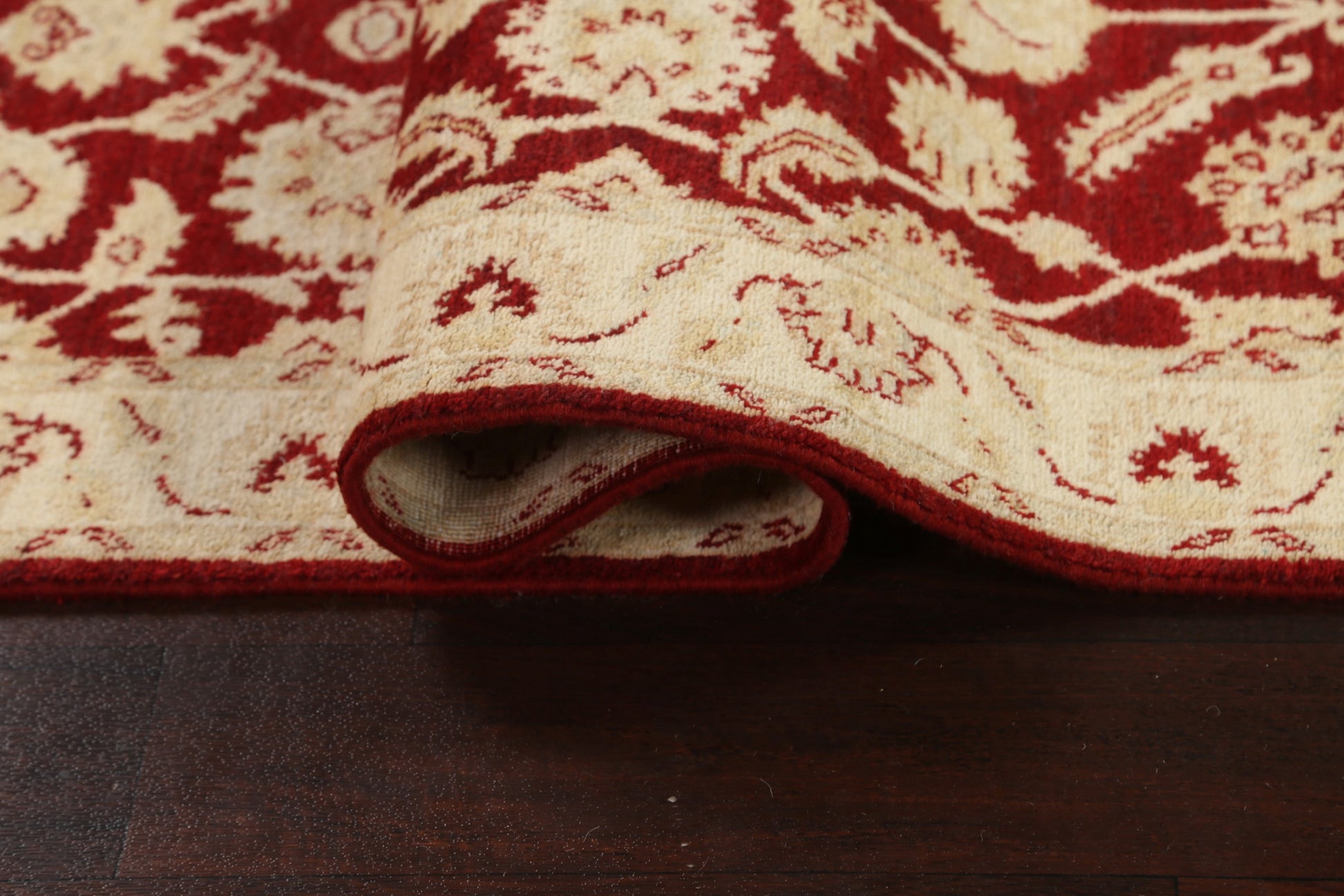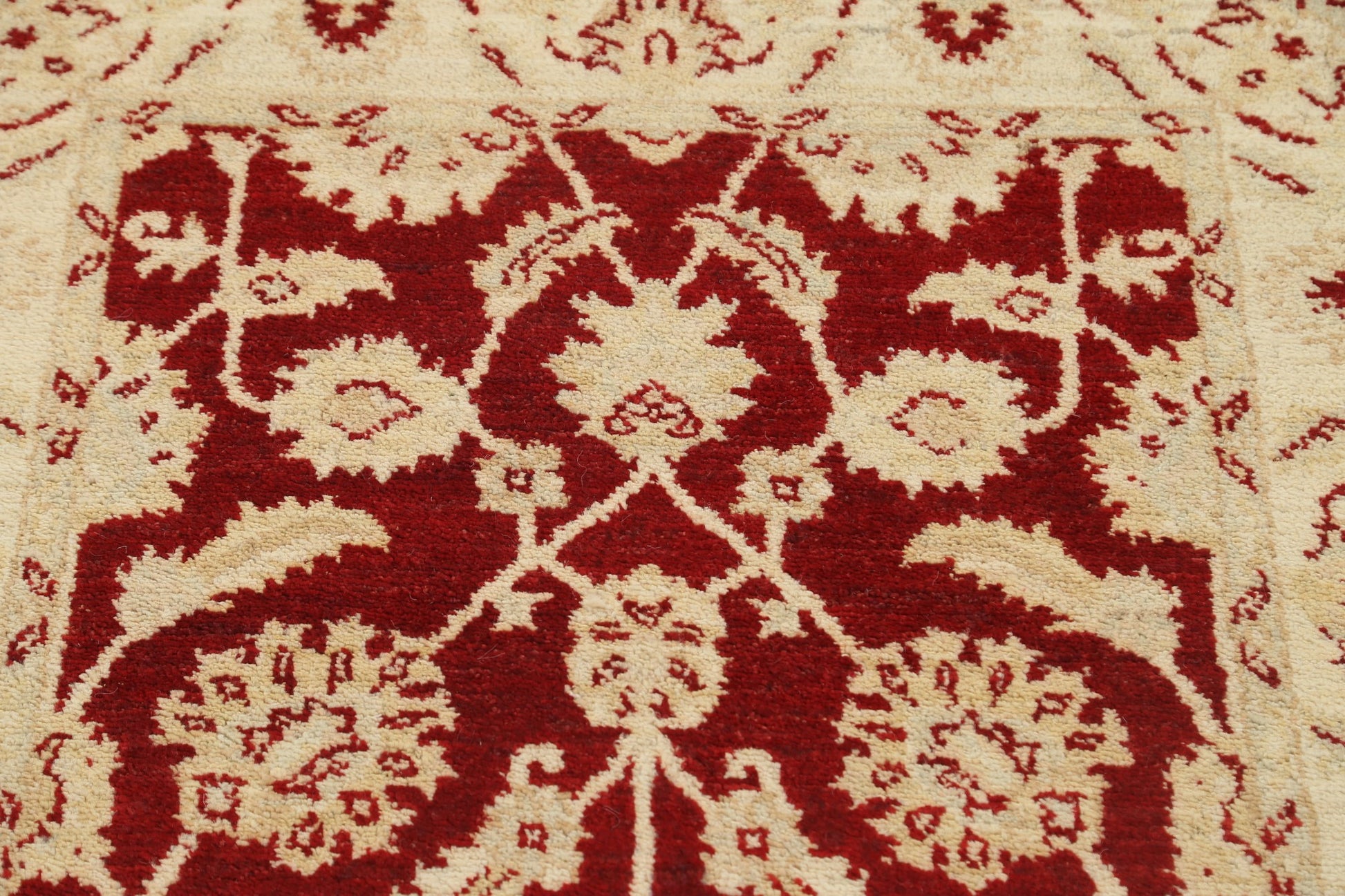A Beautiful Genuine Pakistan Peshawar-Chobi rug is Hand Knotted by skillful weavers in Pakistan with 100% Wool Material. This rug is in New, First Quality condition. dimensions are 9' 9'' X 2' 8'' in foot and 297 X 81 in centimeter. the primary color is Red.