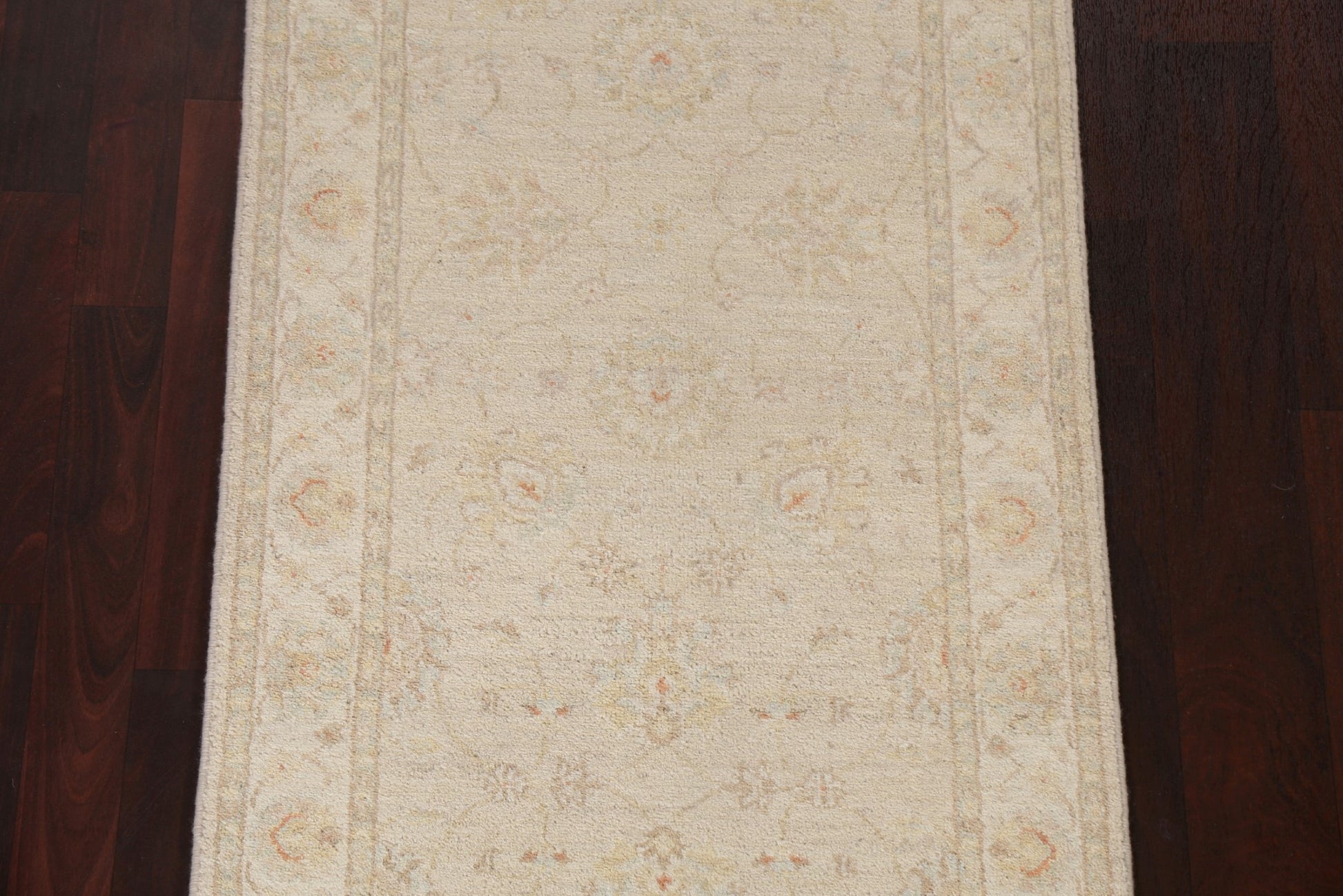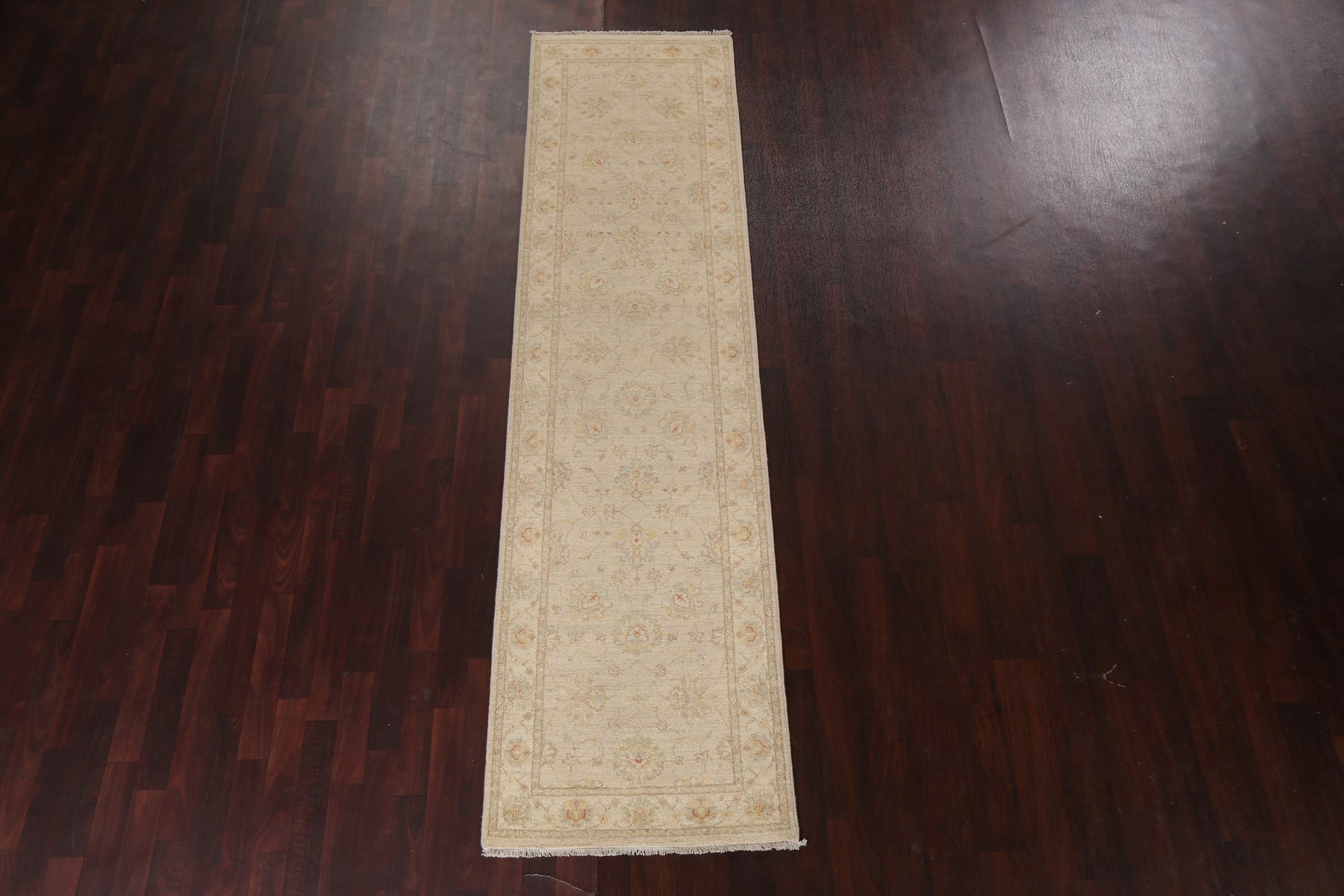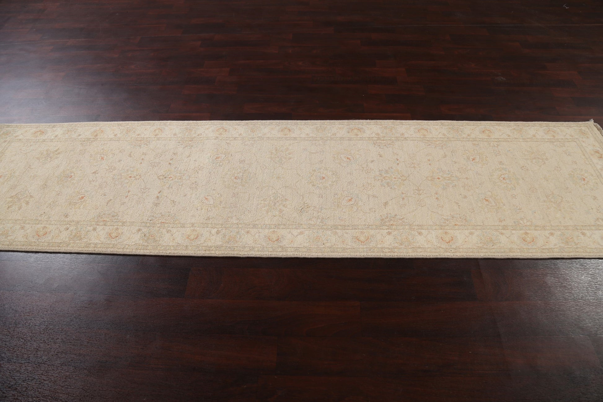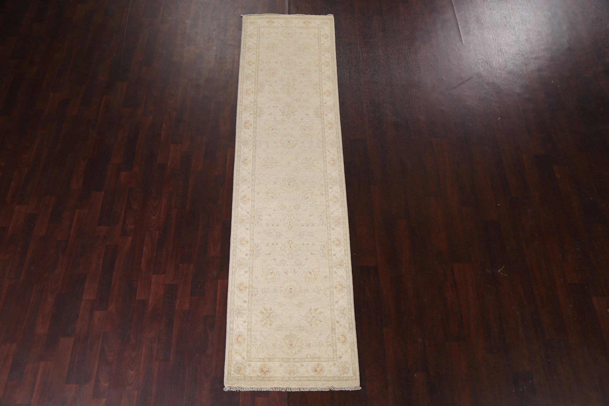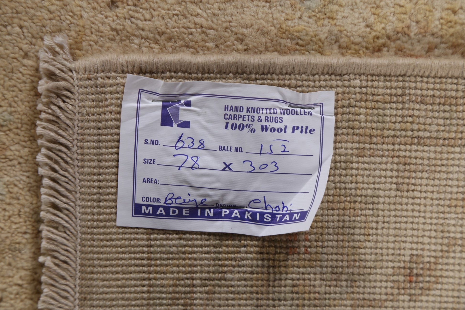 A Beautiful Genuine Pakistan Peshawar-Chobi rug is Hand Knotted by skillful weavers in Pakistan with 100% Wool Material. This rug is in New, First Quality condition. dimensions are 10' 1'' X 2' 8'' in foot and 307 X 81 in centimeter. the primary color is Beige & Ivories.