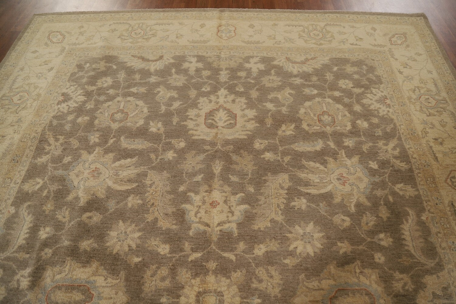 A Beautiful Genuine Pakistan Peshawar rug is Hand Knotted by skillful weavers in Pakistan with 100% Wool Material. This rug is in condition. dimensions are 11' 10'' X 9' 0'' in foot and 361 X 274 in centimeter. the primary color is Brown.