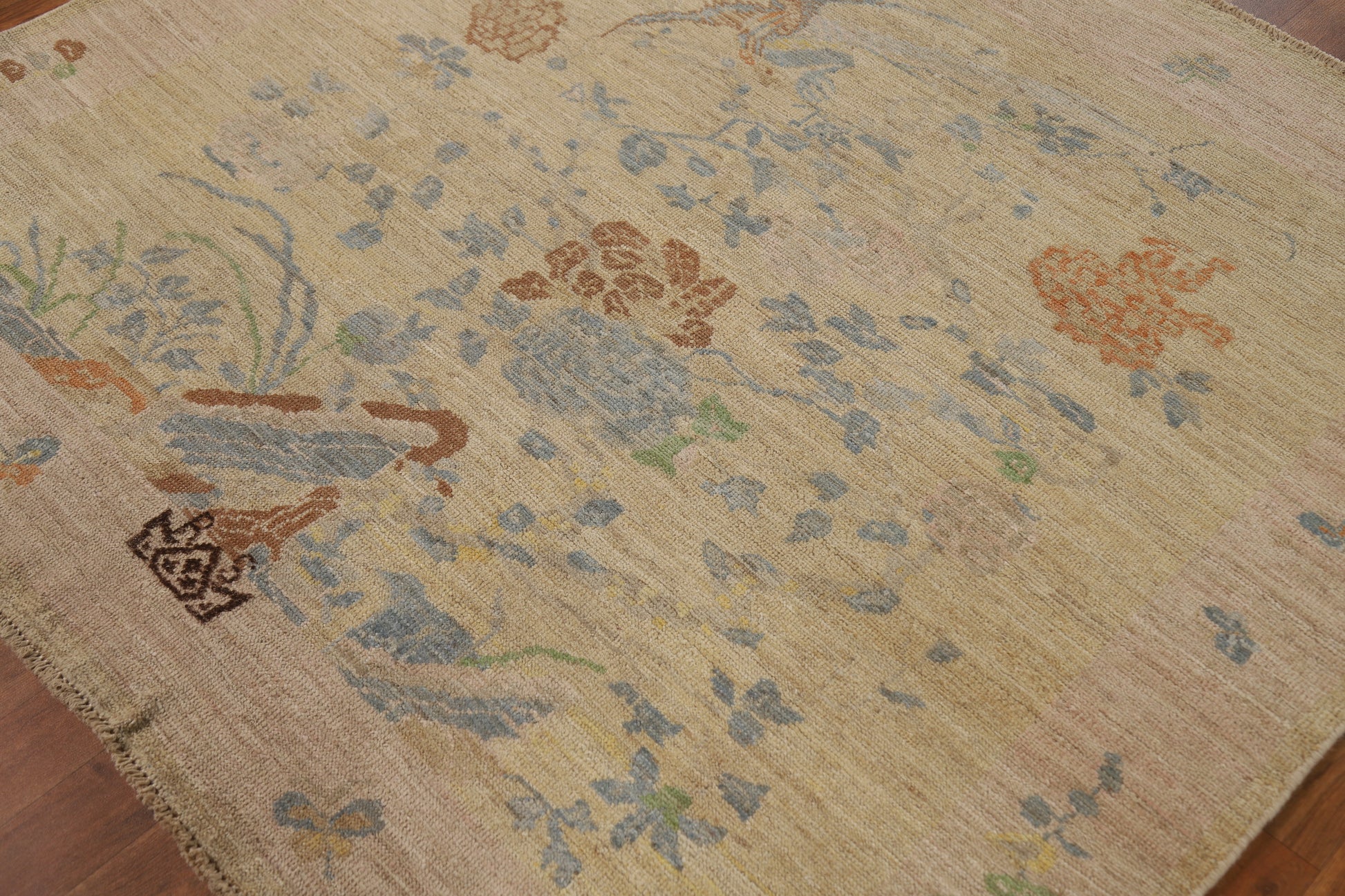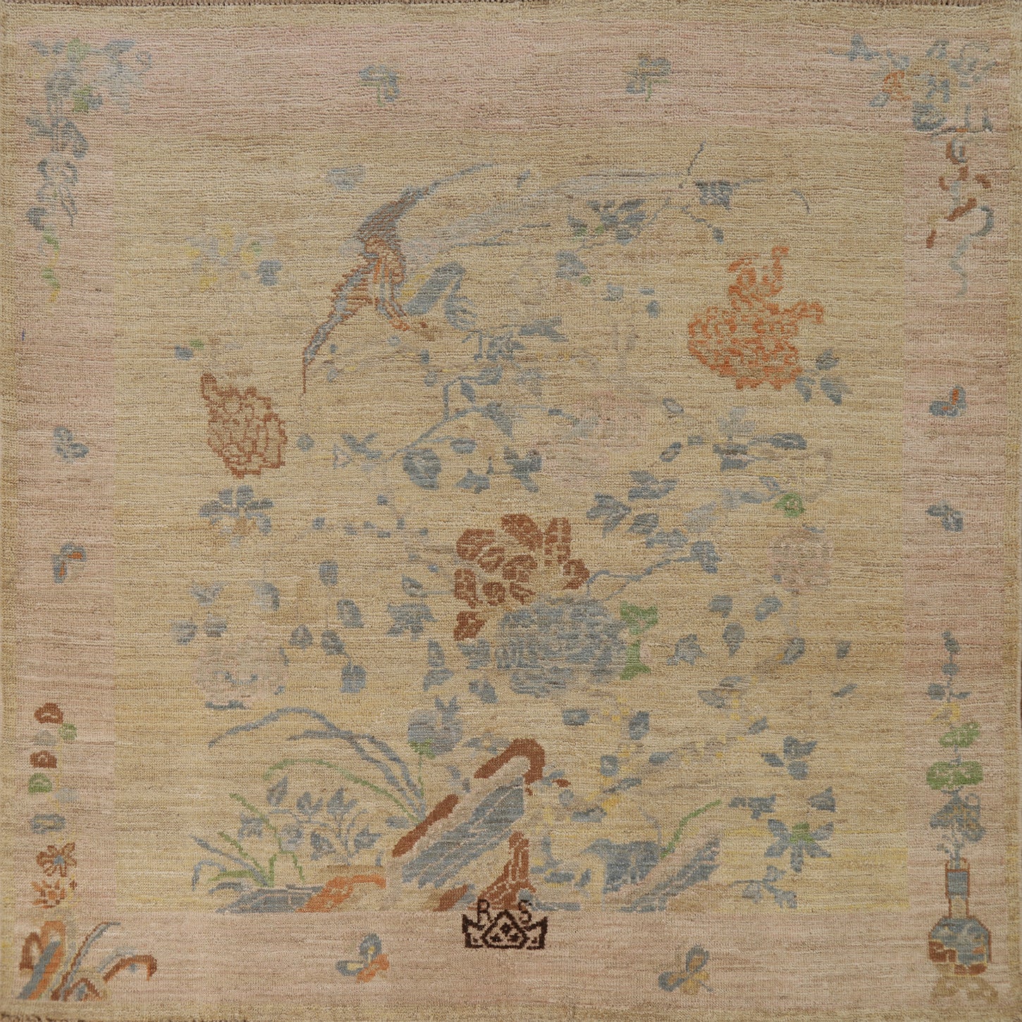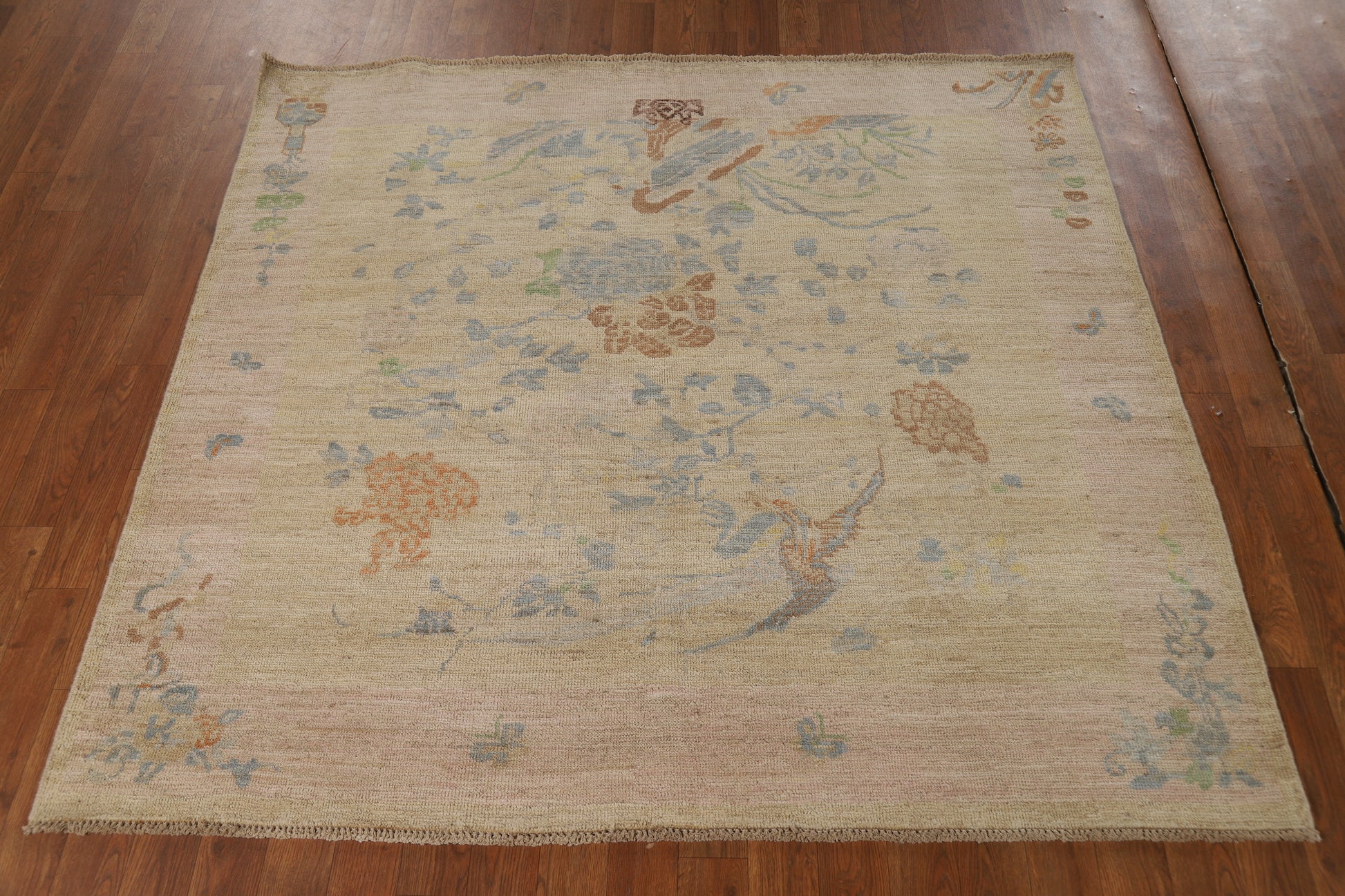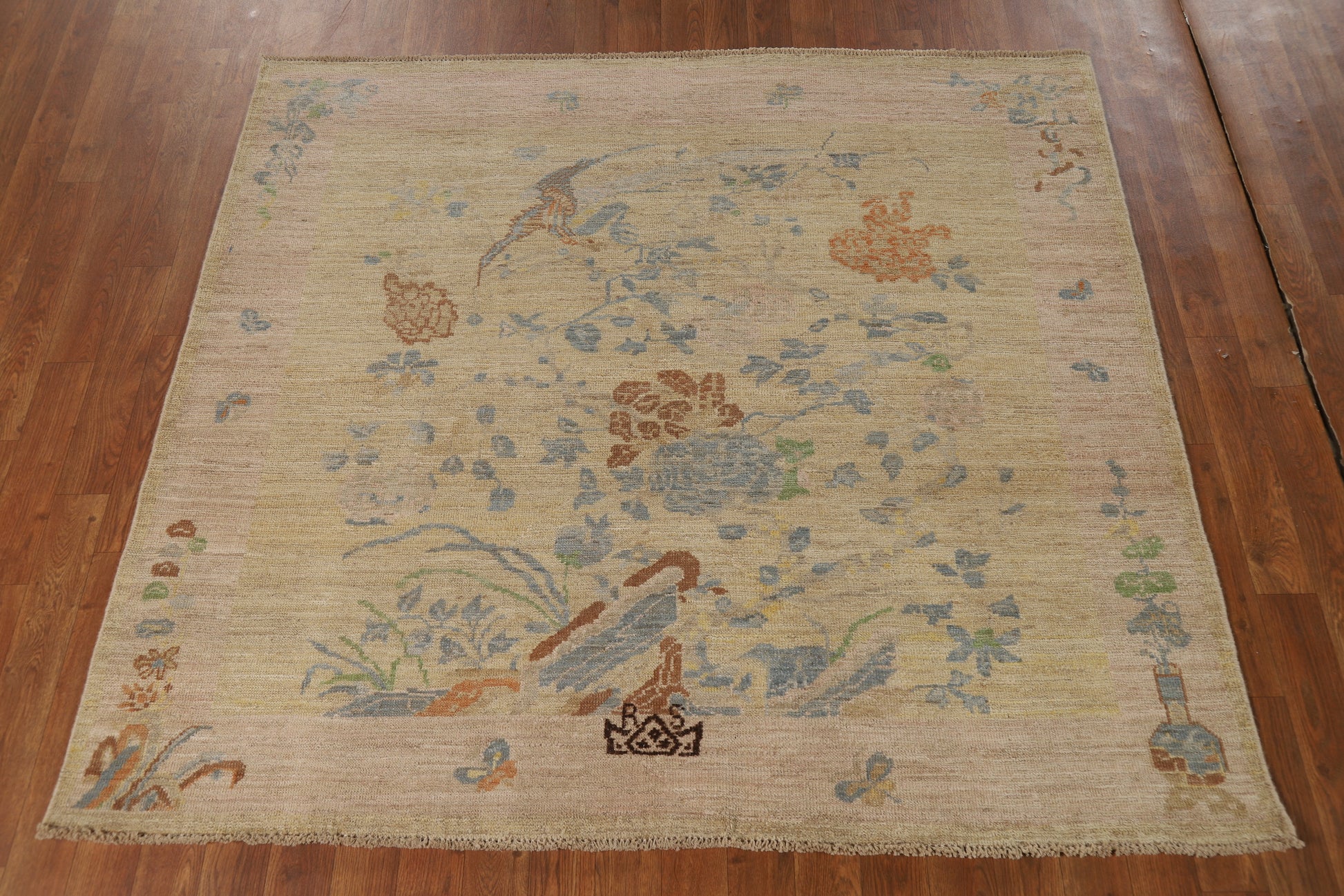 Vegetable Dye Pictorial Art Deco Turkish Square Rug 5x5