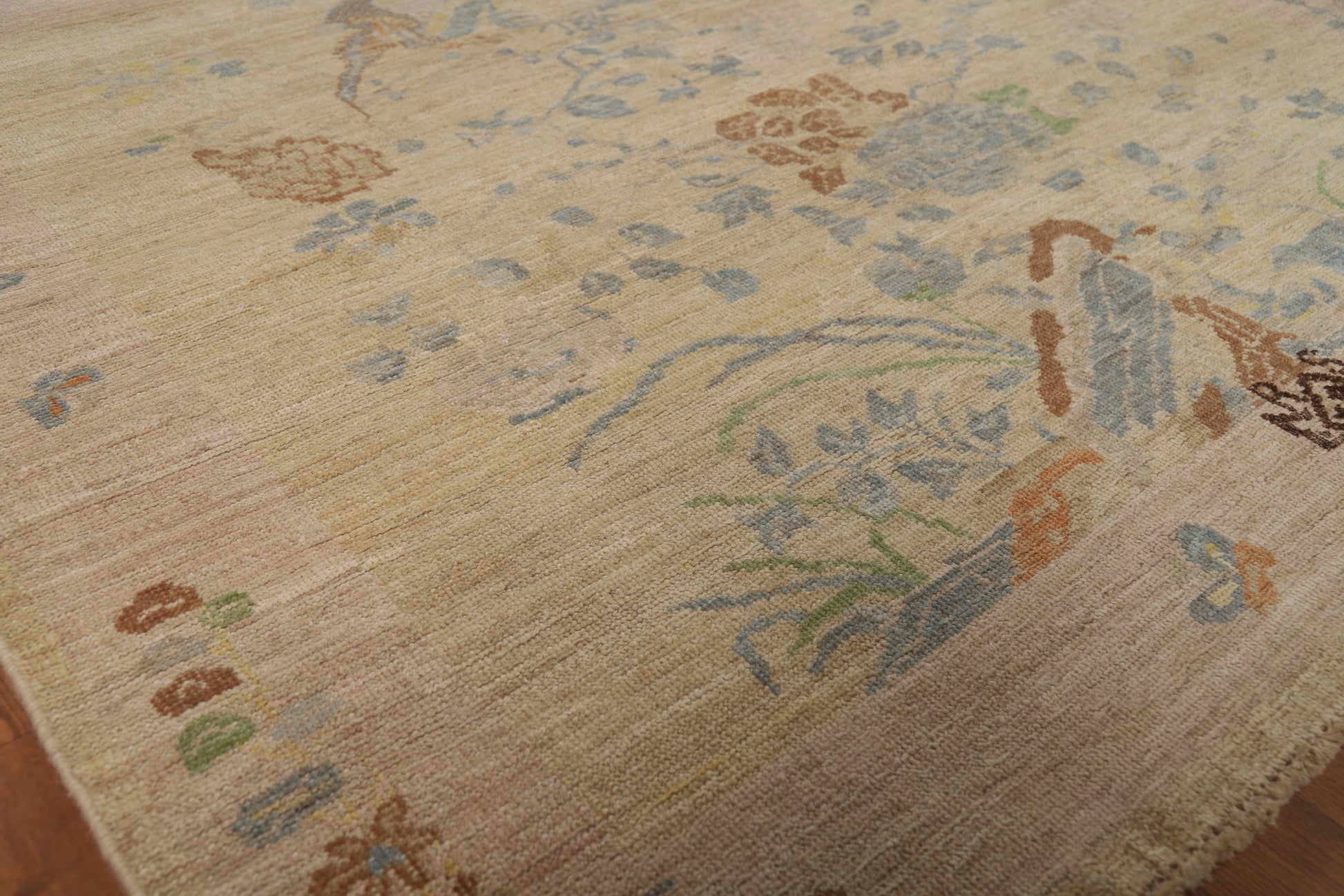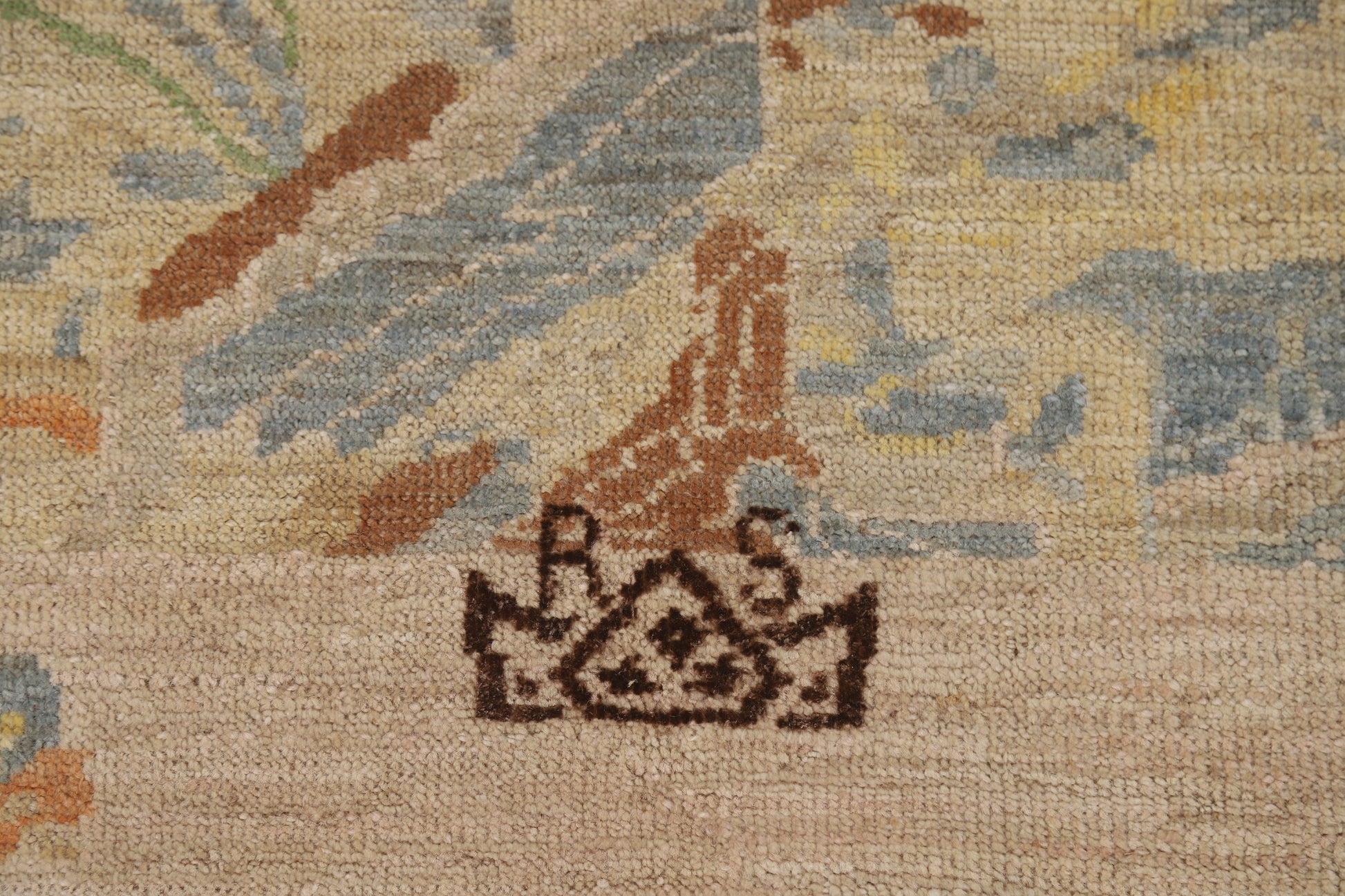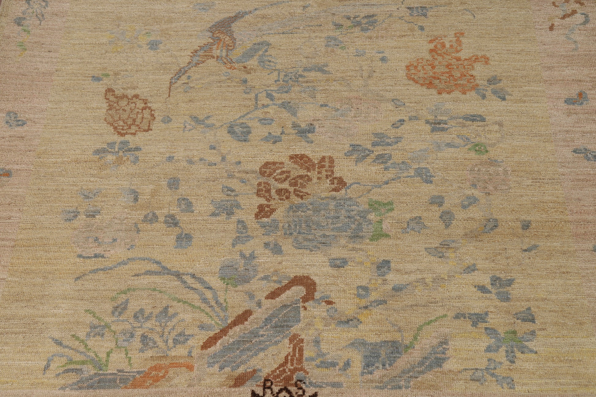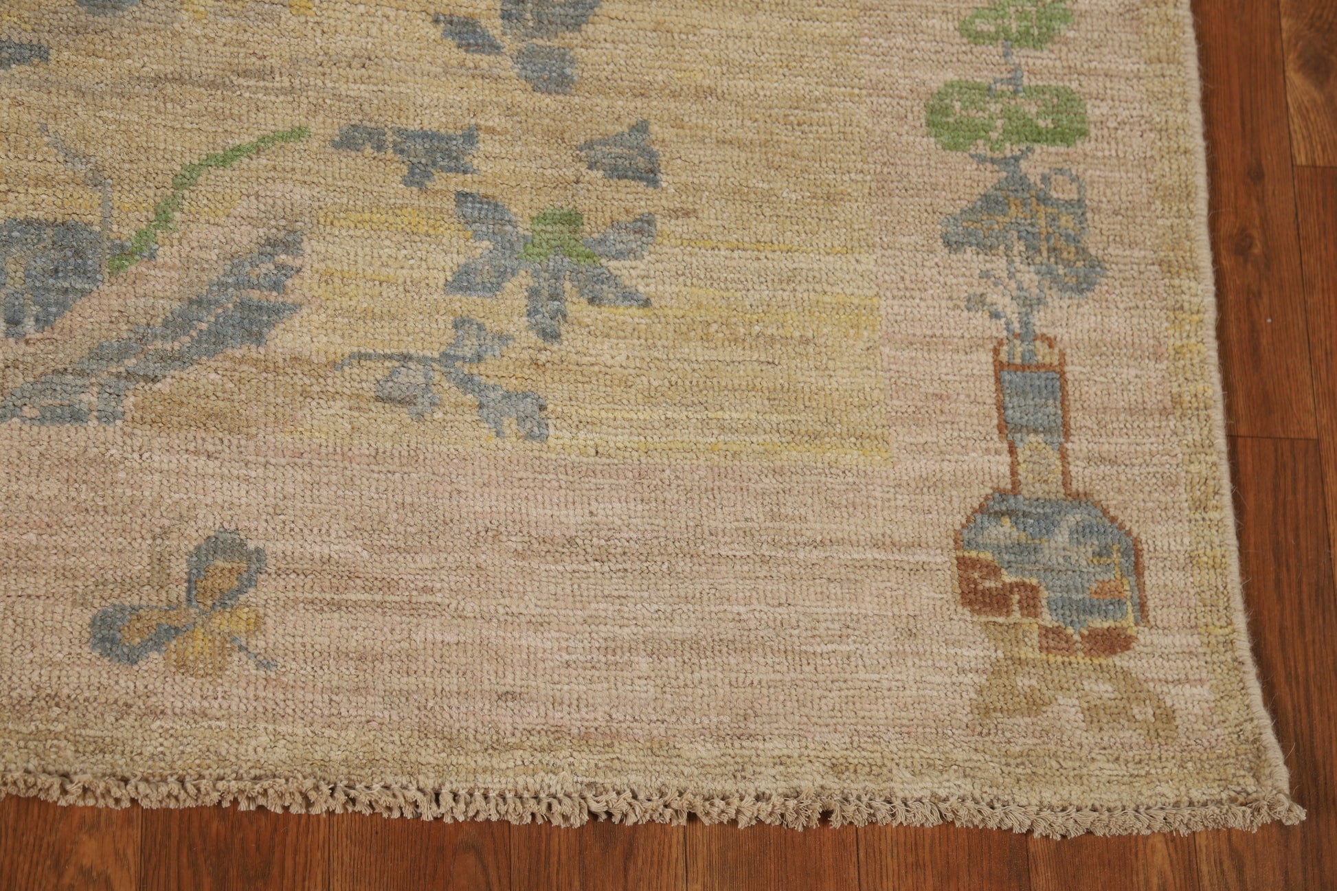 Vegetable Dye Pictorial Art Deco Turkish Square Rug 5x5