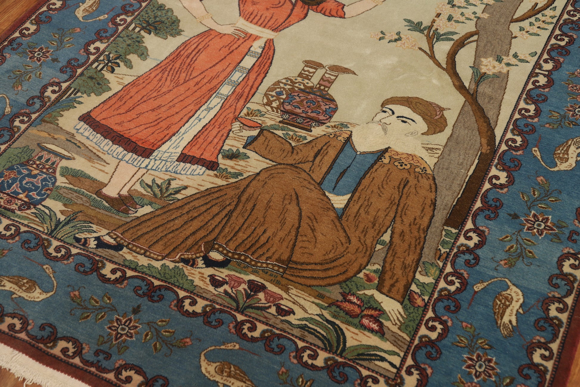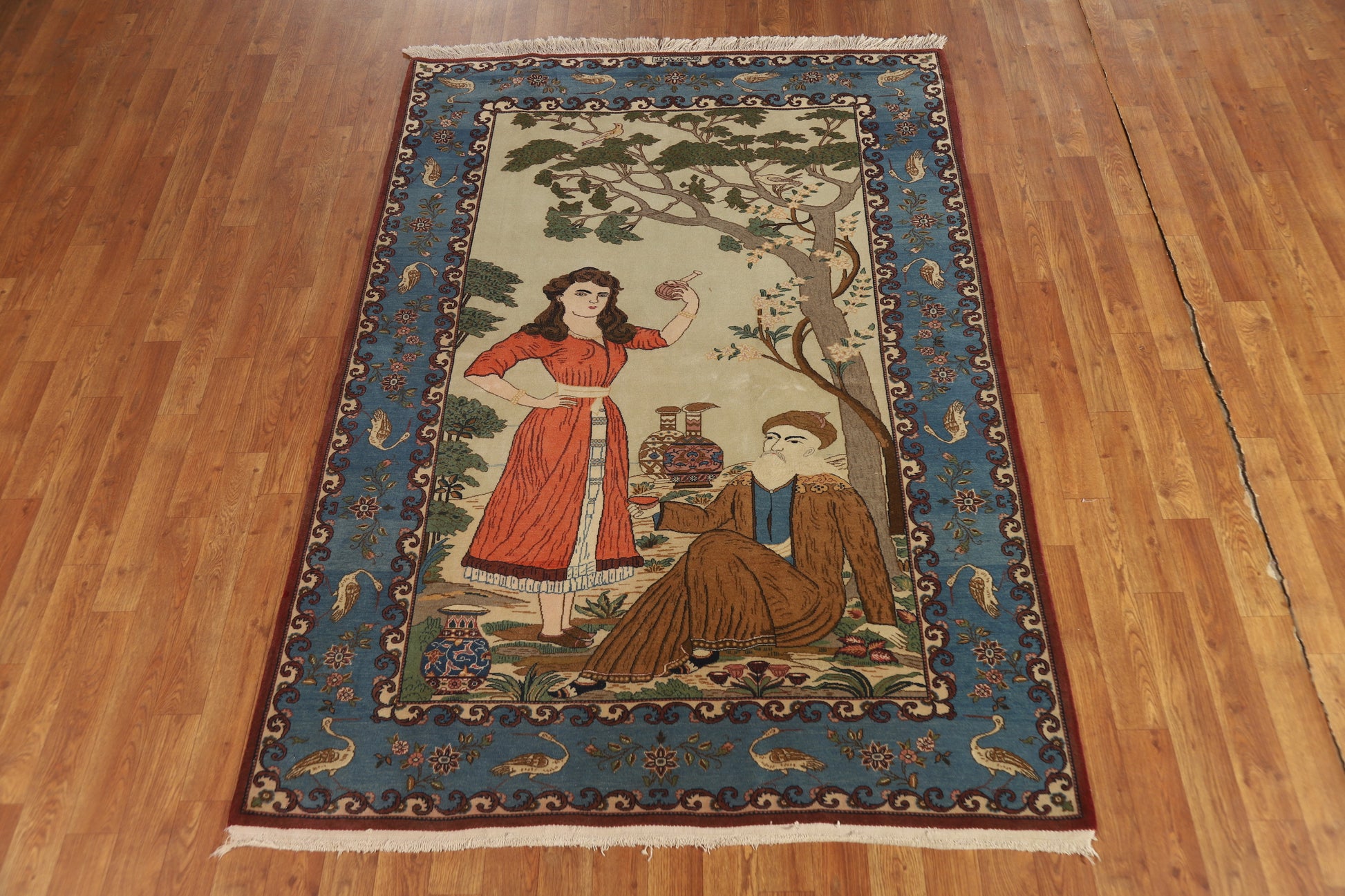 Vegetable Dye Pictorial Kashan Dabir Persian Rug 5x7