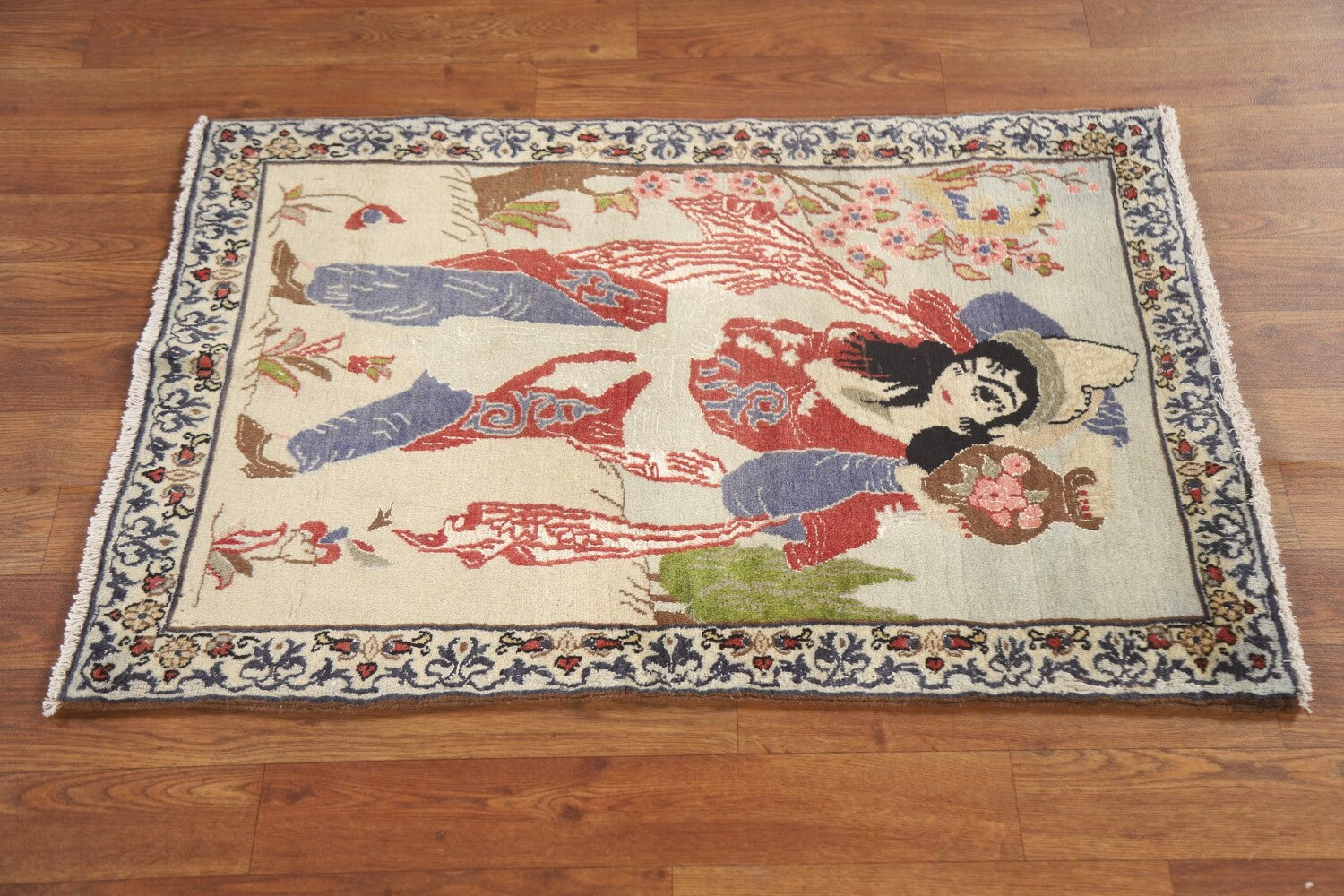 Vegetable Dye Pictorial Nain Persian Rug 2x3