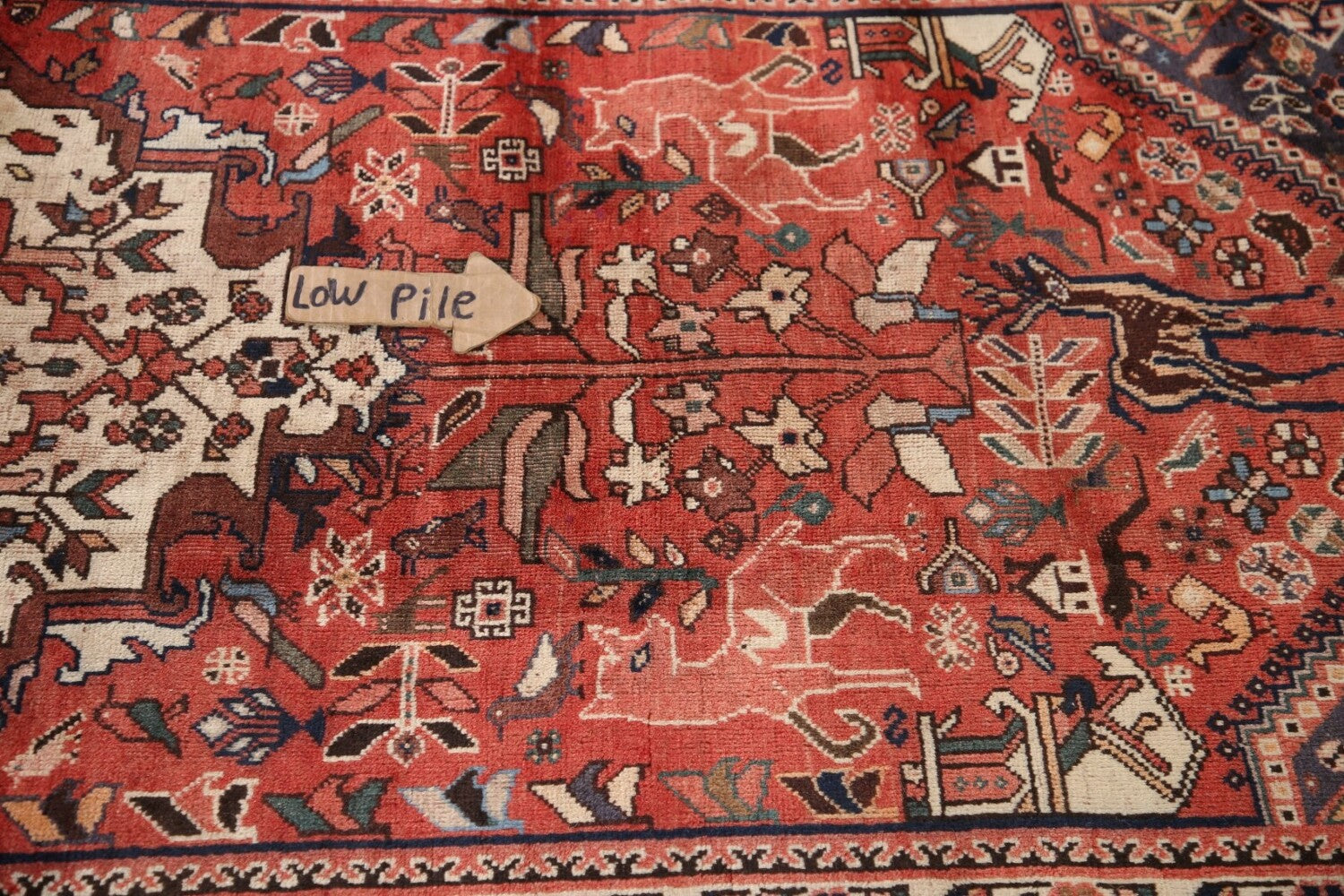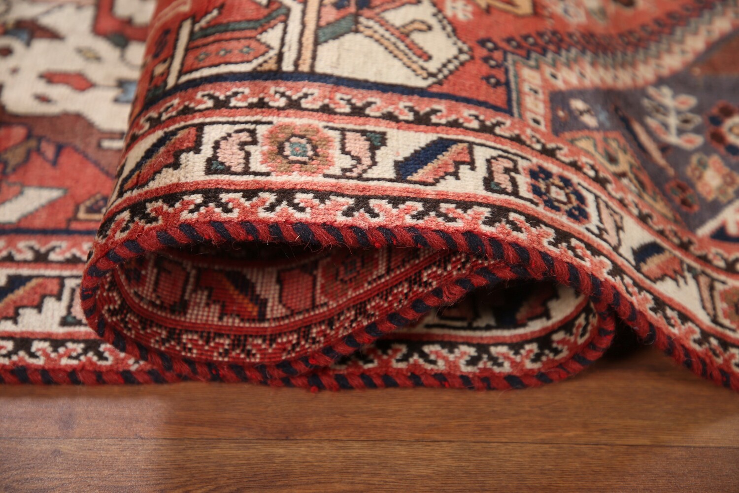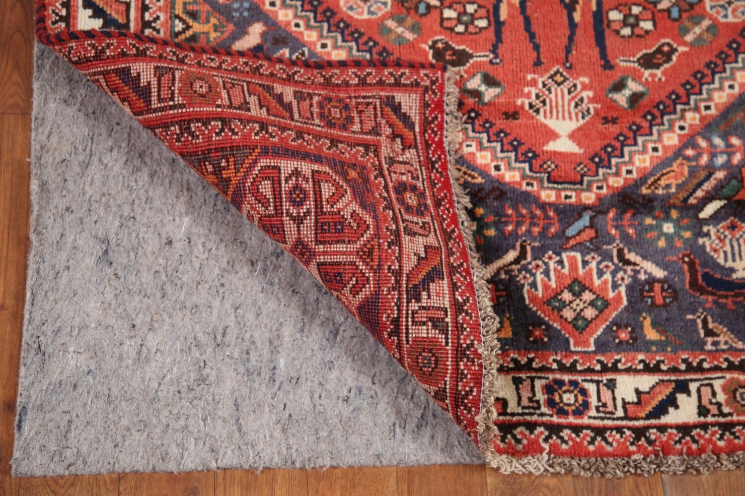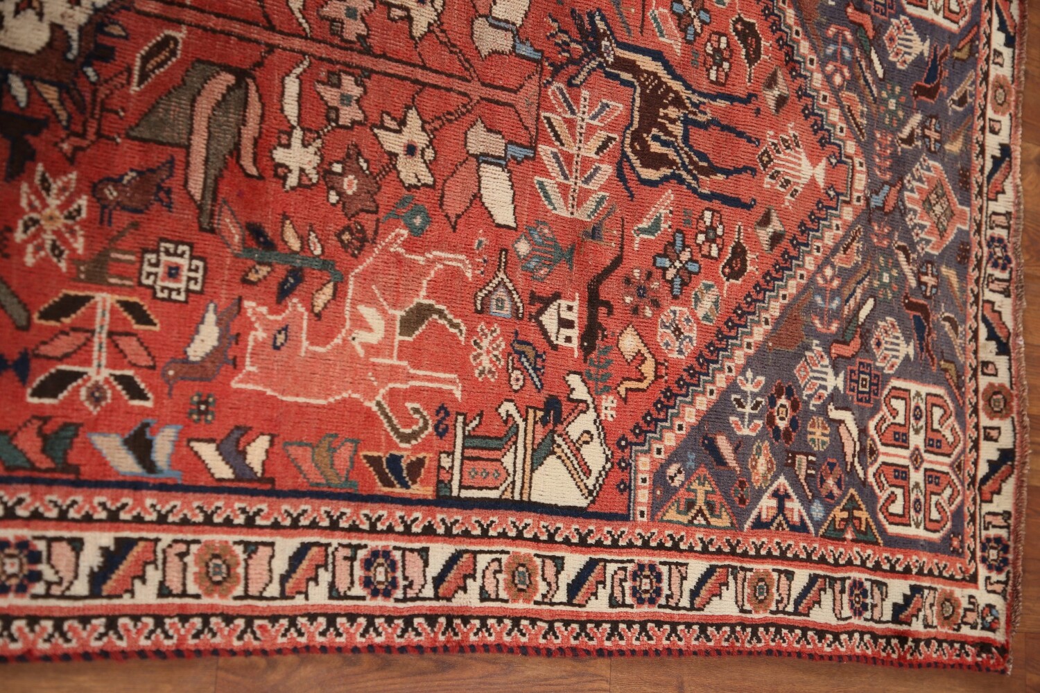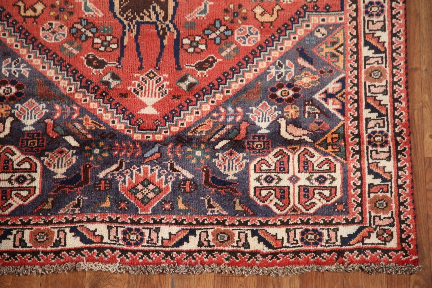 A Beautiful Genuine Persia ( Persia ) Shiraz rug is Hand Knotted by skillful weavers in Persia ( Persia ) with 100% Wool Material. This rug is in Very Good (Low Pile) condition. dimensions are 9' 6'' X 3' 5'' in foot and 290 X 104 in centimeter. the primary color is Red.