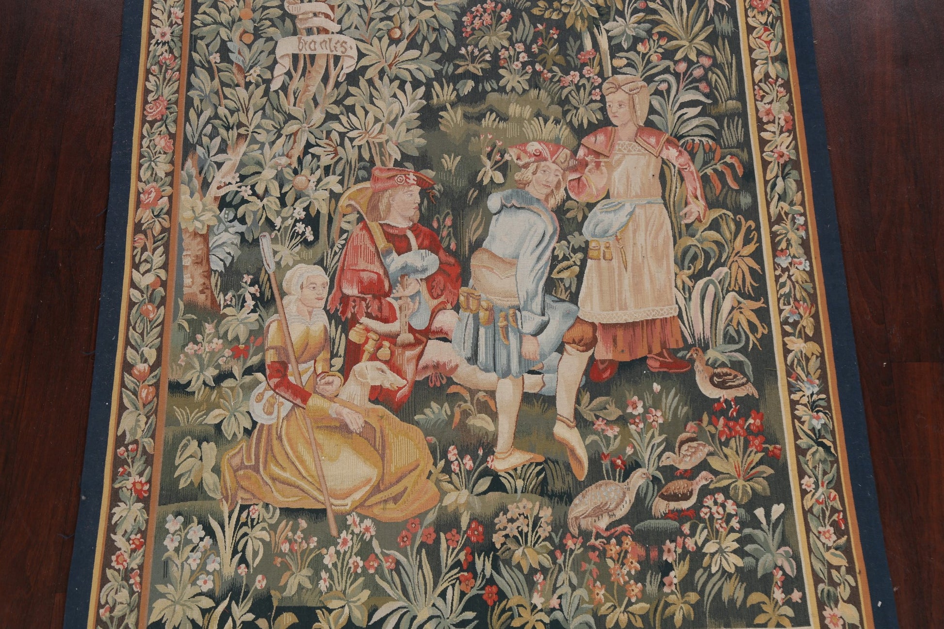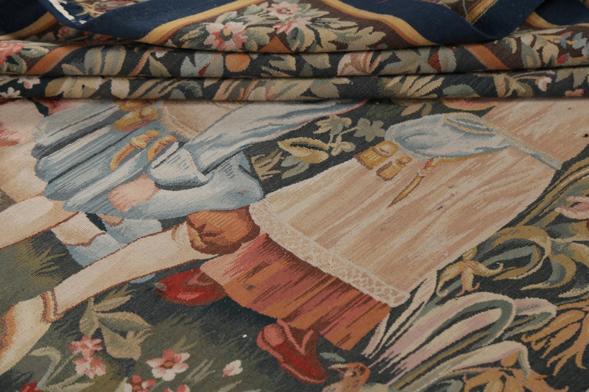 A Beautiful Genuine France Tapestries rug is Hand Woven by skillful weavers in France with 100% Wool Material. This rug is in New, First Quality condition. dimensions are 6' 6'' X 5' 5'' in foot and 198 X 165 in centimeter. the primary color is Multi-Colored.