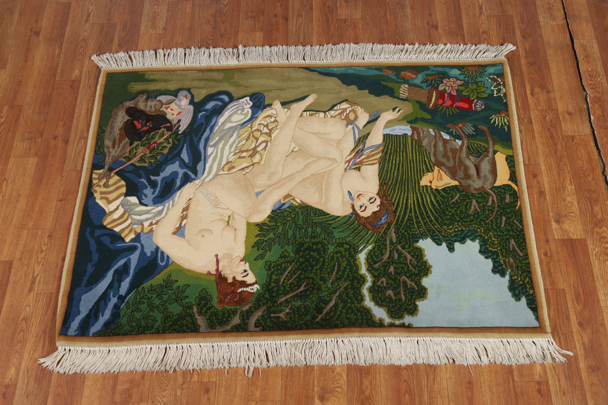 Vegetable Dye Pictorial Wool Tabriz Persian Rug 3x4