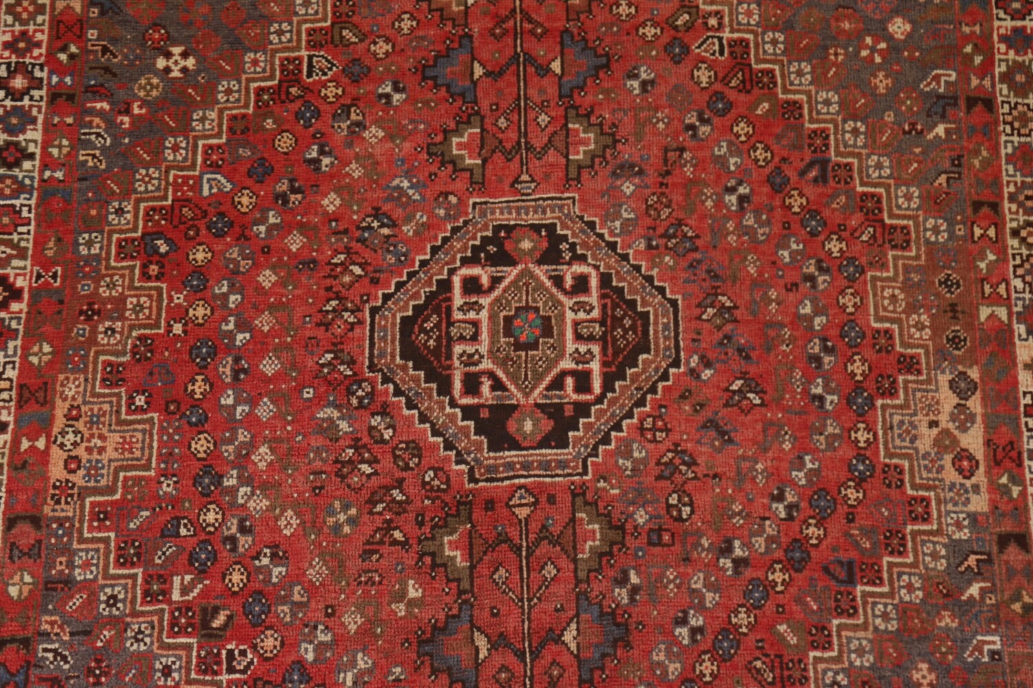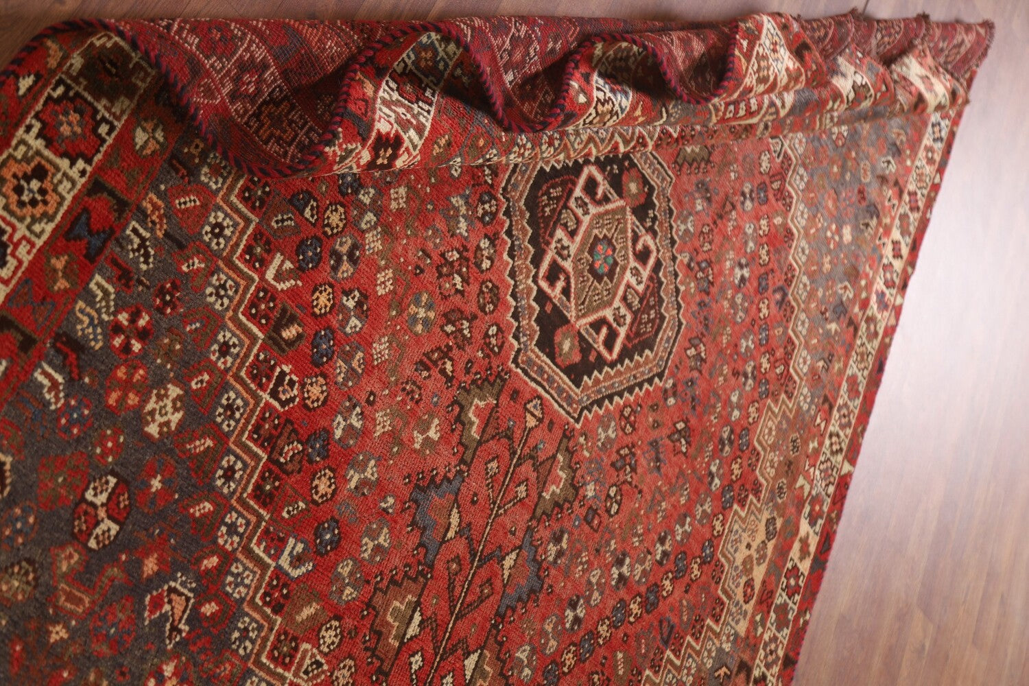 A Beautiful Genuine Persia ( Persia ) Qashqai rug is Hand Knotted by skillful weavers in Persia ( Persia ) with 100% Wool Material. This rug is in Very Good (Evenly Low Pile) condition. dimensions are 8' 1'' X 5' 4'' in foot and 246 X 163 in centimeter. the primary color is Red.