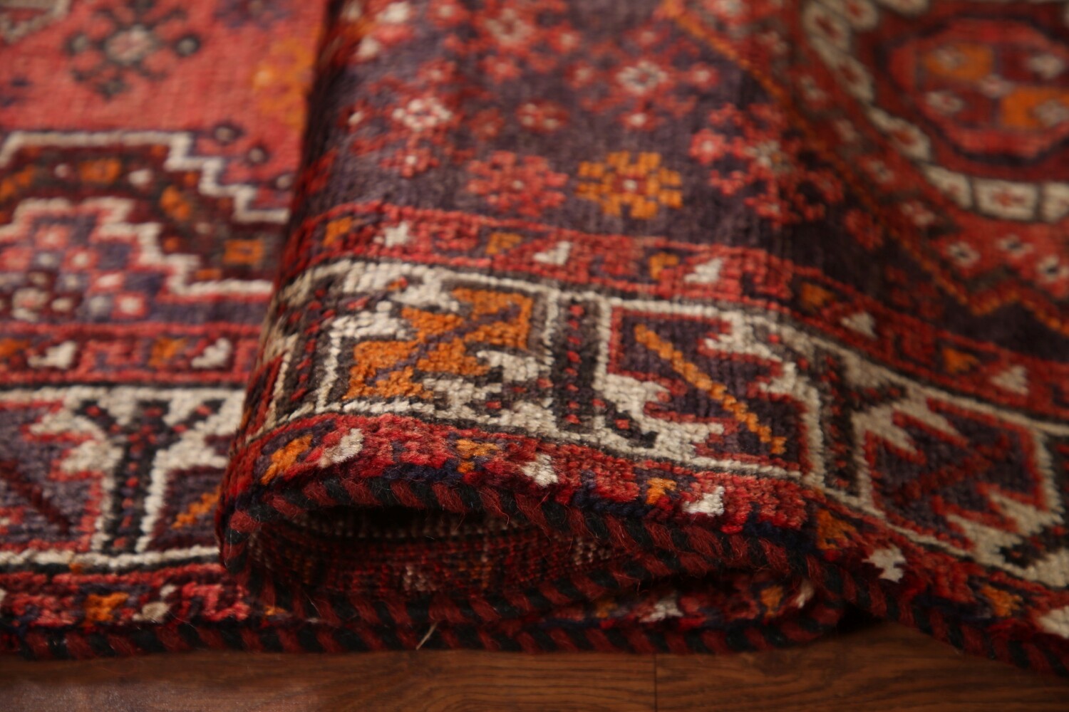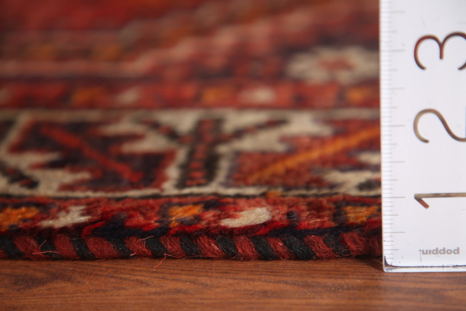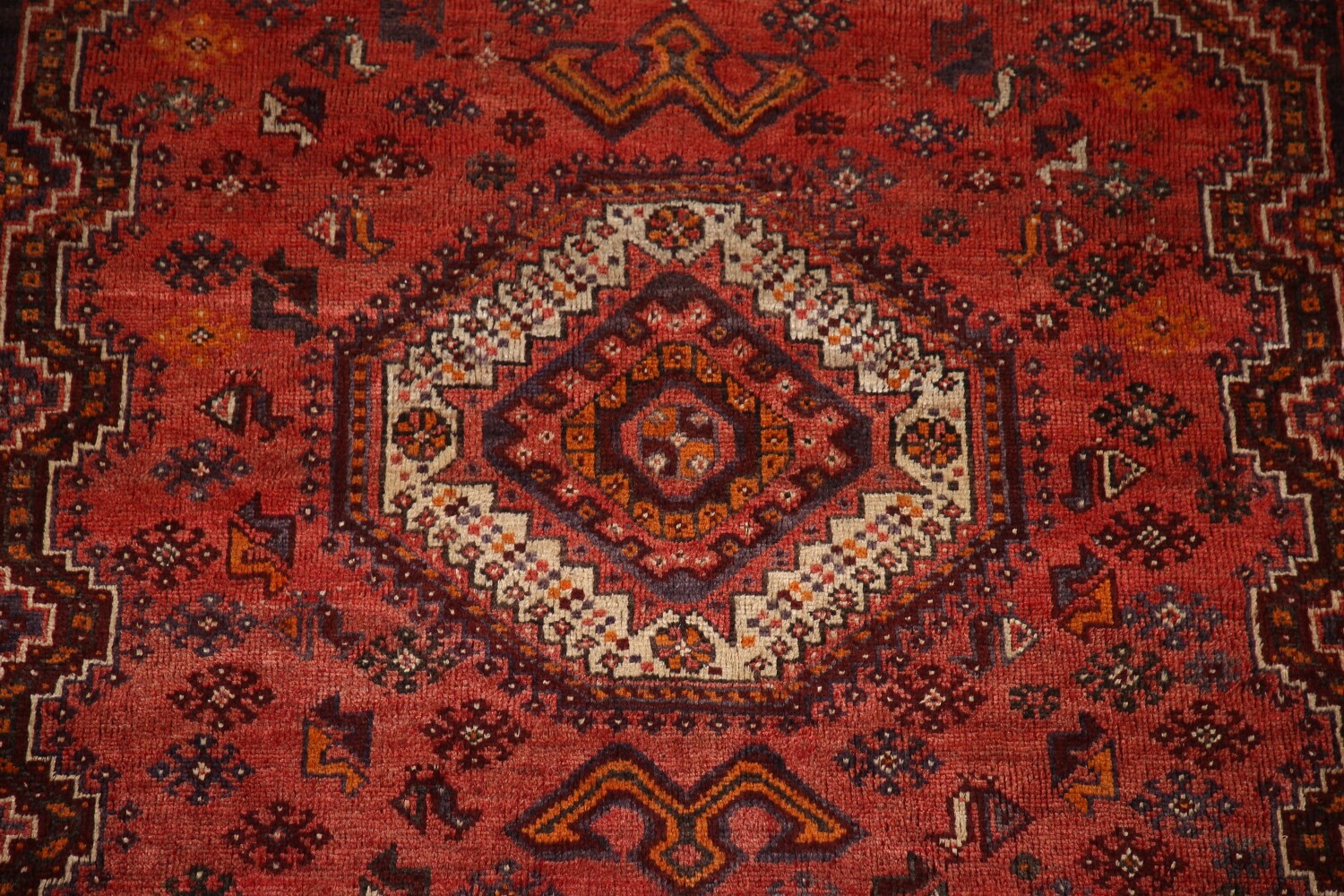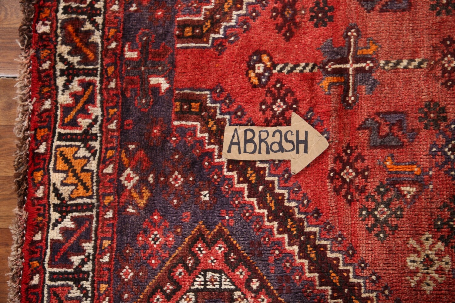 A Beautiful Genuine Persia ( Persia ) Qashqai rug is Hand Knotted by skillful weavers in Persia ( Persia ) with 100% Wool Material. This rug is in Very Good (Evenly Low Pile-Abrash-Repair) condition. dimensions are 7' 11'' X 5' 3'' in foot and 241 X 160 in centimeter. the primary color is Red.