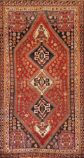 A Beautiful Genuine Persia ( Persia ) Qashqai rug is Hand Knotted by skillful weavers in Persia ( Persia ) with 100% Wool Material. This rug is in Very Good (Abrash) condition. dimensions are 8' 8'' X 4' 8'' in foot and 264 X 142 in centimeter. the primary color is Red.