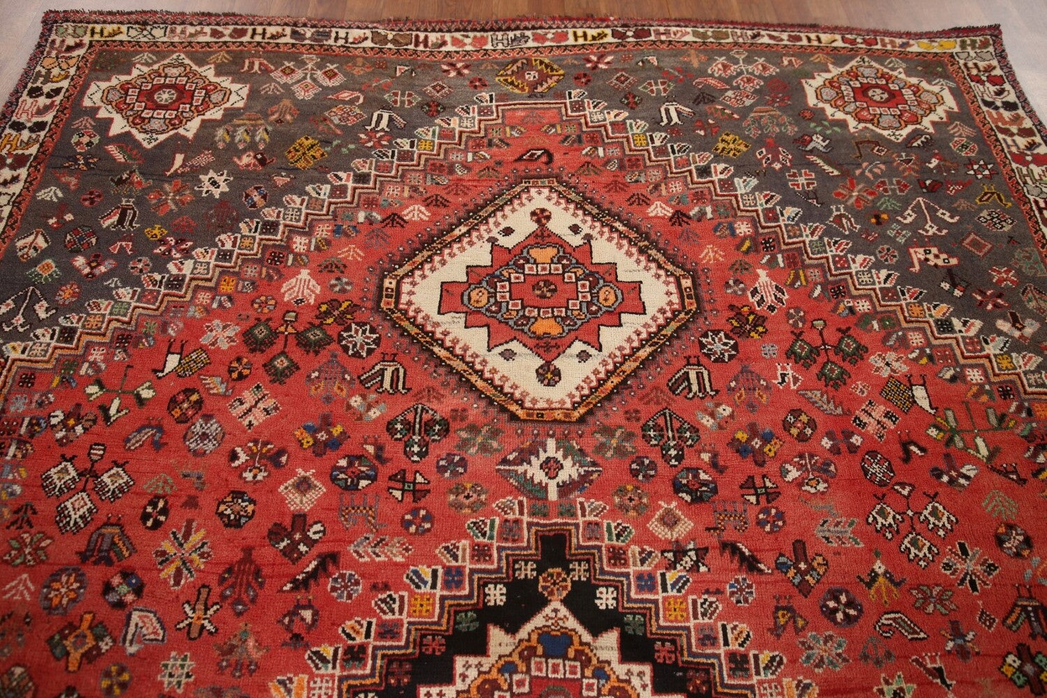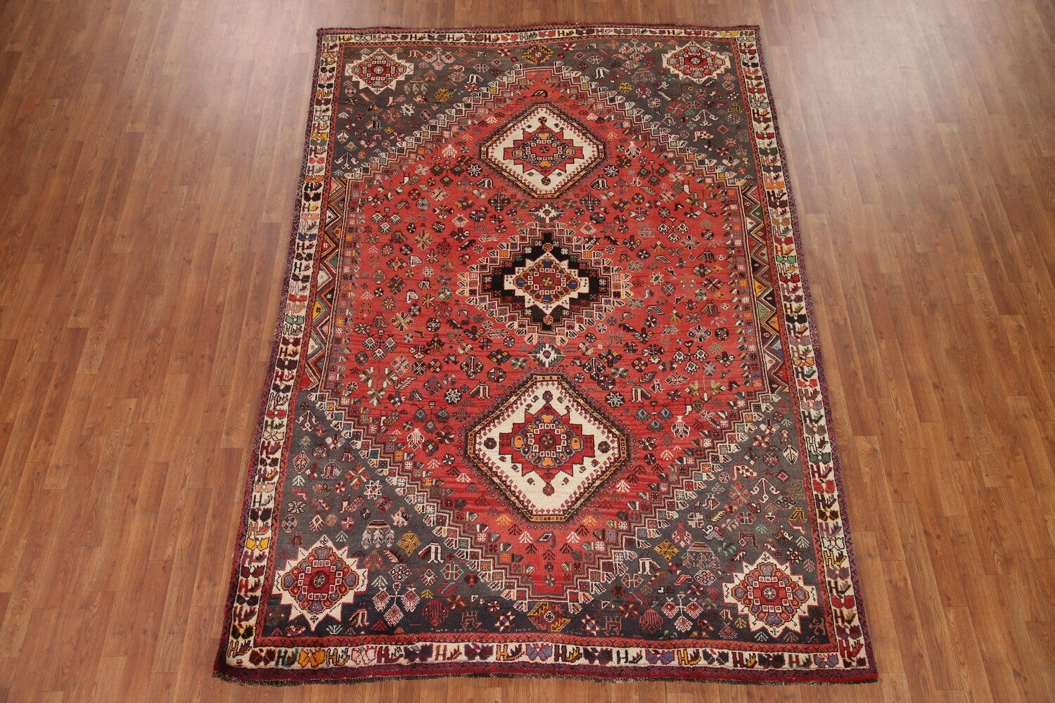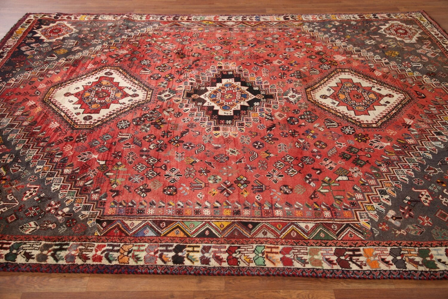 A Beautiful Genuine Persia ( Persia ) Qashqai rug is Hand Knotted by skillful weavers in Persia ( Persia ) with 100% Wool Material. This rug is in Very Good (Abrash) condition. dimensions are 9' 8'' X 6' 9'' in foot and 295 X 206 in centimeter. the primary color is Red.