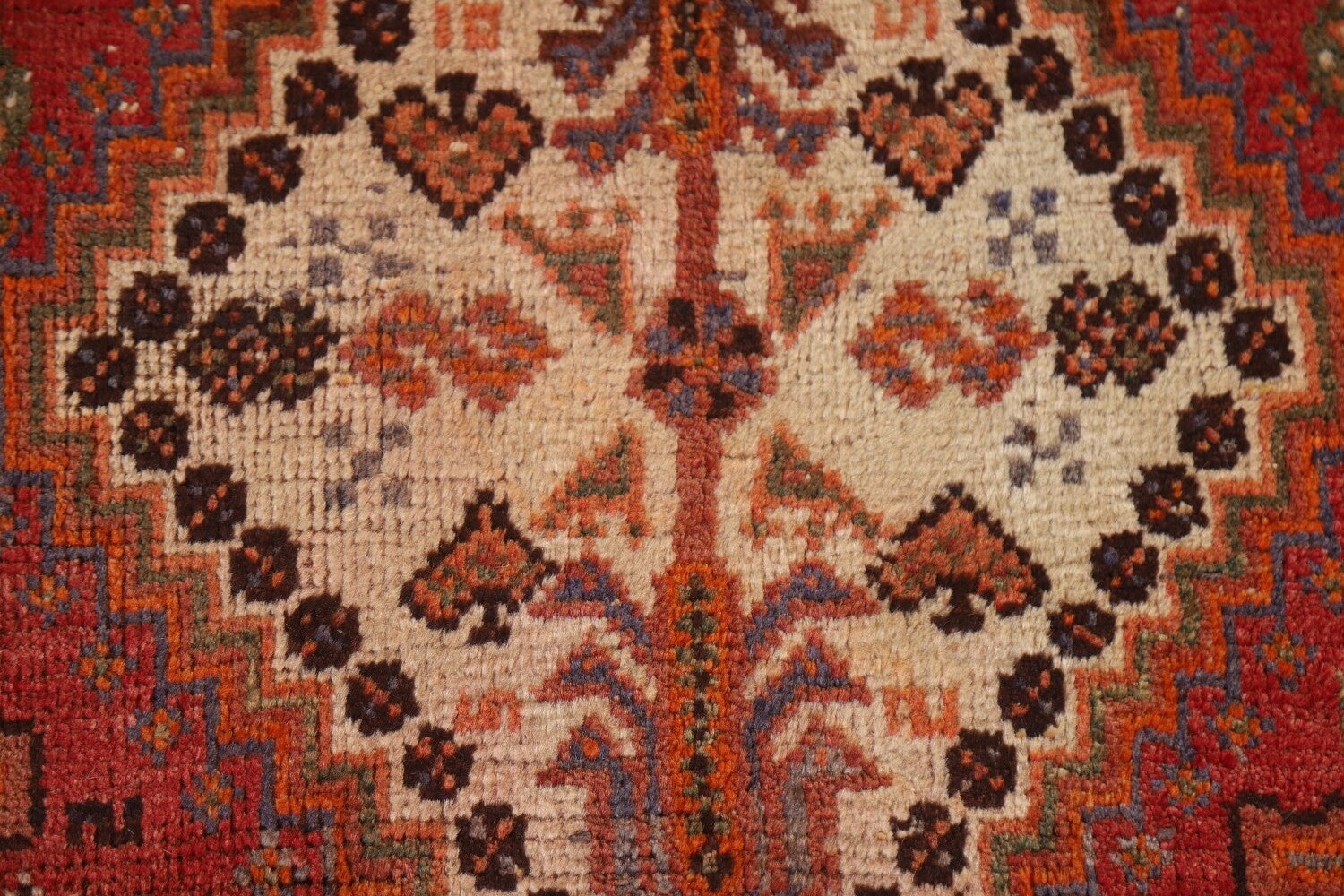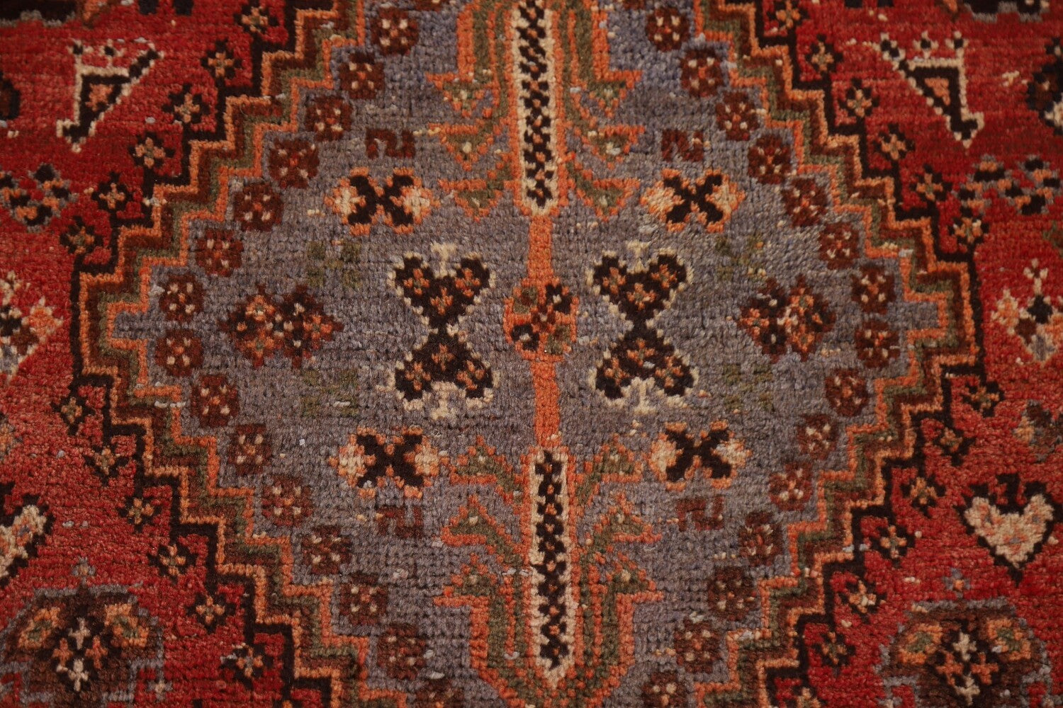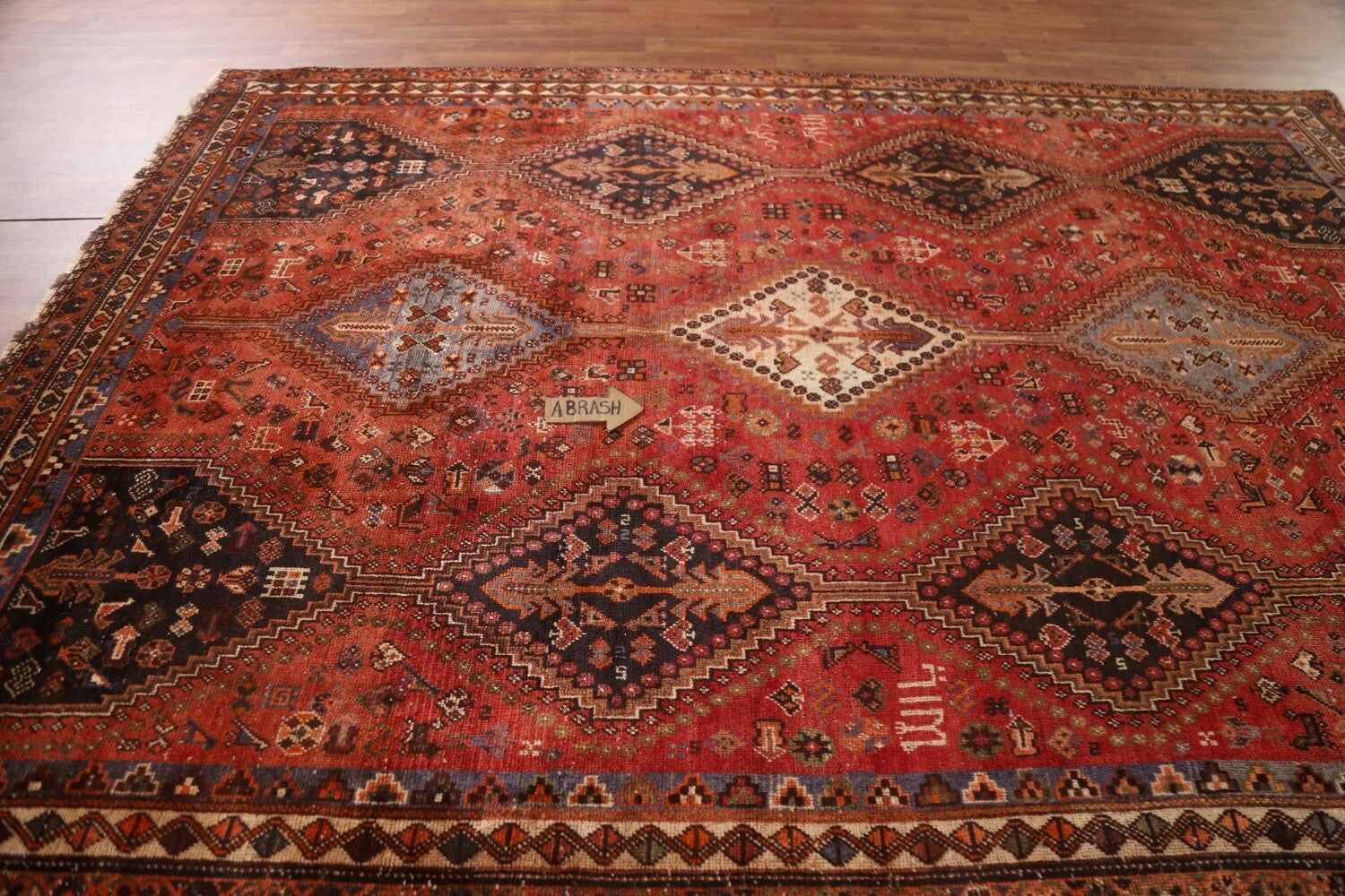 A Beautiful Genuine Persia ( Persia ) Qashqai rug is Hand Knotted by skillful weavers in Persia ( Persia ) with 100% Wool Material. This rug is in Very Good (Low Pile-Abrash) condition. dimensions are 9' 11'' X 6' 9'' in foot and 302 X 206 in centimeter. the primary color is Red.