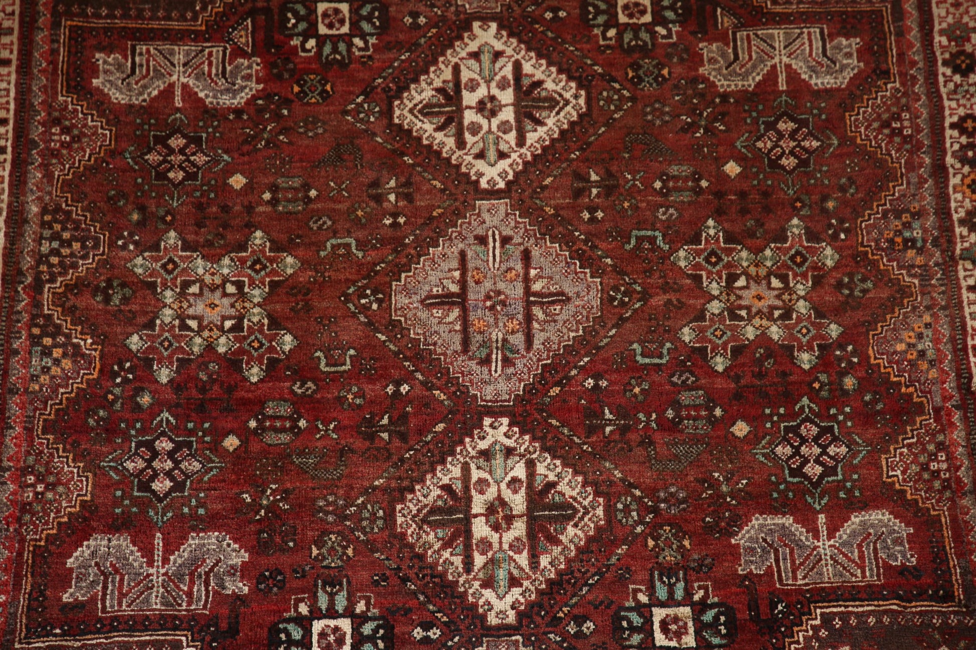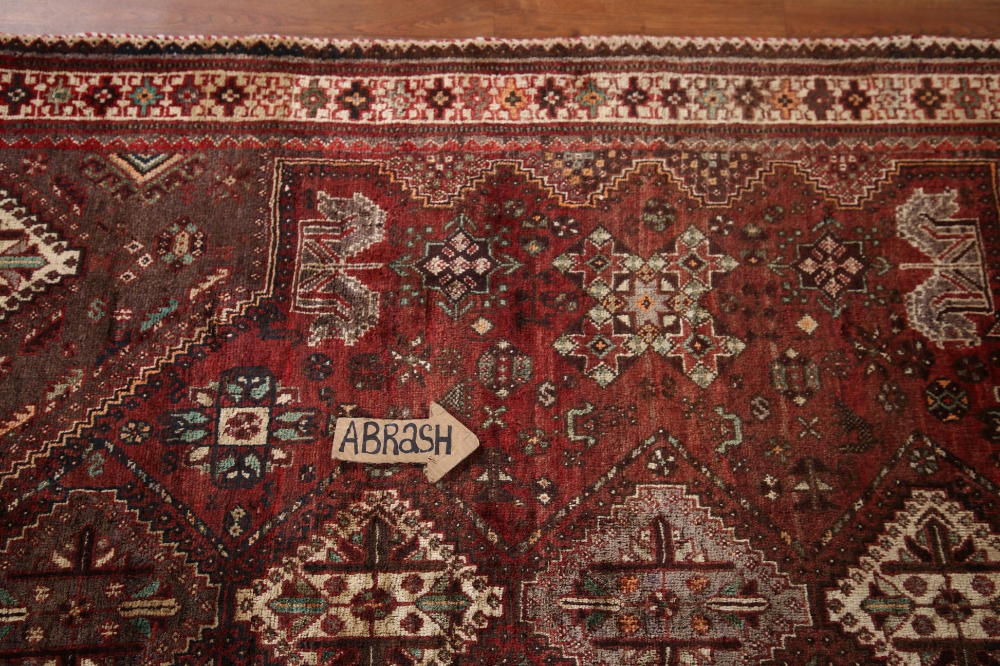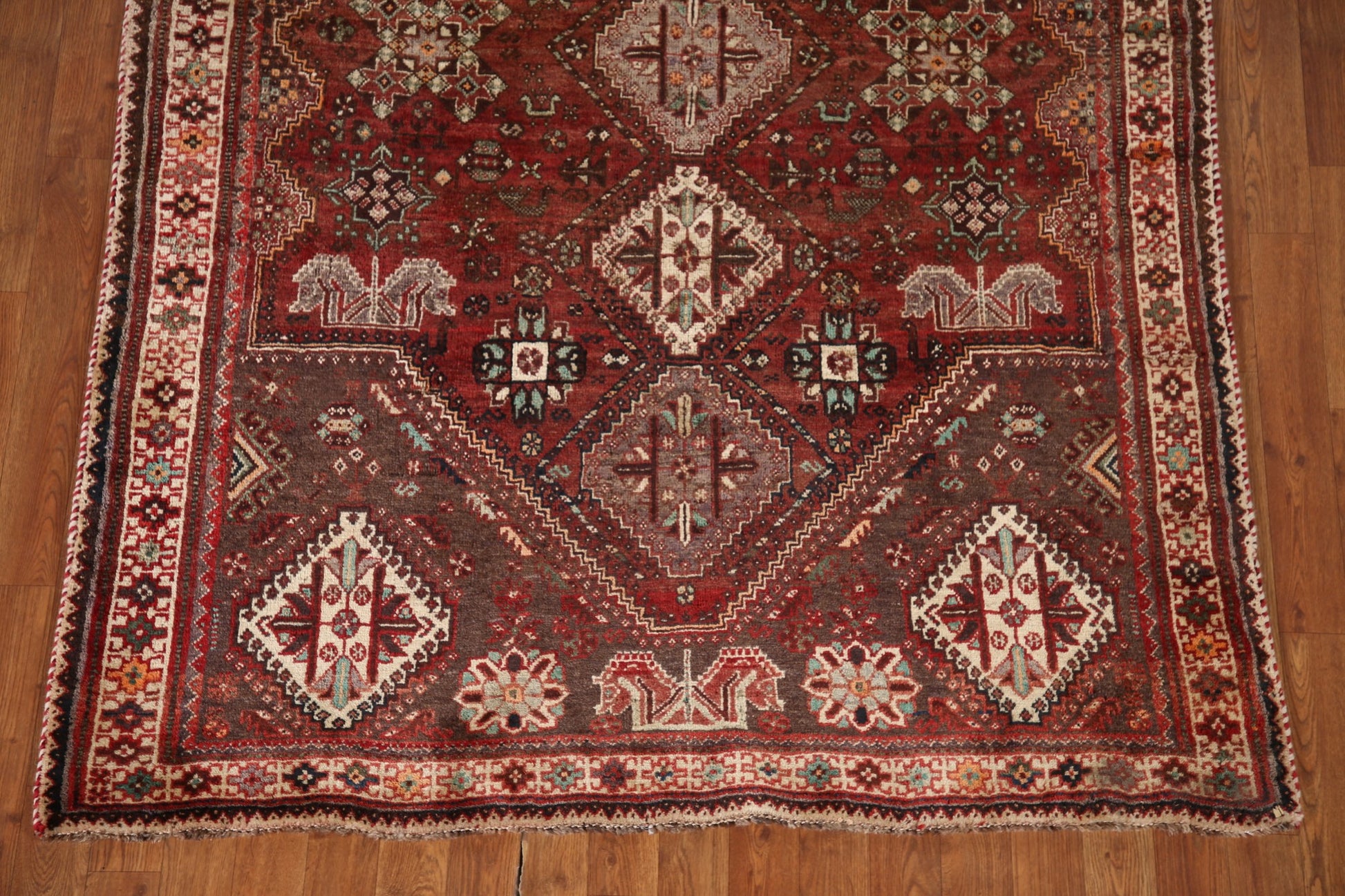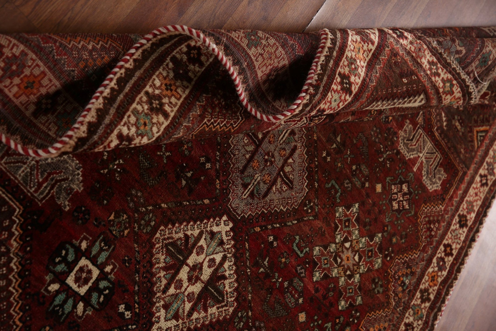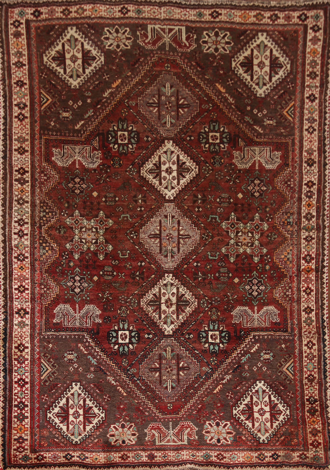 A Beautiful Genuine Persia ( Persia ) Qashqai rug is Hand Knotted by skillful weavers in Persia ( Persia ) with 100% Wool Material. This rug is in Very Good (Abrash) condition. dimensions are 7' 0'' X 4' 9'' in foot and 213 X 145 in centimeter. the primary color is Red.