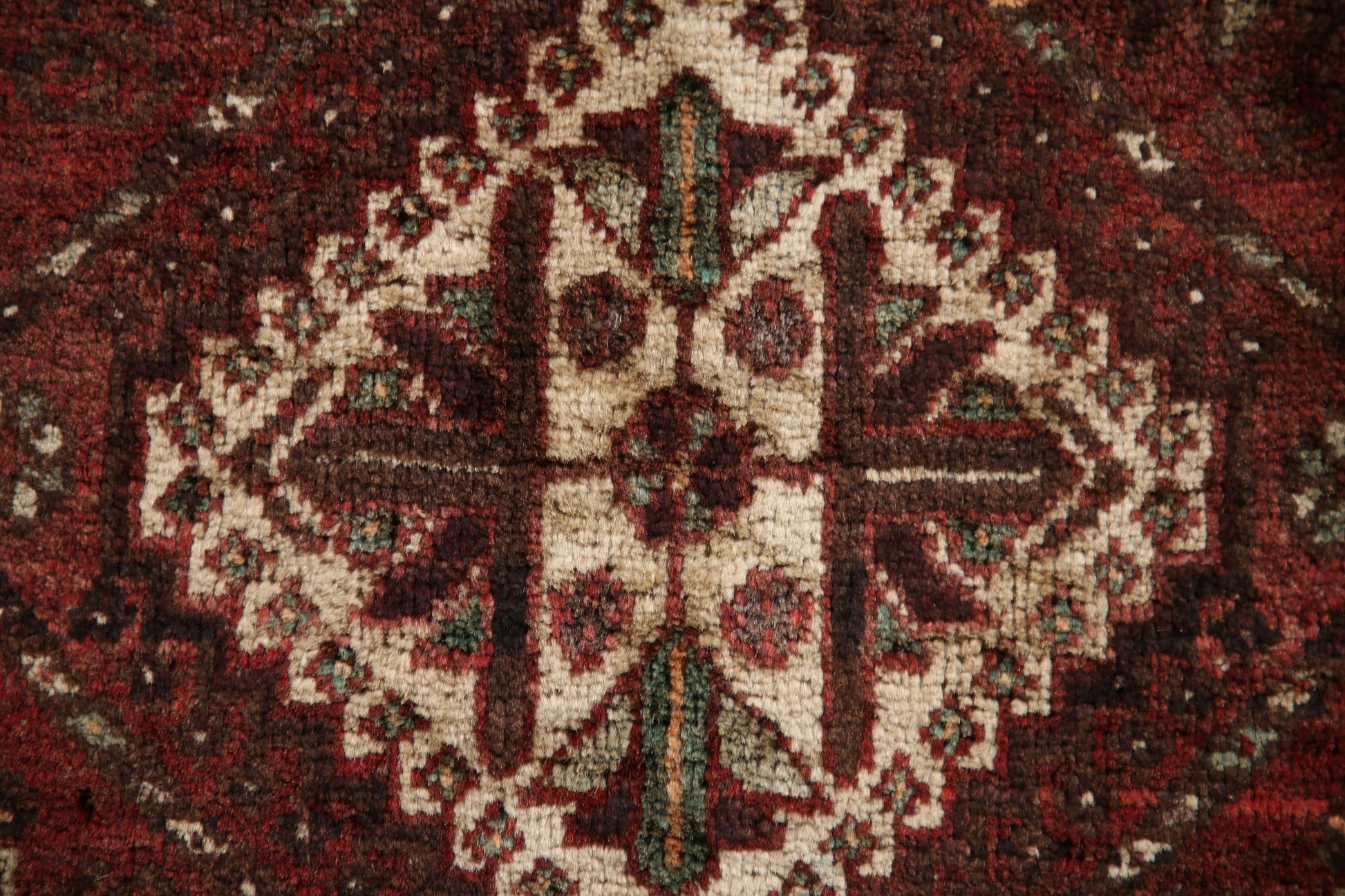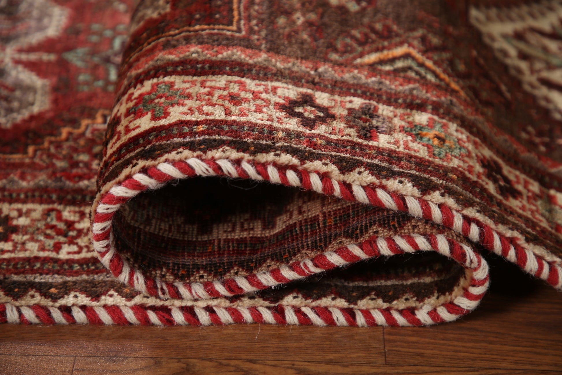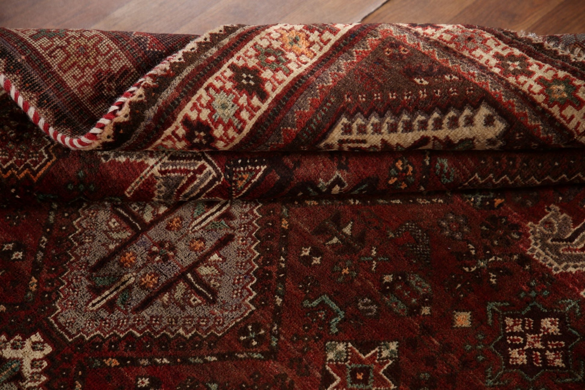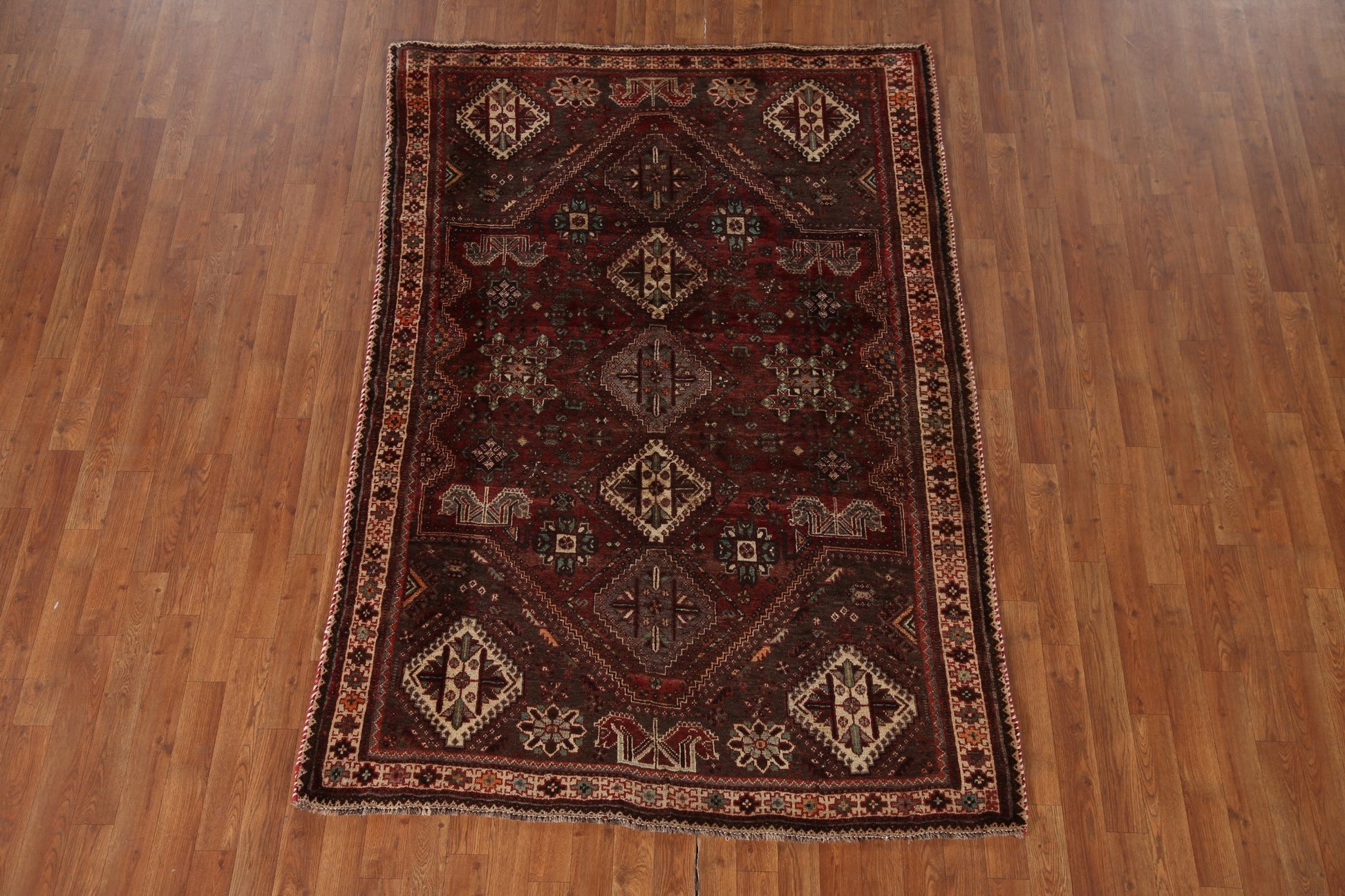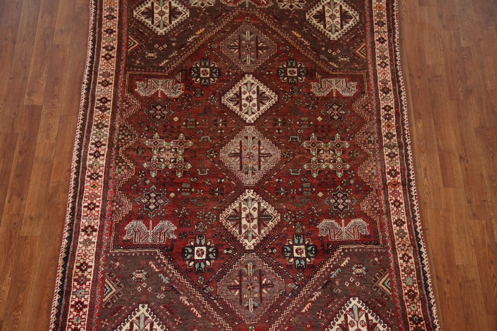 A Beautiful Genuine Persia ( Persia ) Qashqai rug is Hand Knotted by skillful weavers in Persia ( Persia ) with 100% Wool Material. This rug is in Very Good (Abrash) condition. dimensions are 7' 0'' X 4' 9'' in foot and 213 X 145 in centimeter. the primary color is Red.