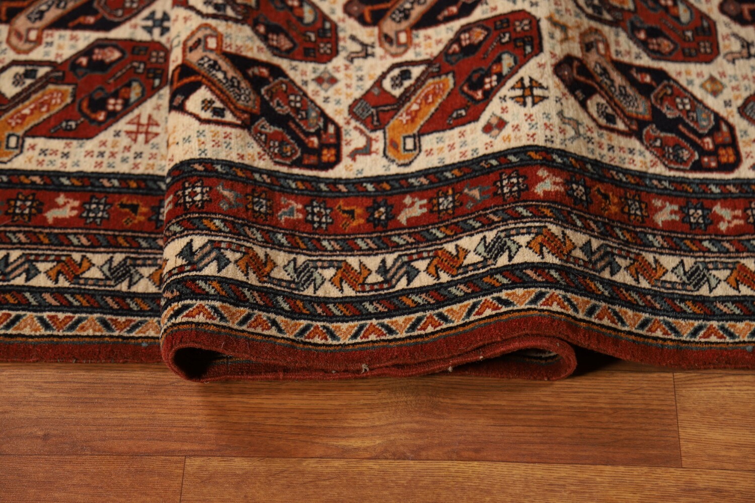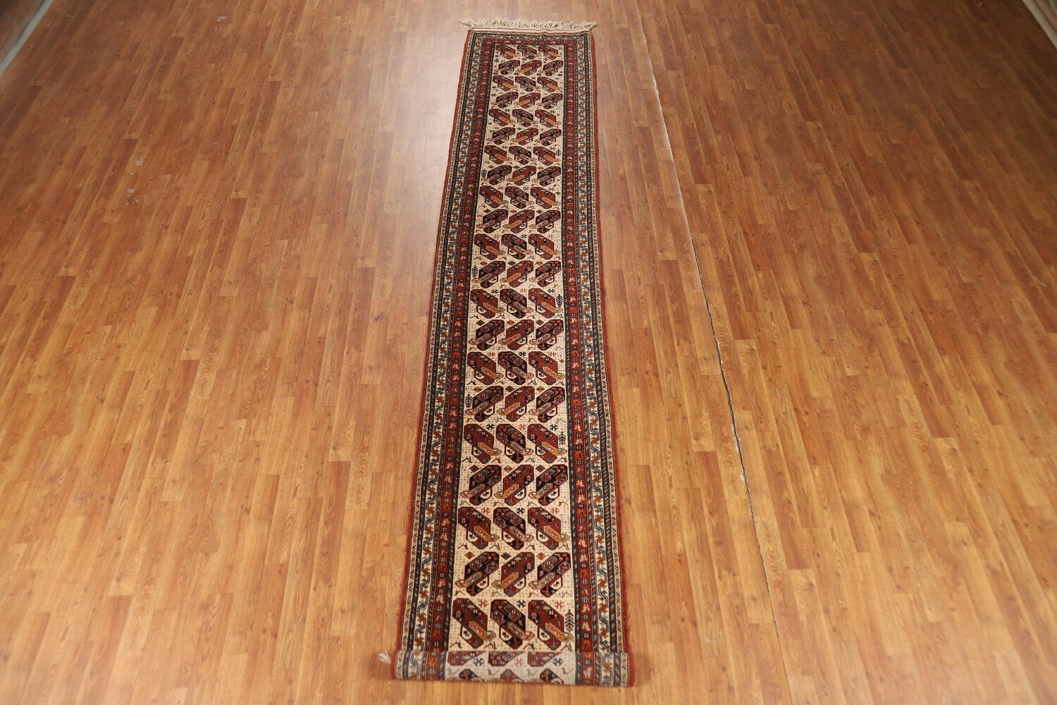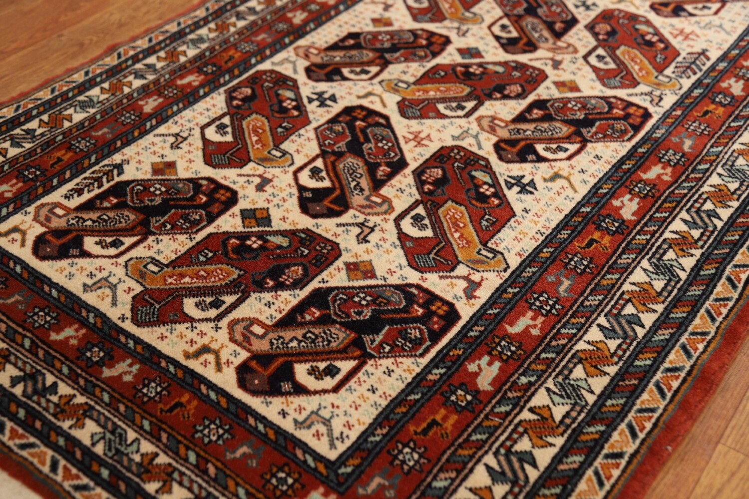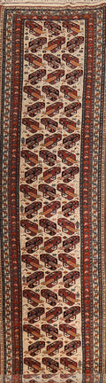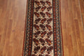 A Beautiful Genuine Persia ( Persia ) Qashqai rug is Hand Knotted by skillful weavers in Persia ( Persia ) with 100% Wool Material. This rug is in Excellent condition. dimensions are 14' 5'' X 2' 5'' in foot and 439 X 74 in centimeter. the primary color is Beige & Ivories.