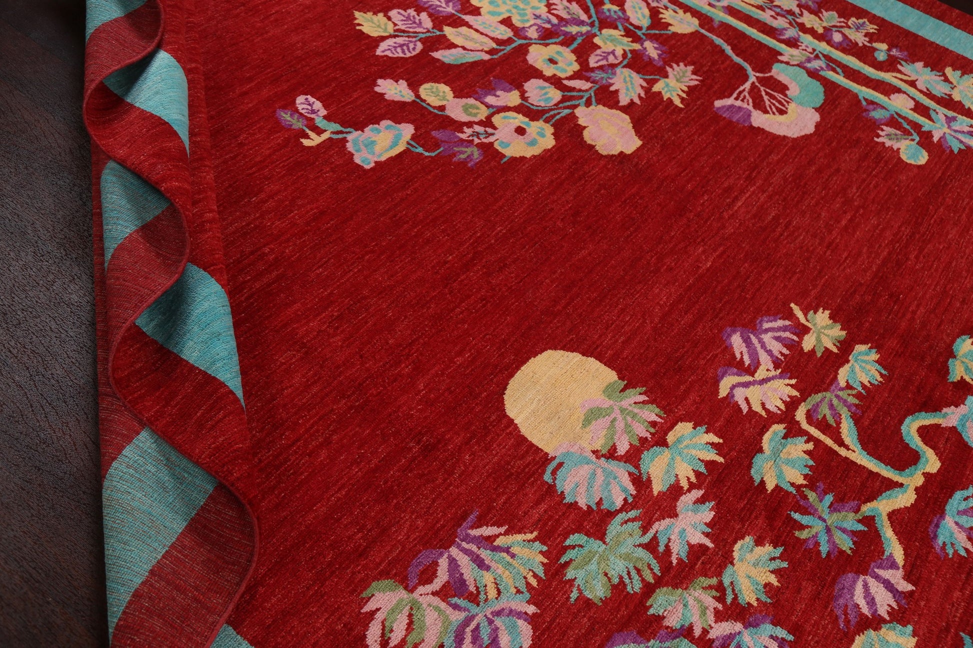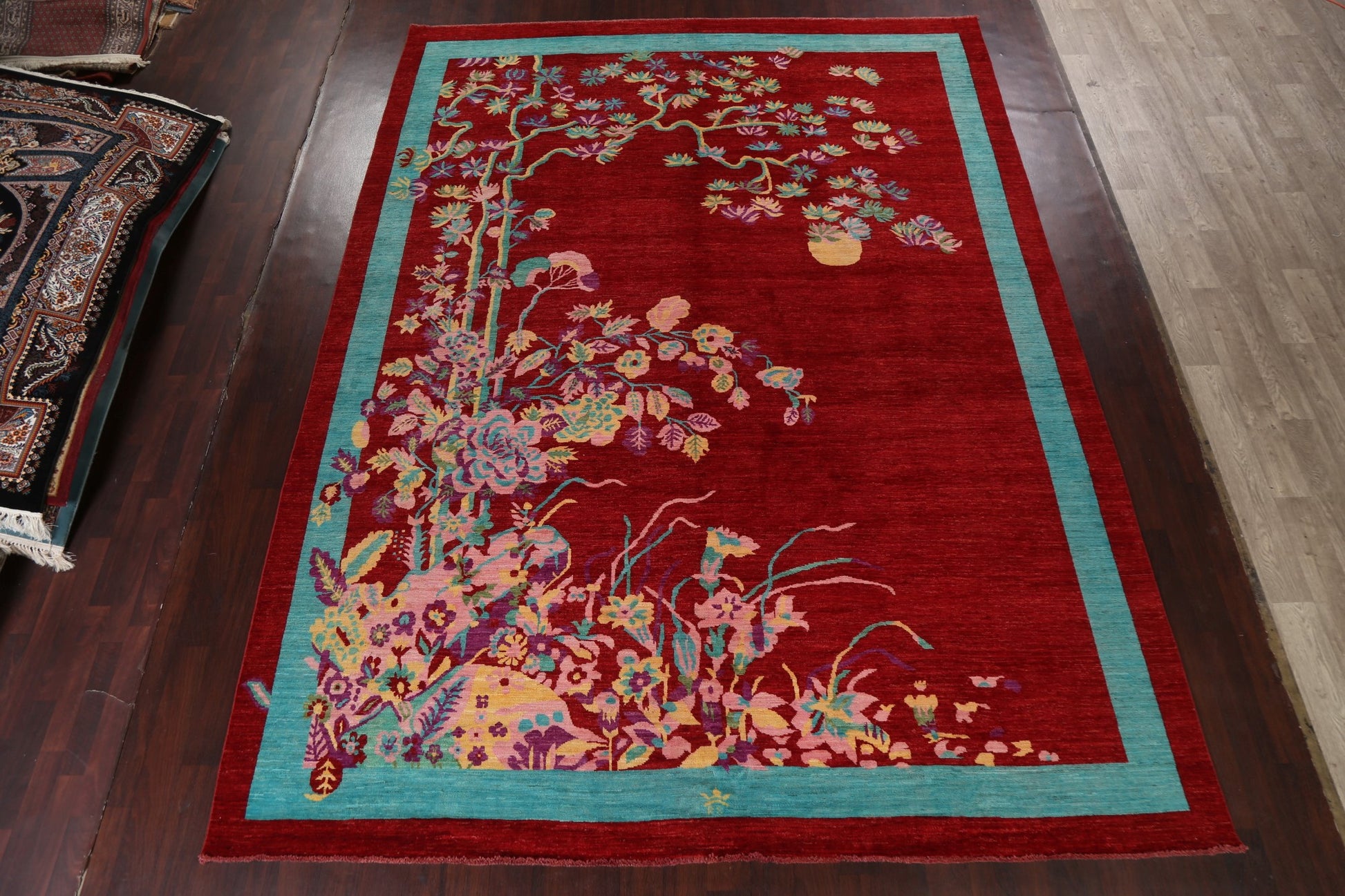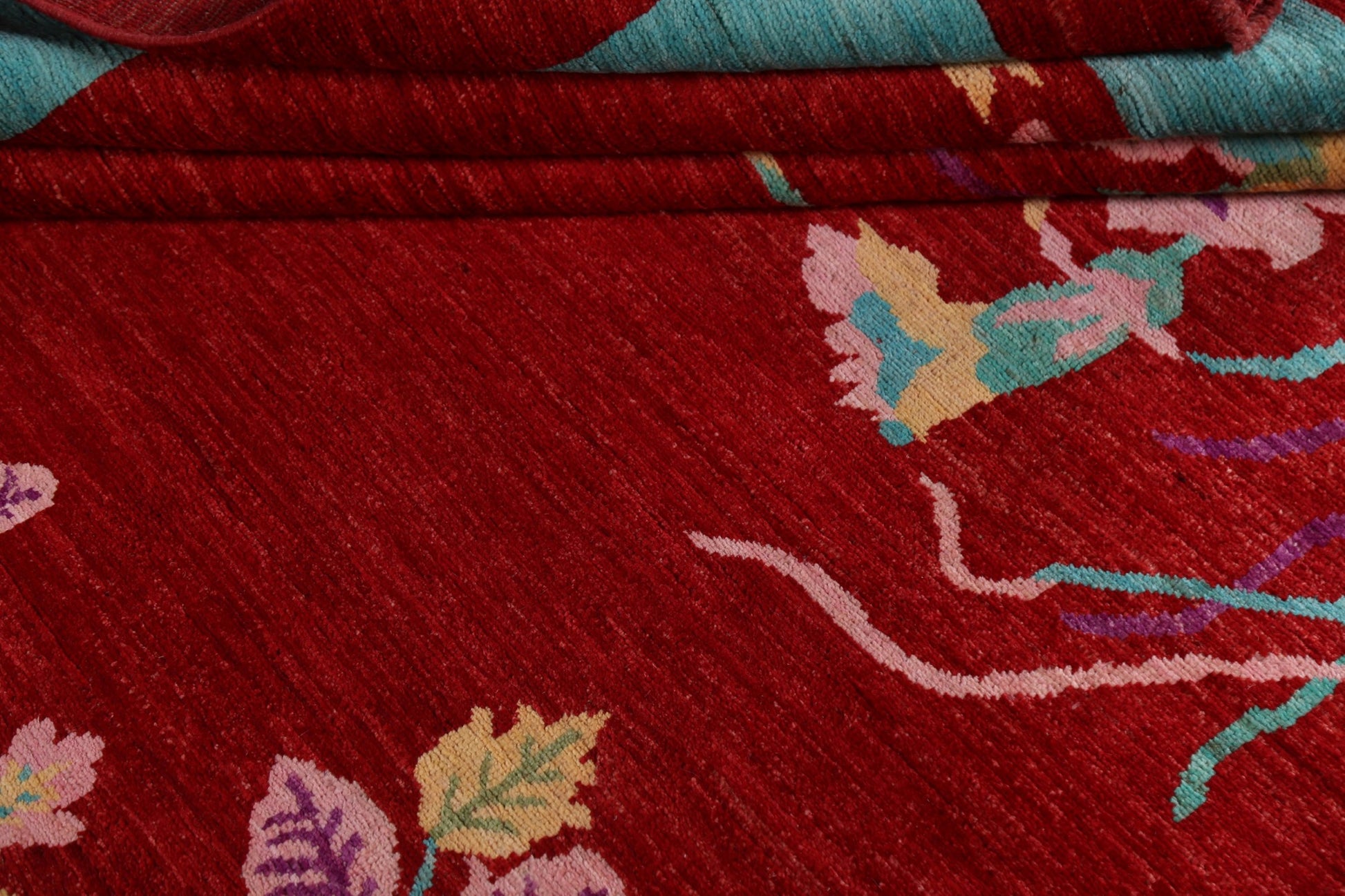 Vegetable Dye Red Abstract Handmade Area Rug 10x13