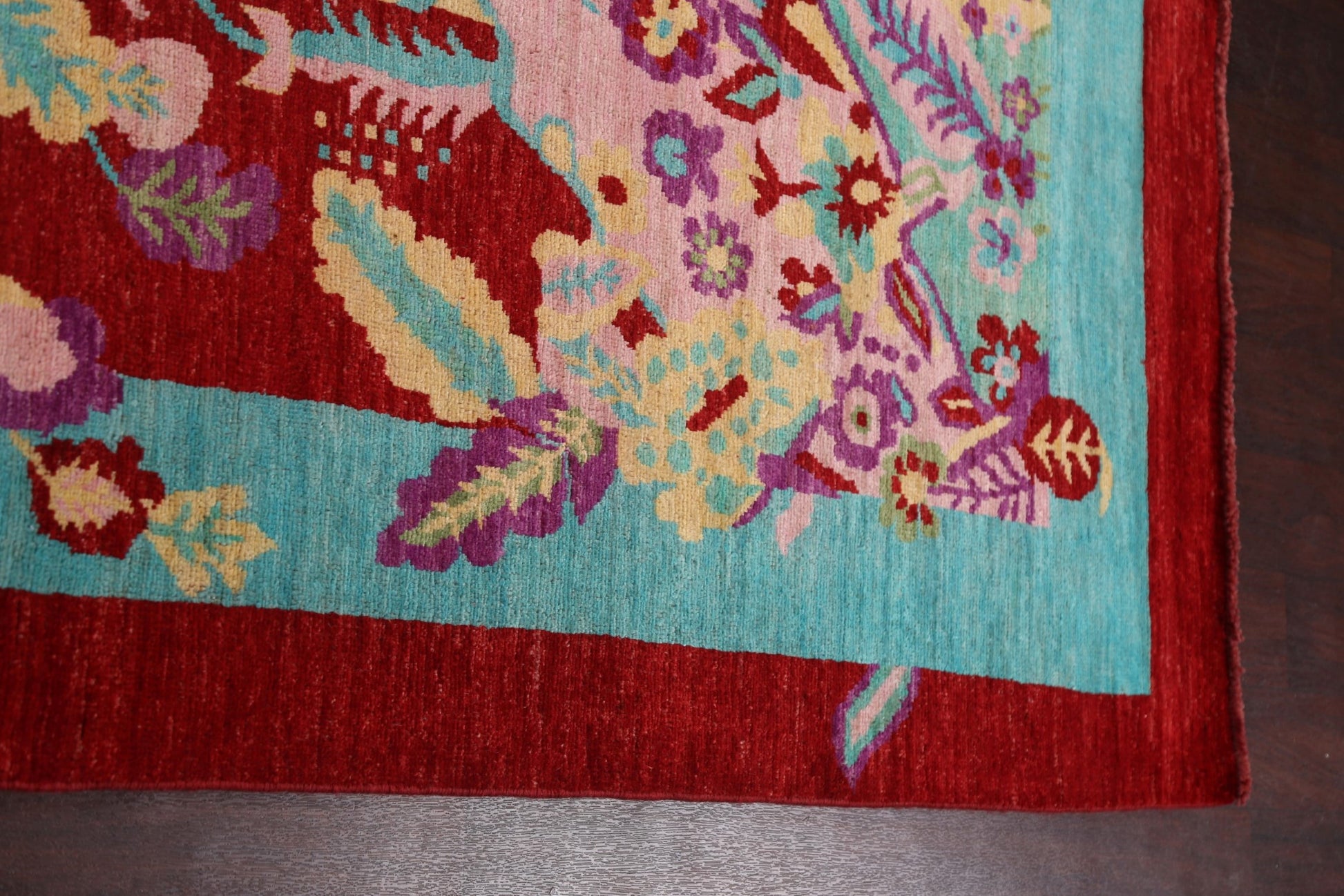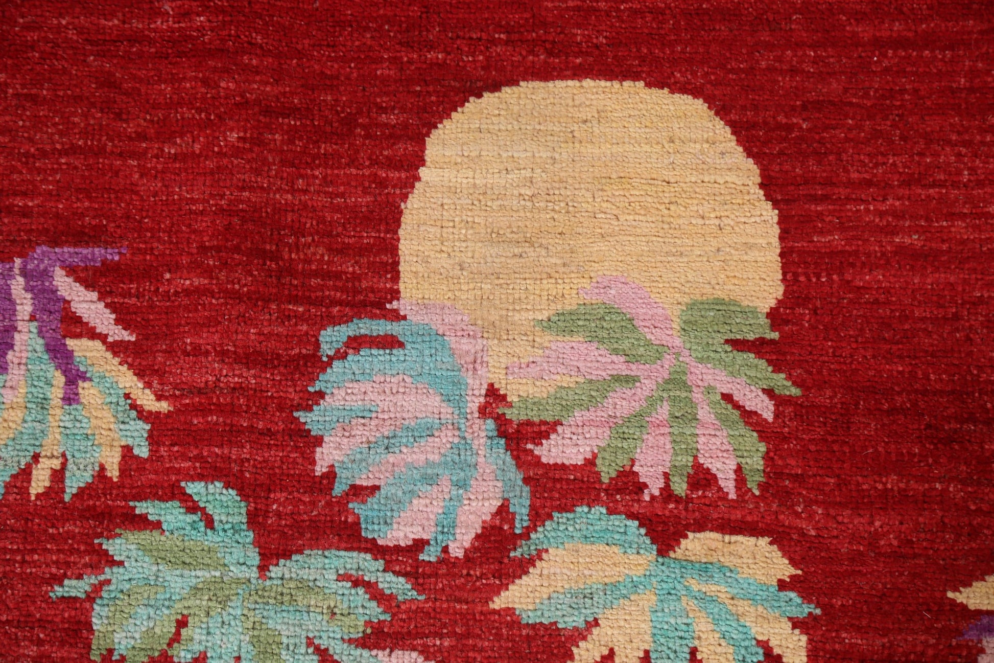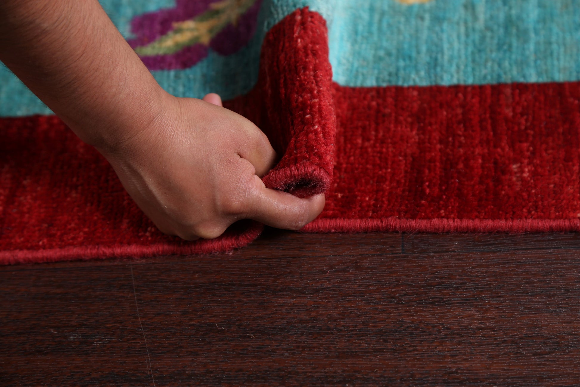 Vegetable Dye Red Abstract Handmade Area Rug 10x13