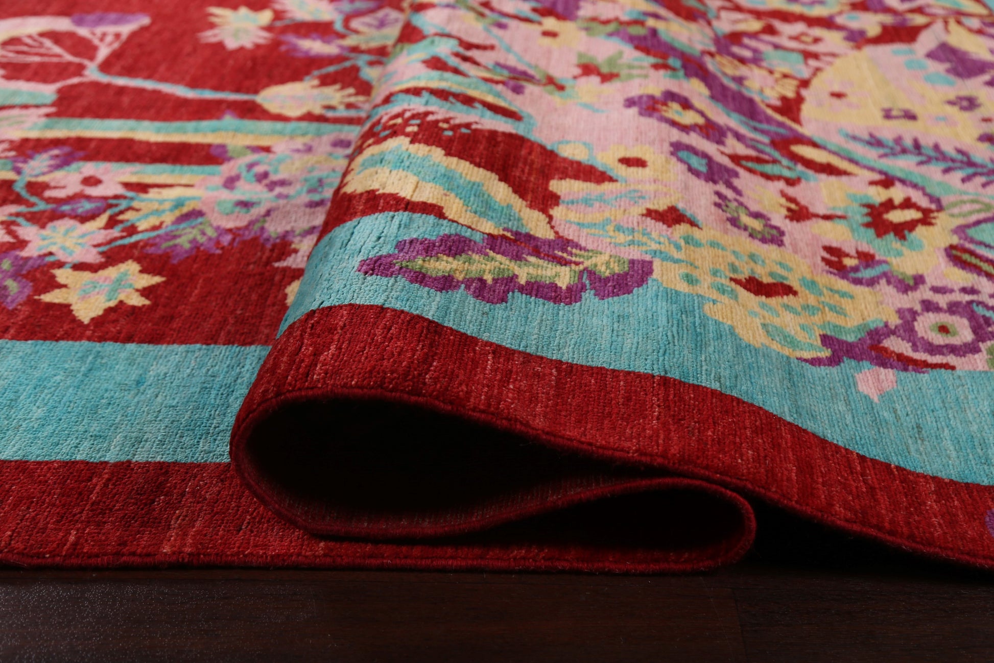 Vegetable Dye Red Abstract Oriental Area Rug 10x14