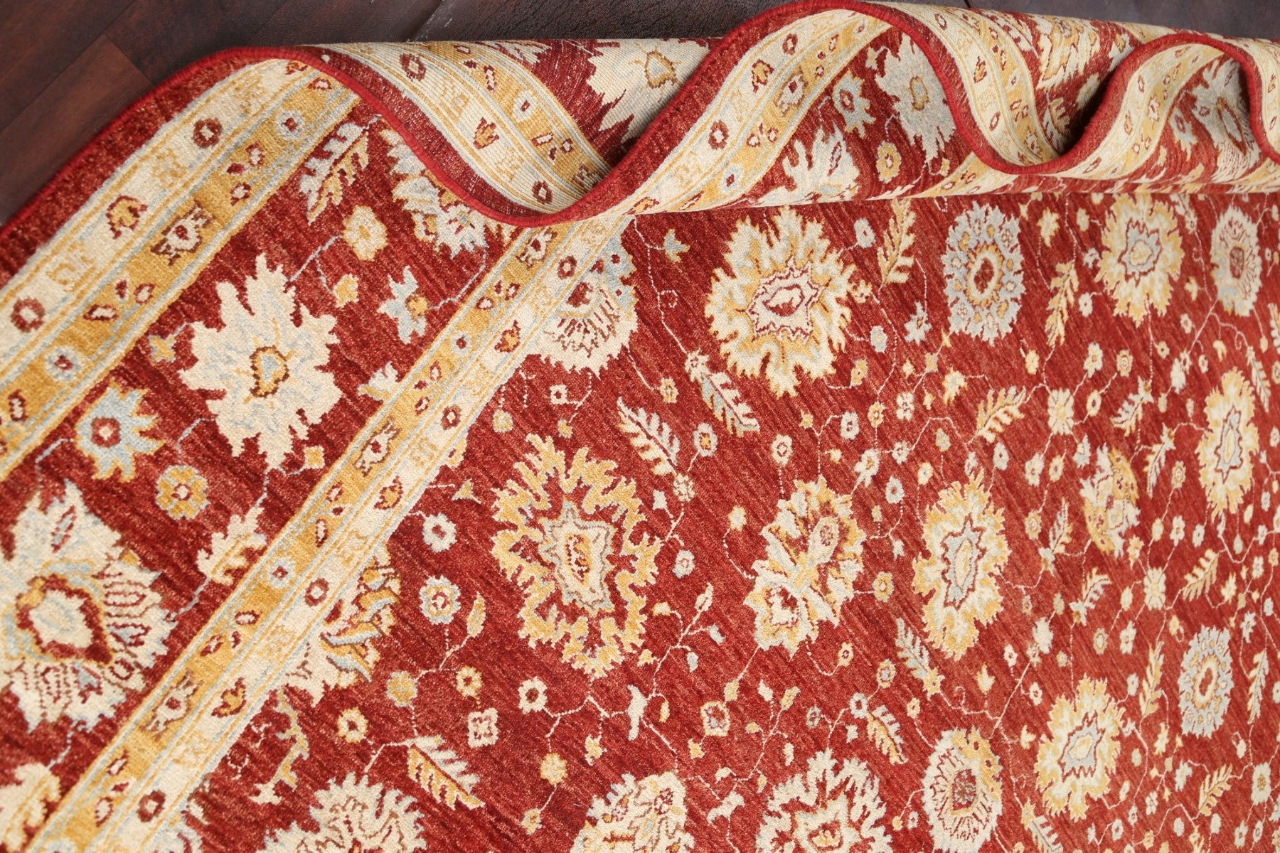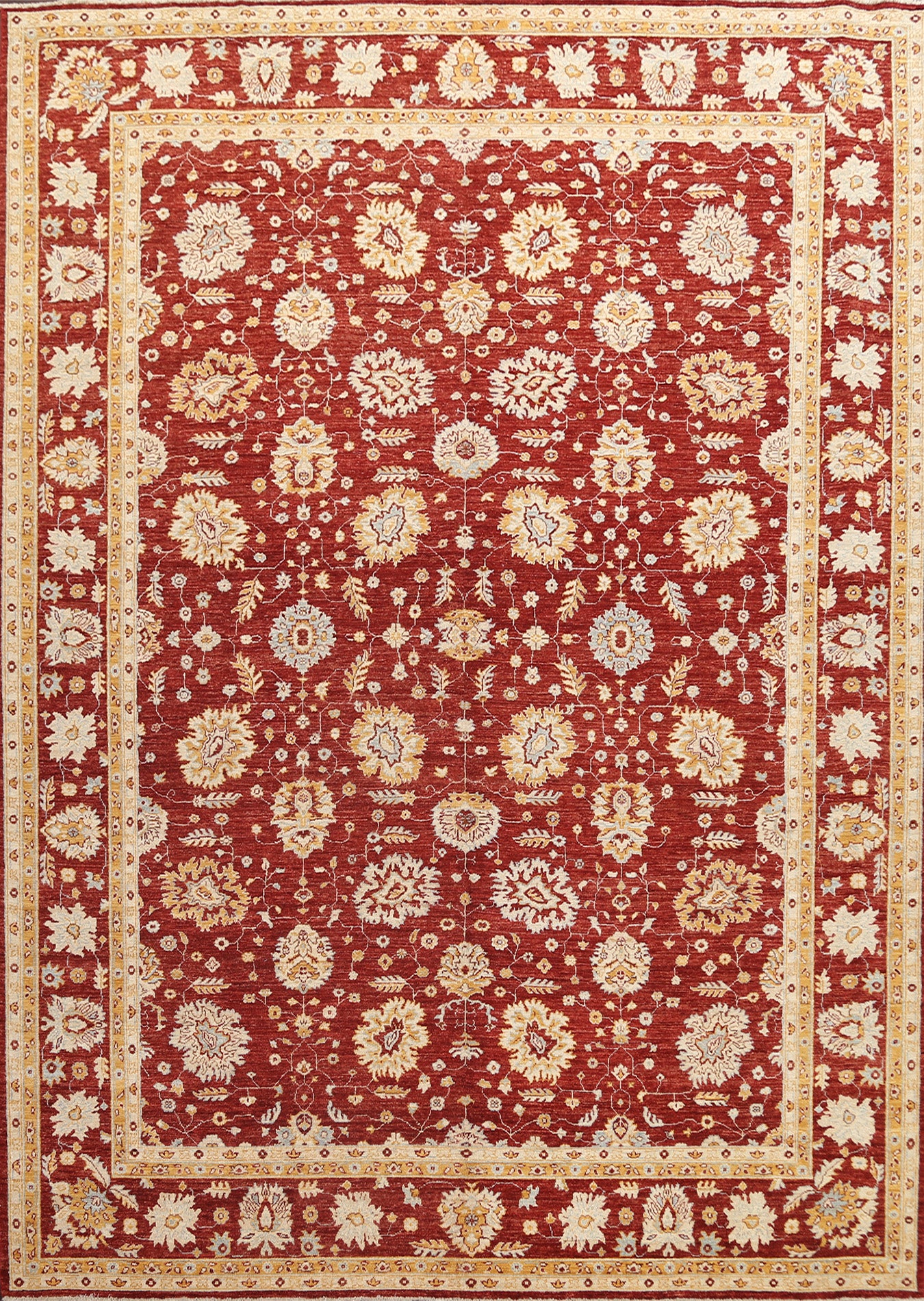A Beautiful Genuine Pakistan Chobi-Peshawar rug is Hand Knotted by skillful weavers in Pakistan with 100% Wool Material. This rug is in New, First Quality condition. dimensions are 12' 0'' X 9' 1'' in foot and 366 X 277 in centimeter. the primary color is Red.