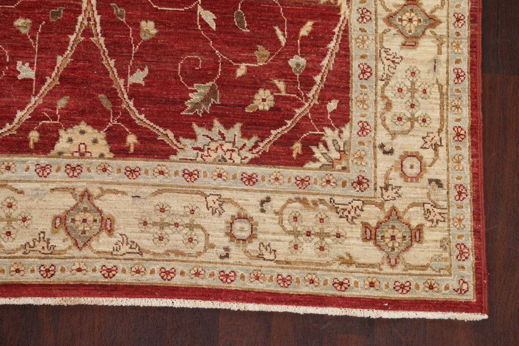A Beautiful Genuine Pakistan Chobi-Peshawar rug is Hand Knotted by skillful weavers in Pakistan with 100% Wool Material. This rug is in New, First Quality condition. dimensions are 9' 9'' X 6' 5'' in foot and 297 X 196 in centimeter. the primary color is Red.