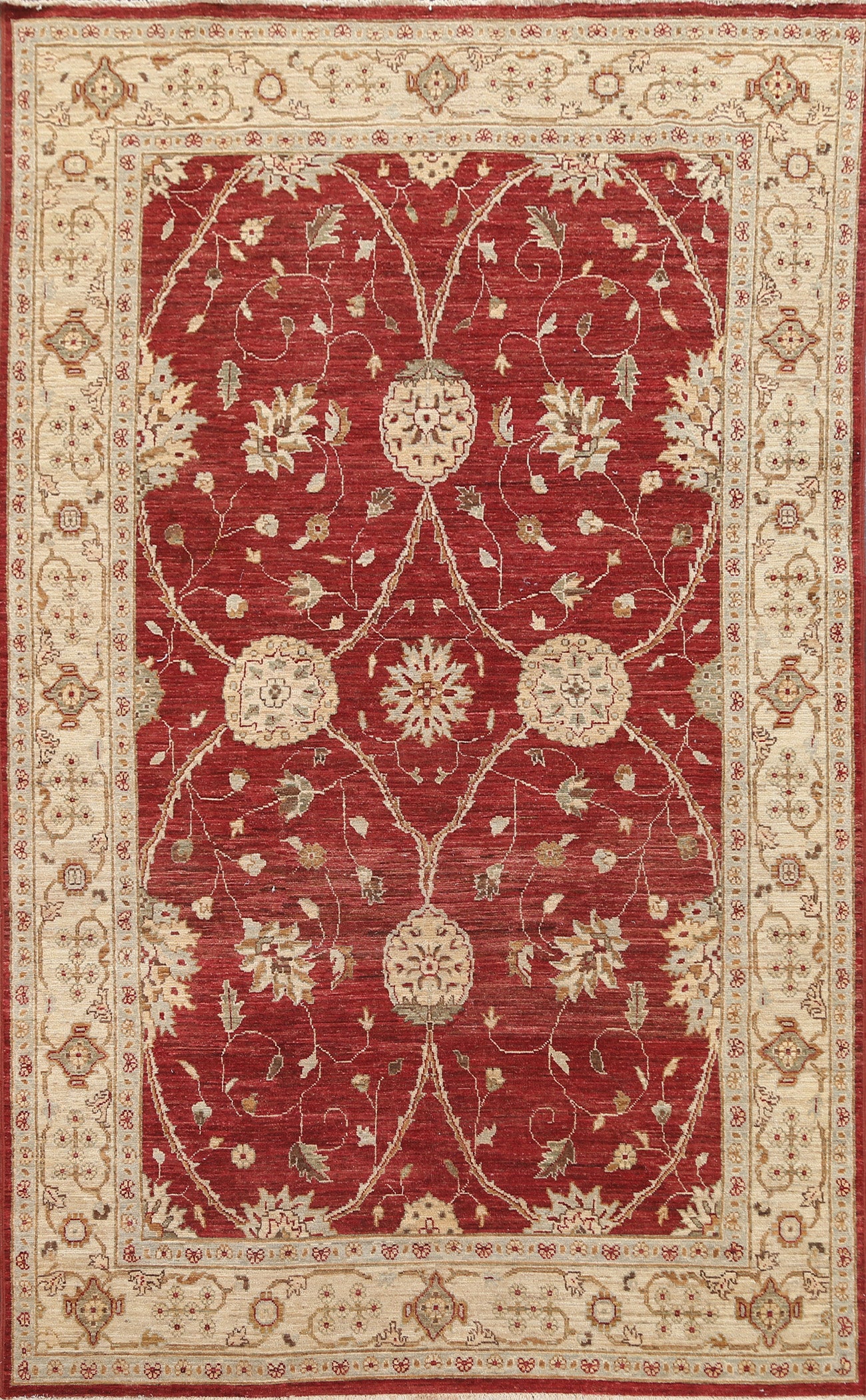 Vegetable Dye Red Chobi Peshawar Oriental Wool Rug 6x10