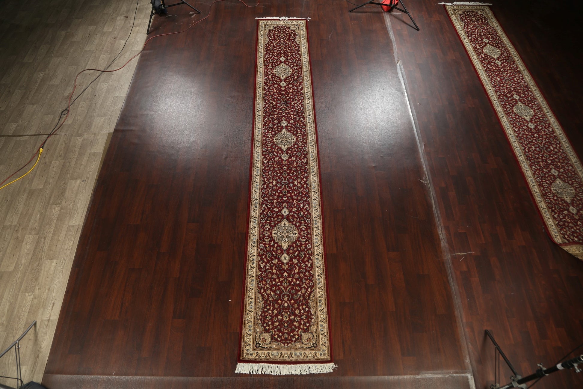 A Beautiful Genuine Pakistan Kashan rug is Hand Knotted by skillful weavers in Pakistan with 100% Wool Material. This rug is in New, First Quality condition. dimensions are 16' 7'' X 2' 7'' in foot and 505 X 79 in centimeter. the primary color is Red.