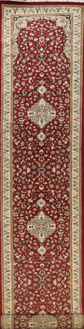 Vegetable Dye Red Floral Kashan Oriental Runner Rug 3x17