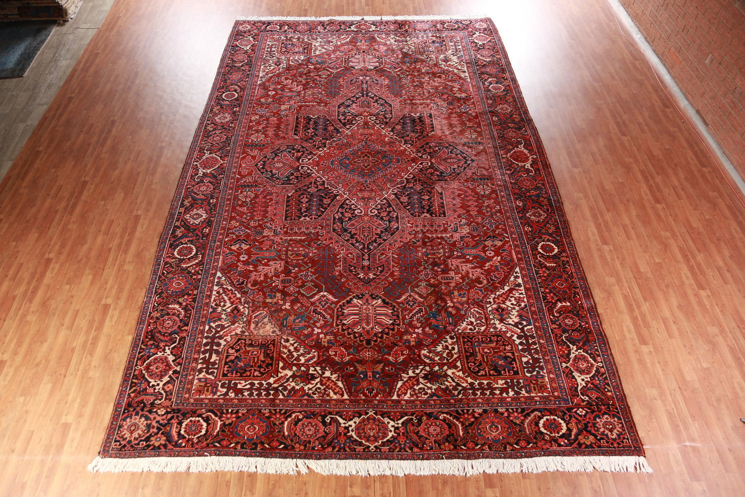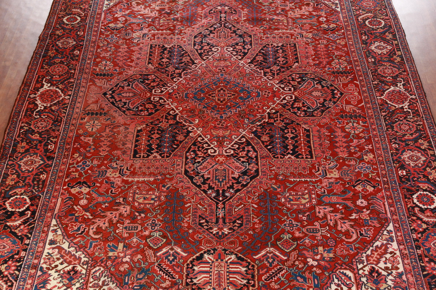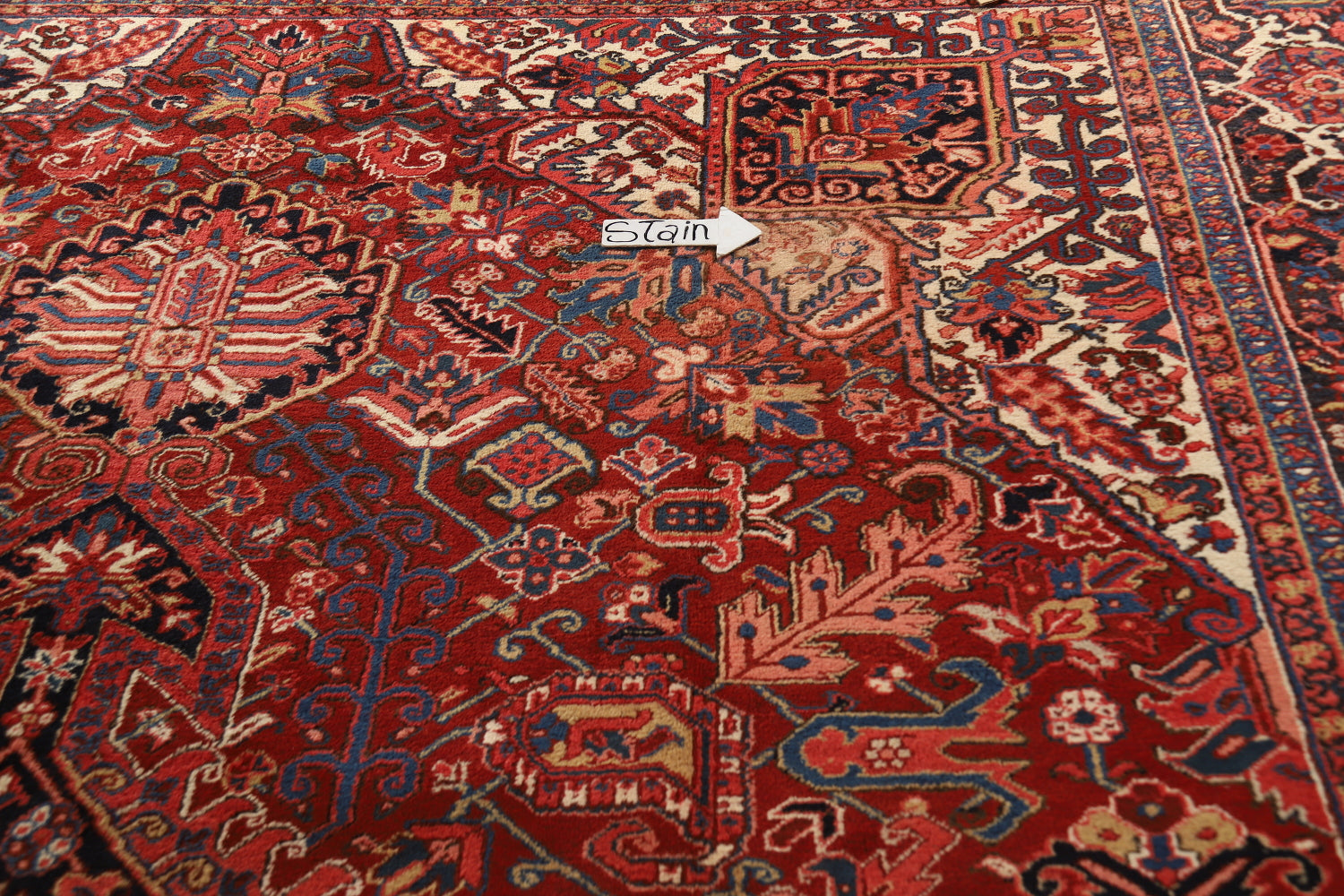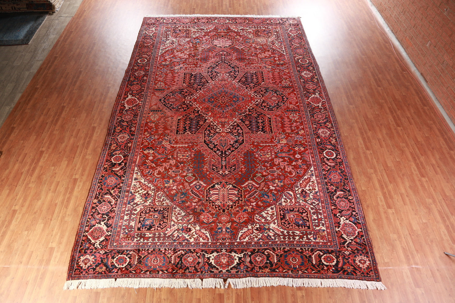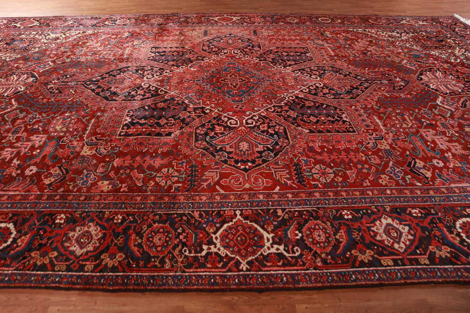 Vegetable Dye Red Geometric Heriz Persian Large Rug 12x19