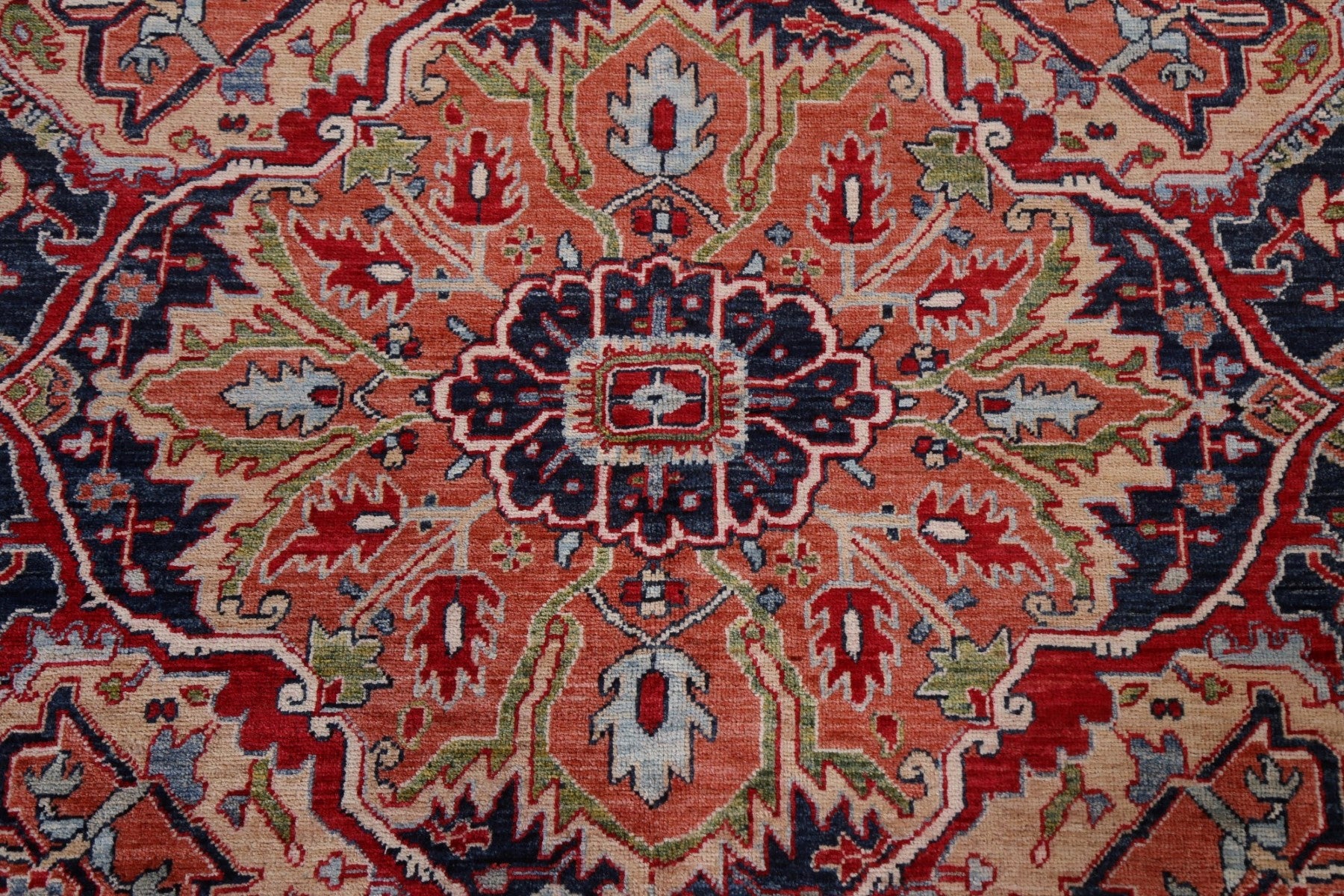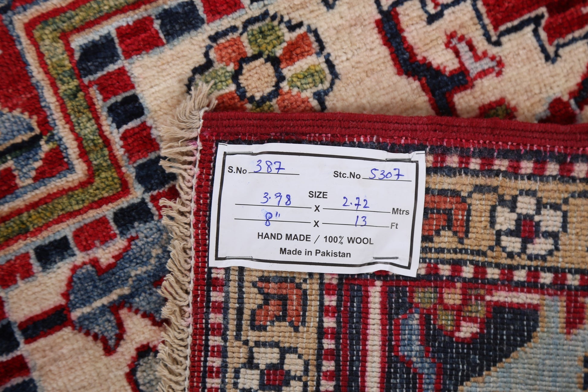 A Beautiful Genuine Pakistan Heriz rug is Hand Knotted by skillful weavers in Pakistan with 100% Wool Material. This rug is in New, First Quality condition. dimensions are 13' 0'' X 8' 11'' in foot and 396 X 272 in centimeter. the primary color is Red.