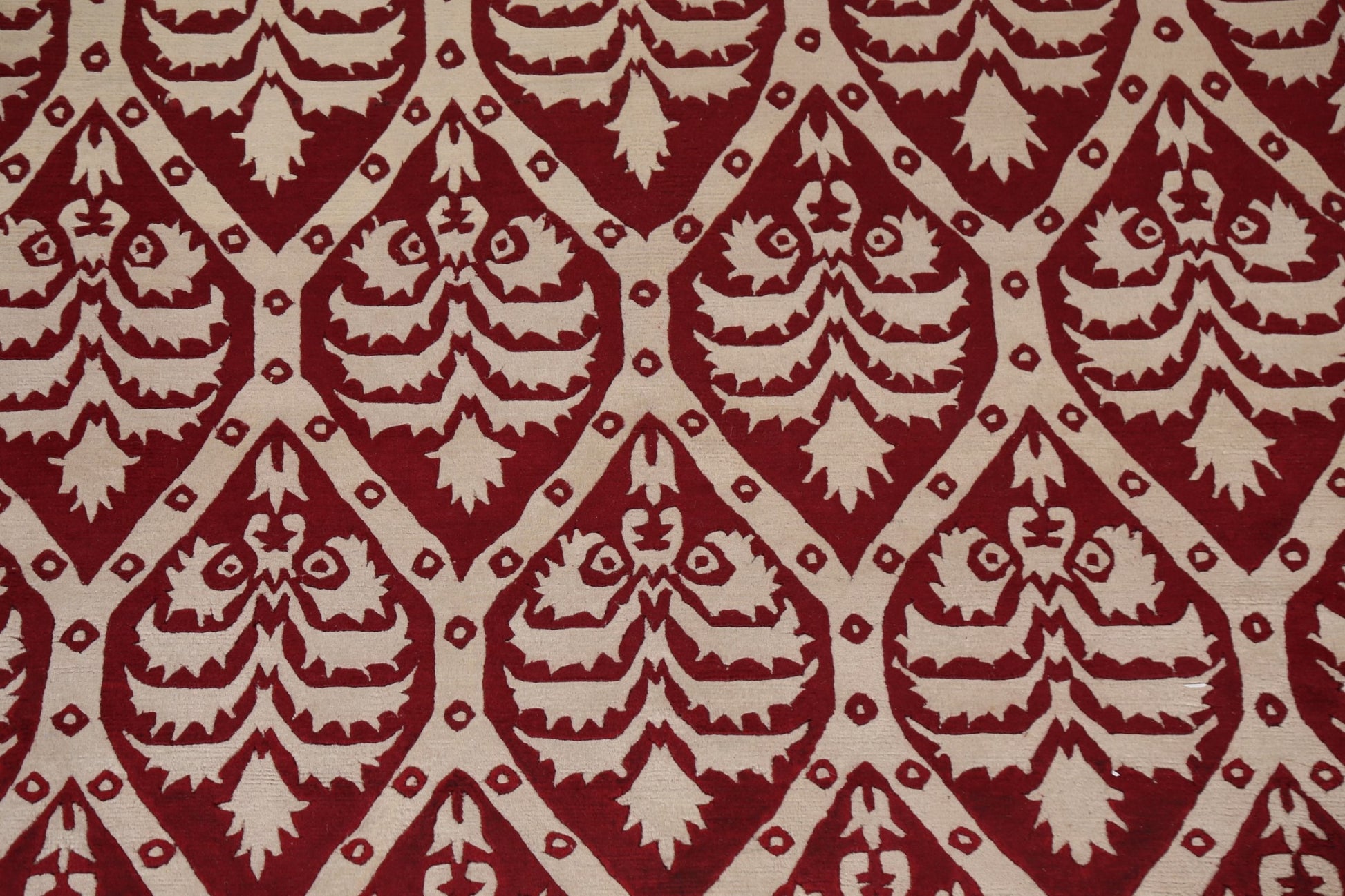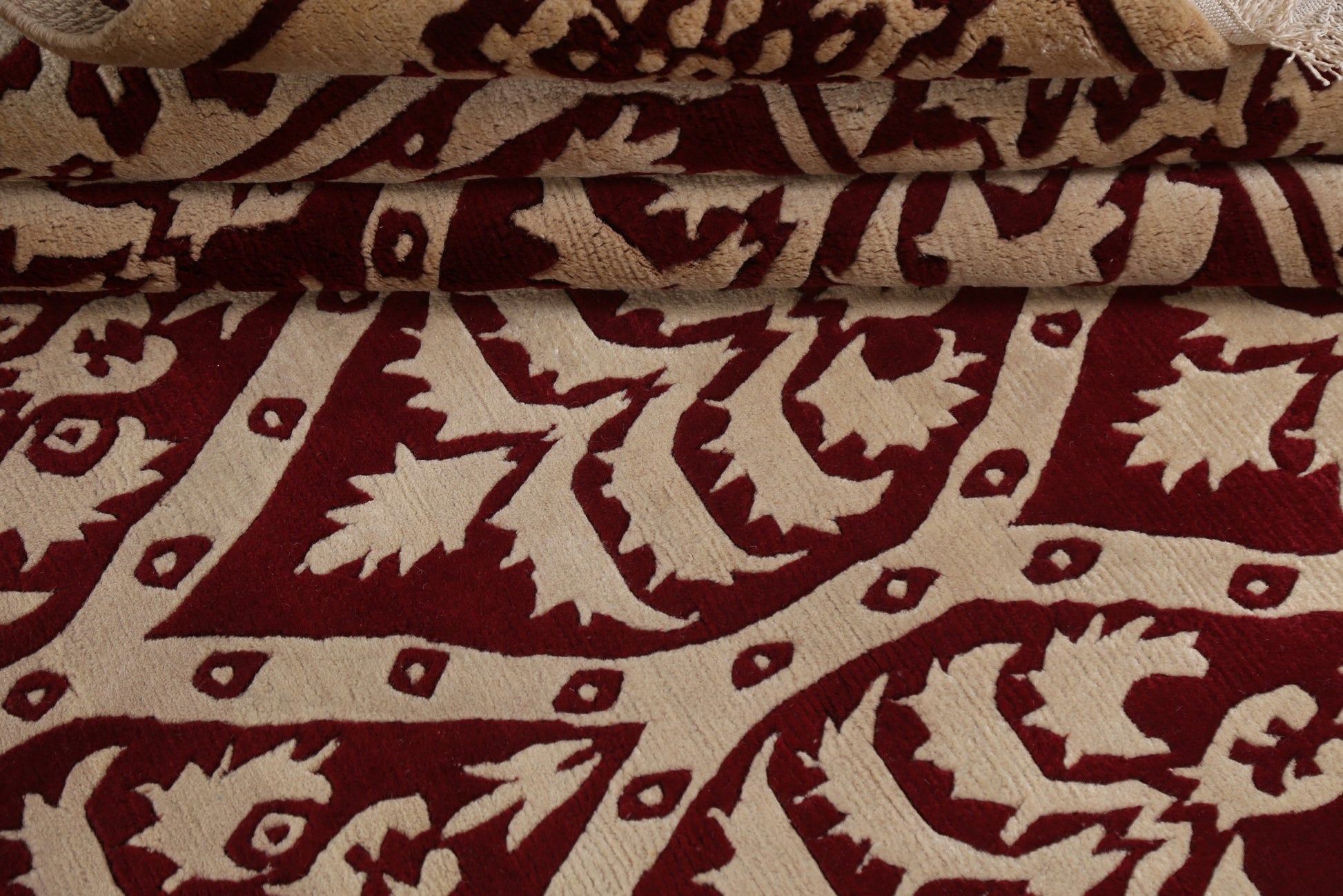 Vegetable Dye Red/ Ivory Nepalese Wool Area Rug 9x11