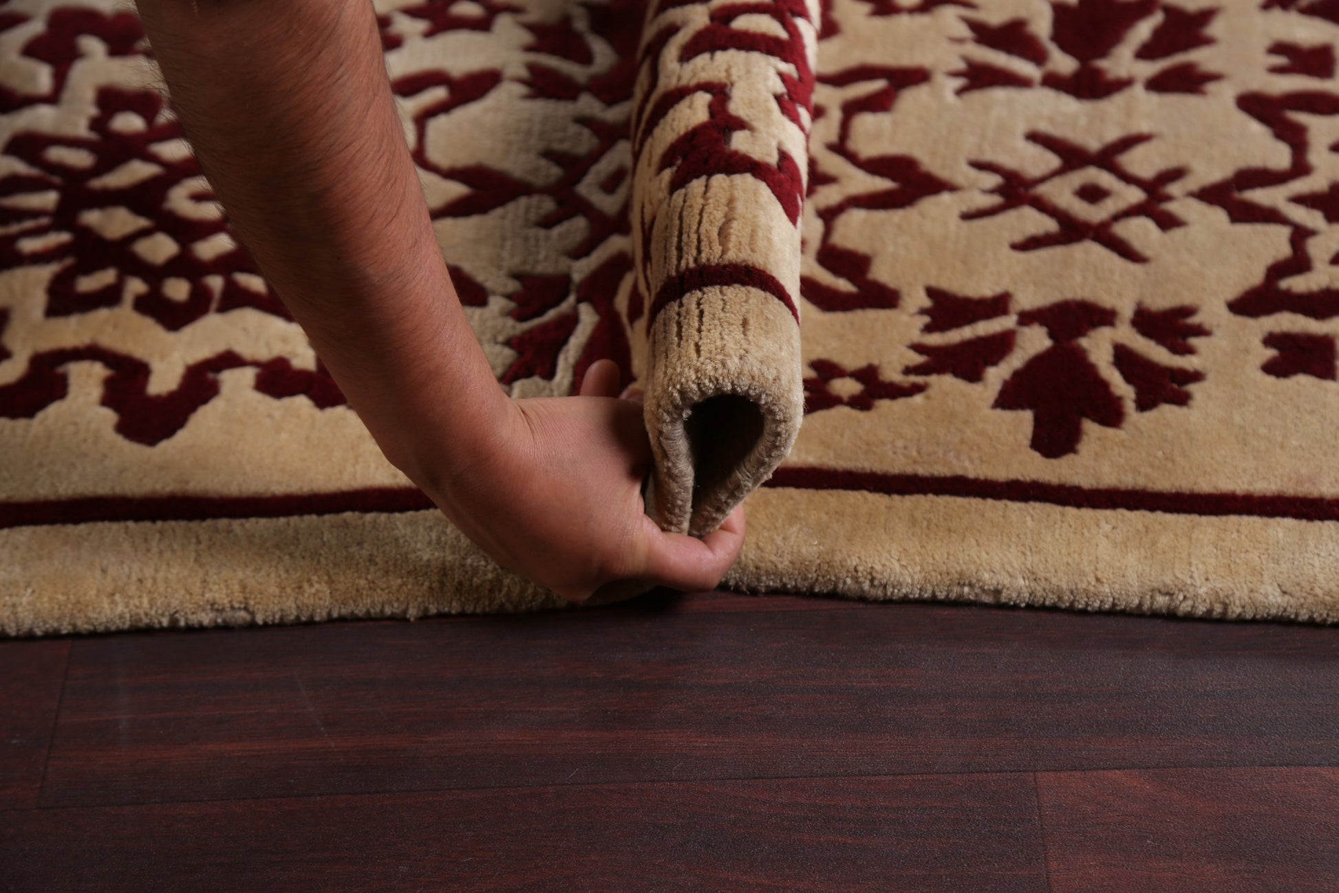 A Beautiful Genuine India Nepalese rug is Hand Knotted by skillful weavers in India with 100% Wool Material. This rug is in New, First Quality condition. dimensions are 11' 3'' X 8' 8'' in foot and 343 X 264 in centimeter. the primary color is Red.