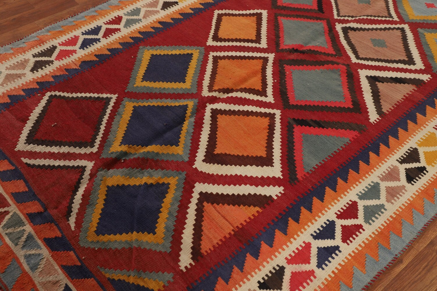 A Beautiful Genuine Persia ( Persia ) Kilim (Qashqai) rug is Hand Woven by skillful weavers in Persia ( Persia ) with 100% Wool Material. This rug is in Very Good condition. dimensions are 8' 1'' X 4' 1'' in foot and 246 X 124 in centimeter. the primary color is Red.