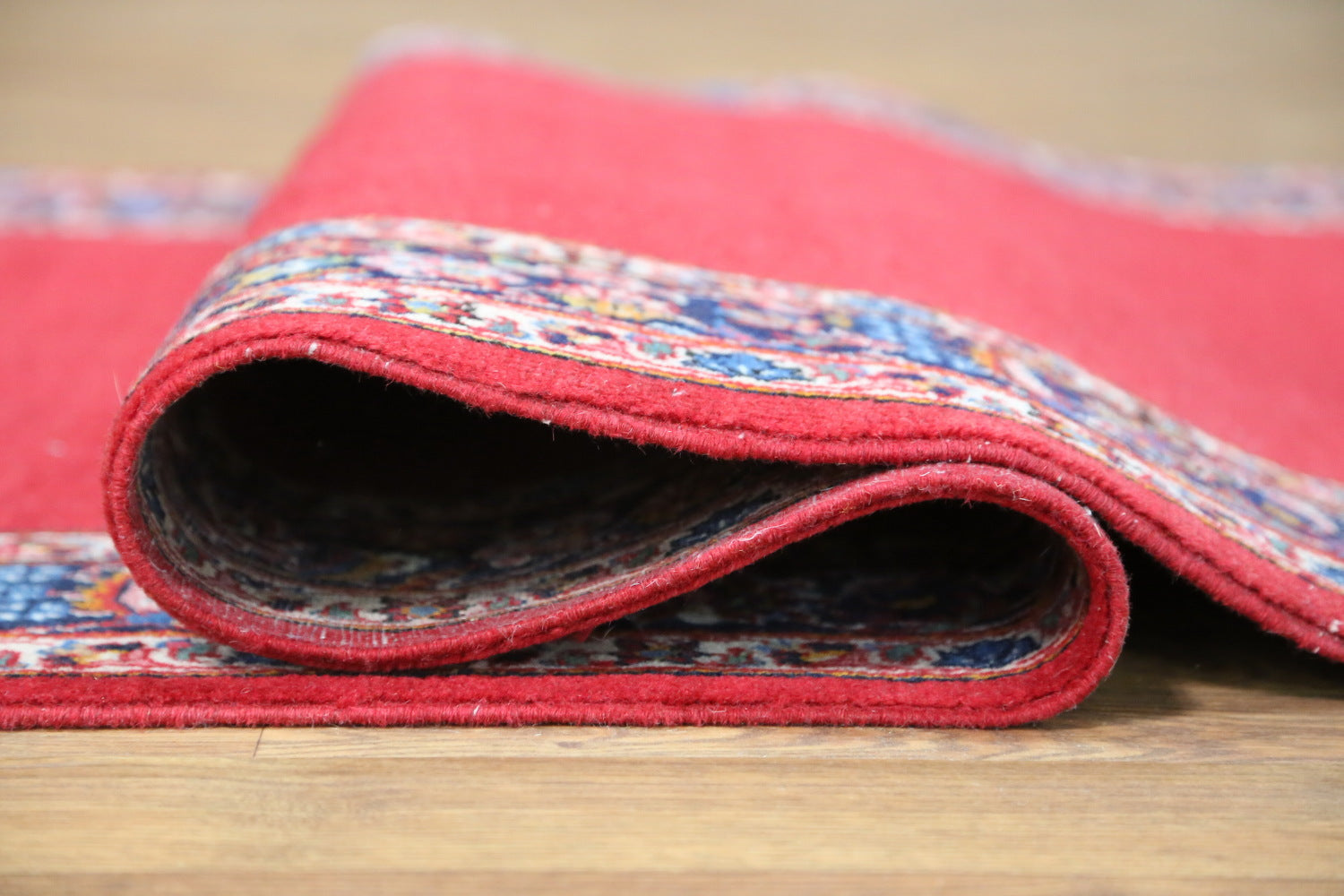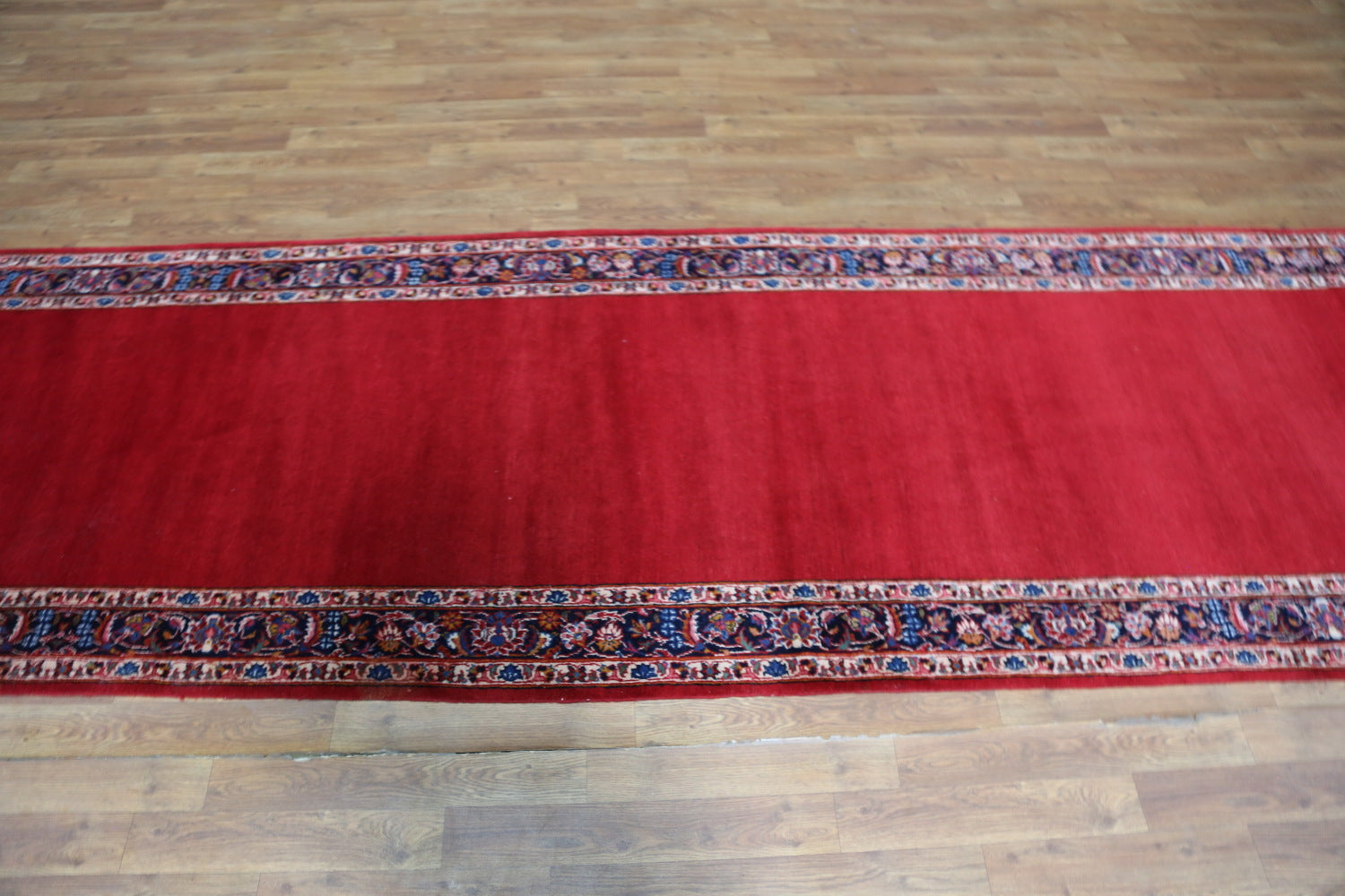 Vegetable Dye Red Solid Kashan Persian Runner Rug 3x33