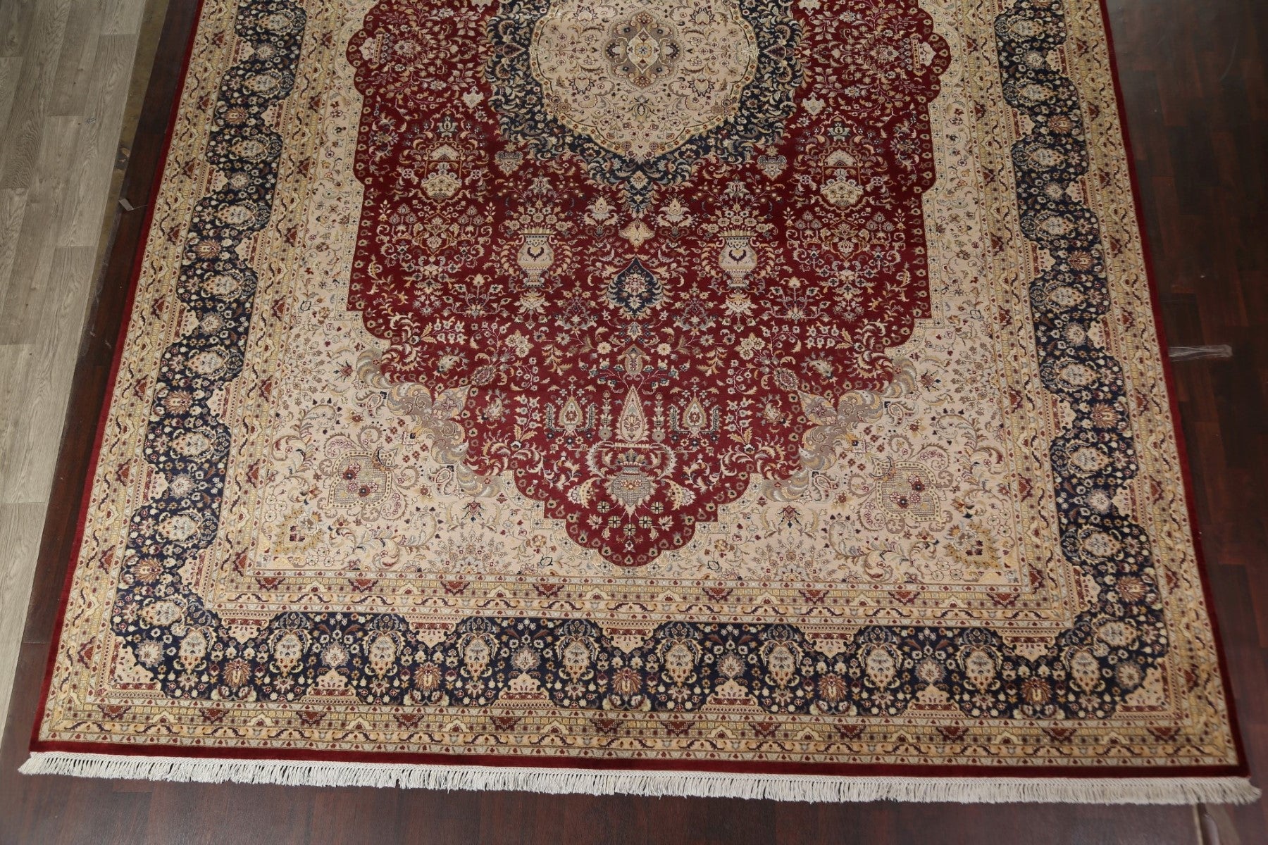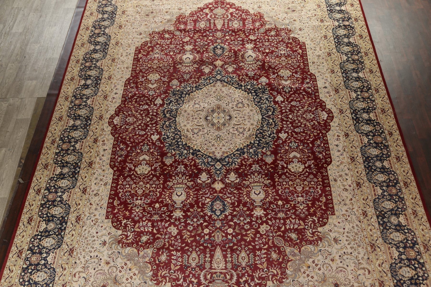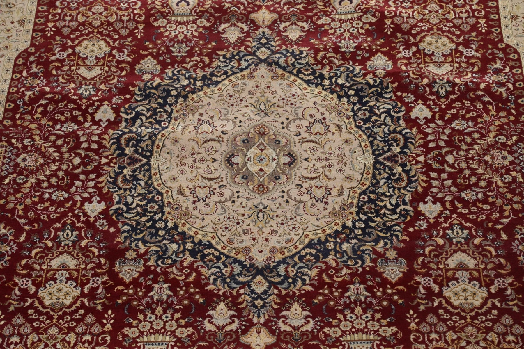 A Beautiful Genuine Pakistan Tabriz rug is Hand Knotted by skillful weavers in Pakistan with 100% Wool Material. This rug is in New, First Quality condition. dimensions are 18' 1'' X 12' 2'' in foot and 551 X 371 in centimeter. the primary color is Red.