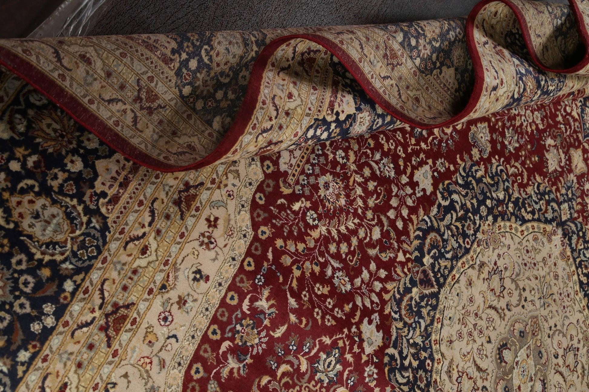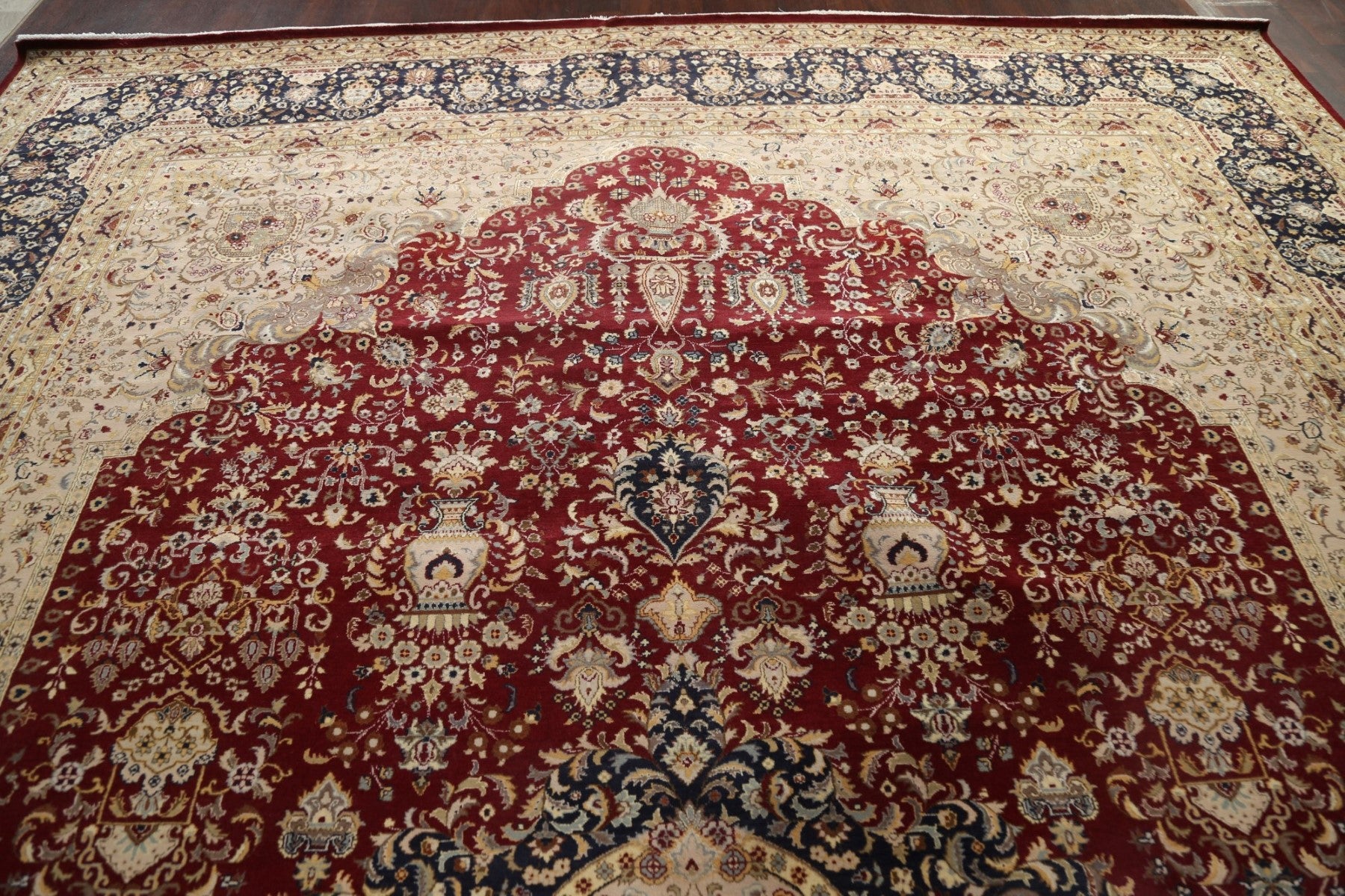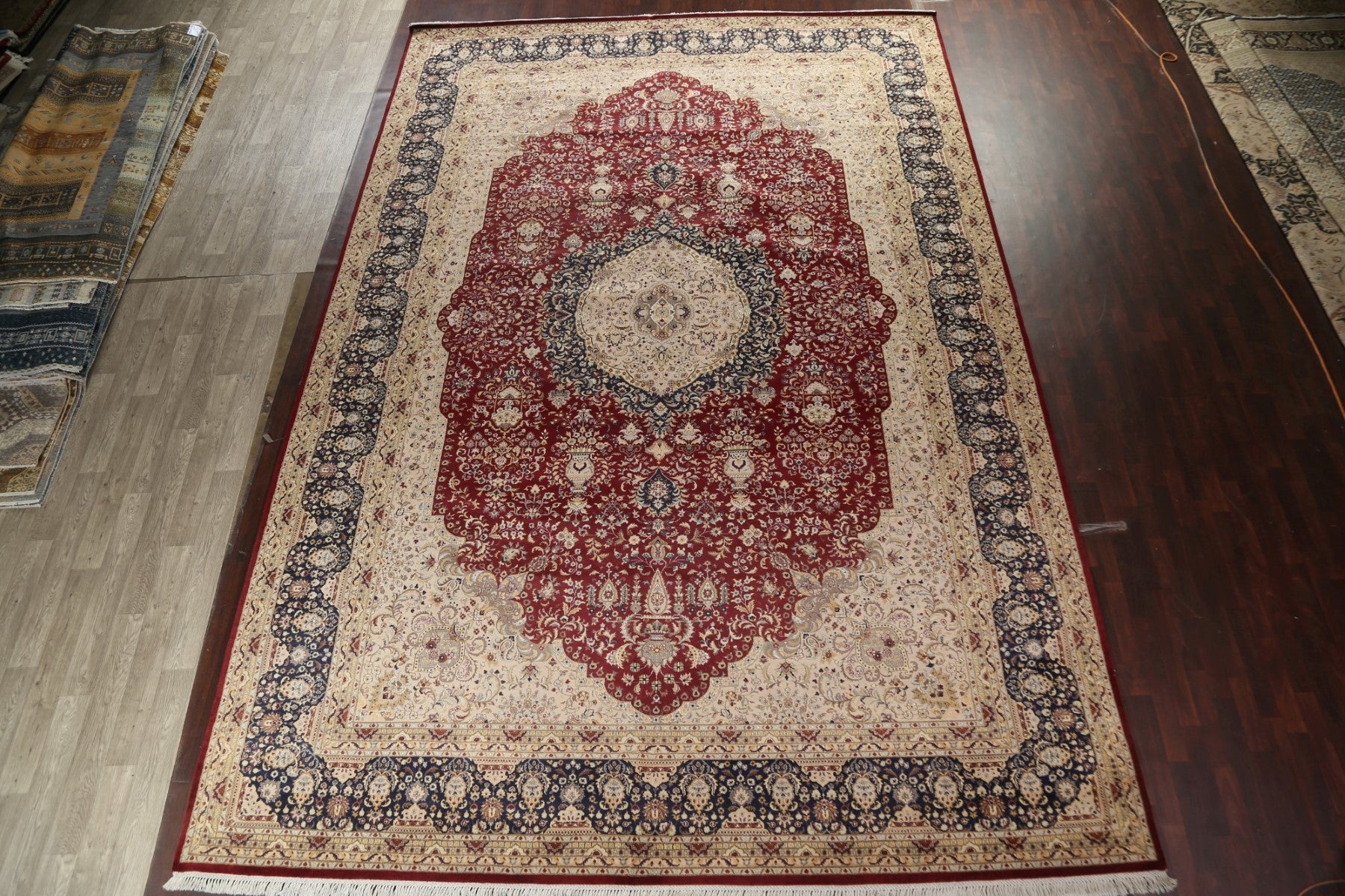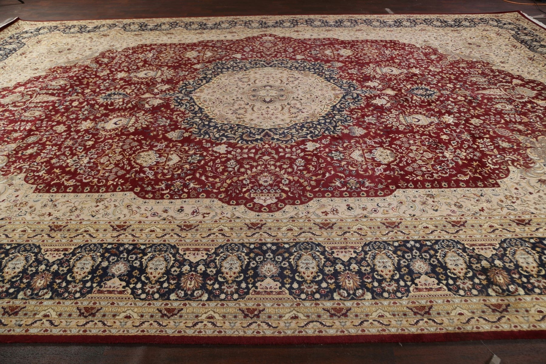 A Beautiful Genuine Pakistan Tabriz rug is Hand Knotted by skillful weavers in Pakistan with 100% Wool Material. This rug is in New, First Quality condition. dimensions are 18' 1'' X 12' 2'' in foot and 551 X 371 in centimeter. the primary color is Red.
