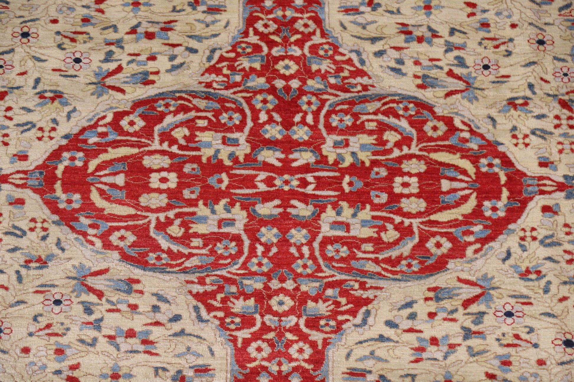 A Beautiful Genuine Pakistan Sarouk (Farahan) rug is Hand Knotted by skillful weavers in Pakistan with 100% Wool Material. This rug is in condition. dimensions are 9' 10'' X 8' 2'' in foot and 300 X 249 in centimeter. the primary color is Beige & Ivories.