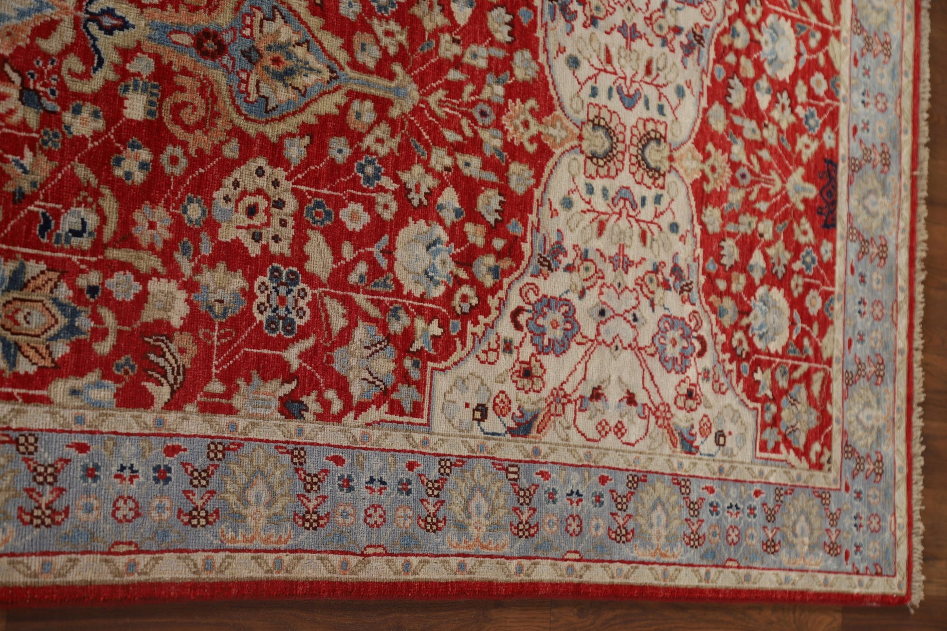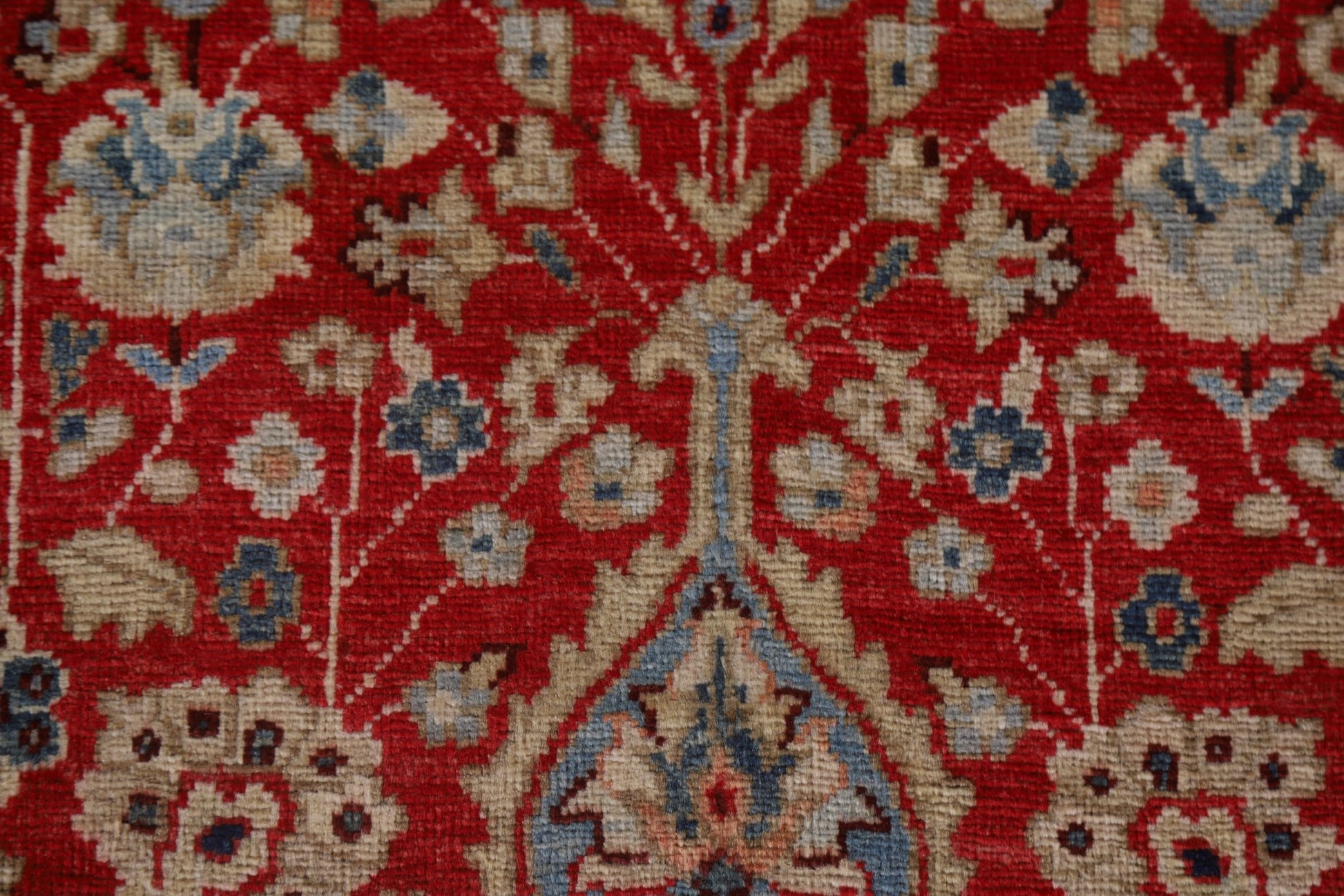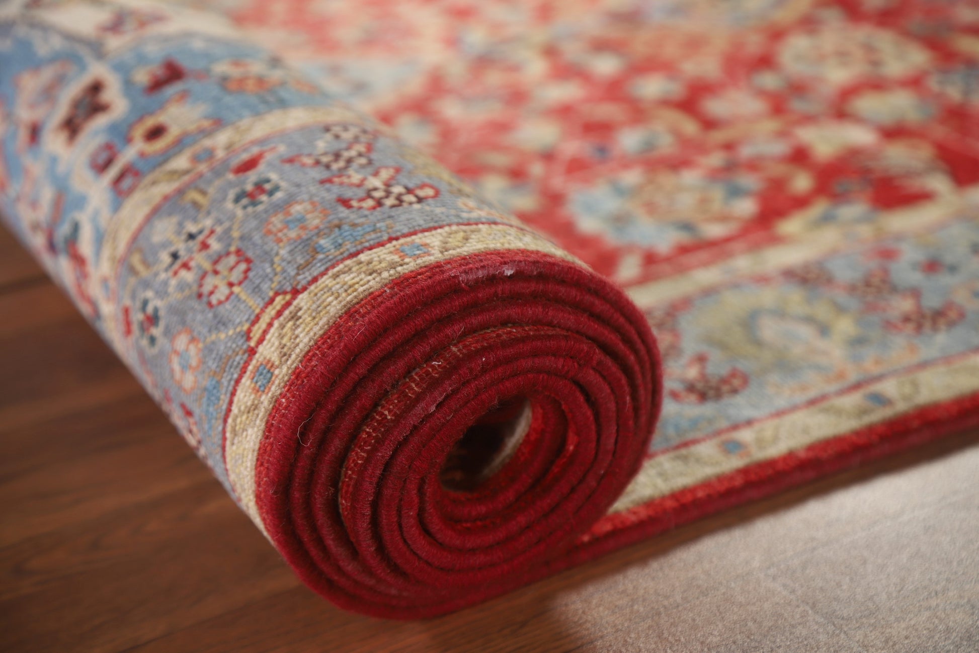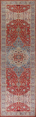 A Beautiful Genuine Pakistan Sarouk rug is Hand Knotted by skillful weavers in Pakistan with 100% Wool Material. This rug is in condition. dimensions are 11' 8'' X 3' 1'' in foot and 356 X 94 in centimeter. the primary color is Red.