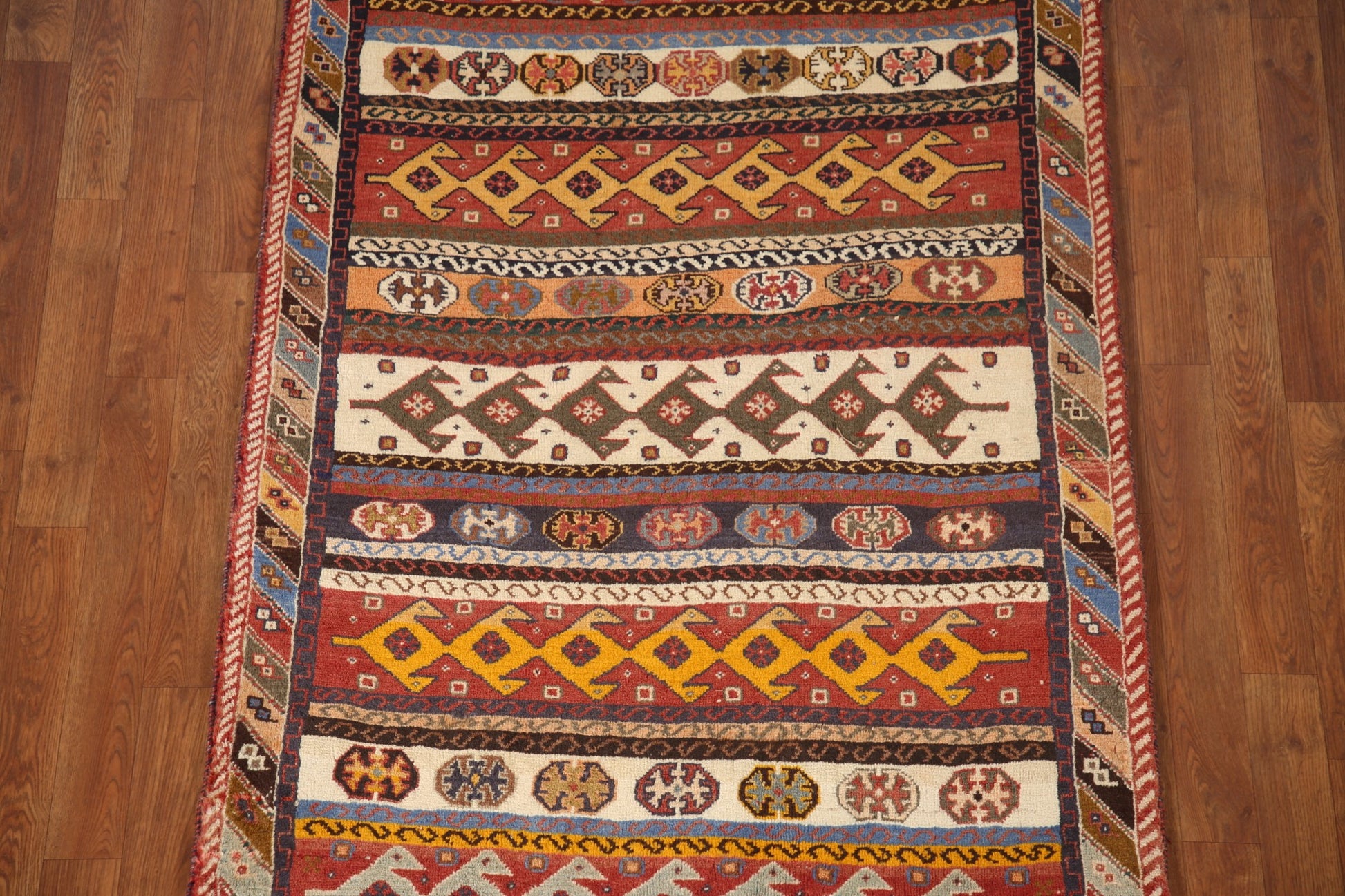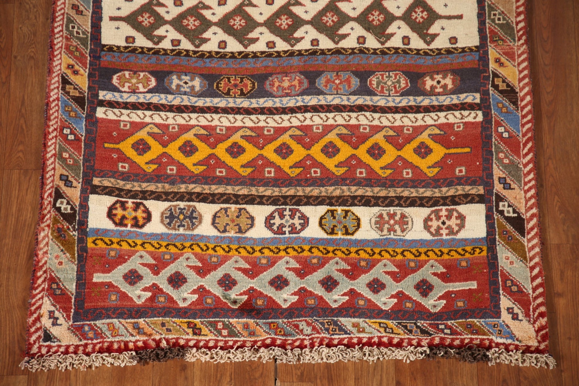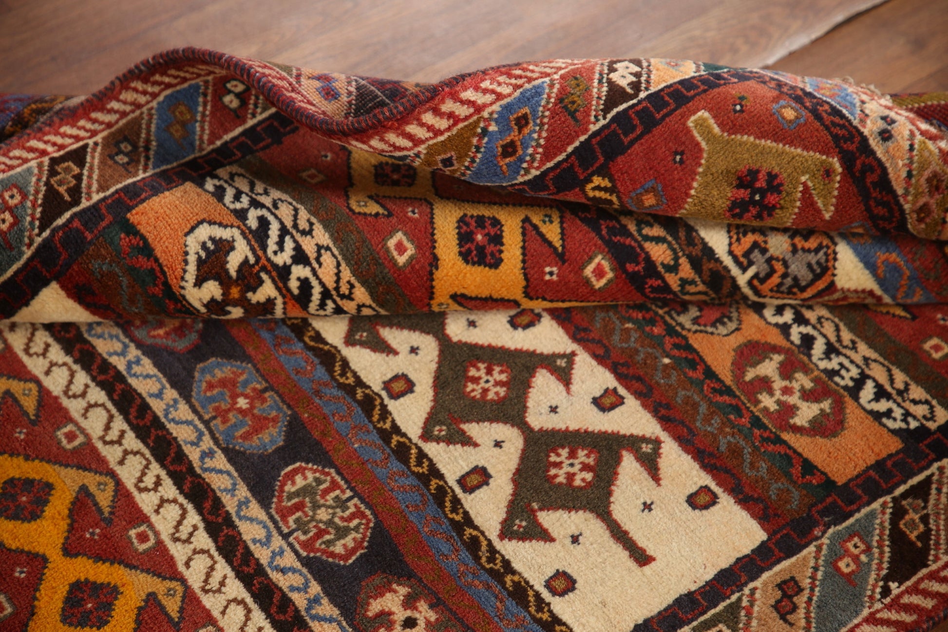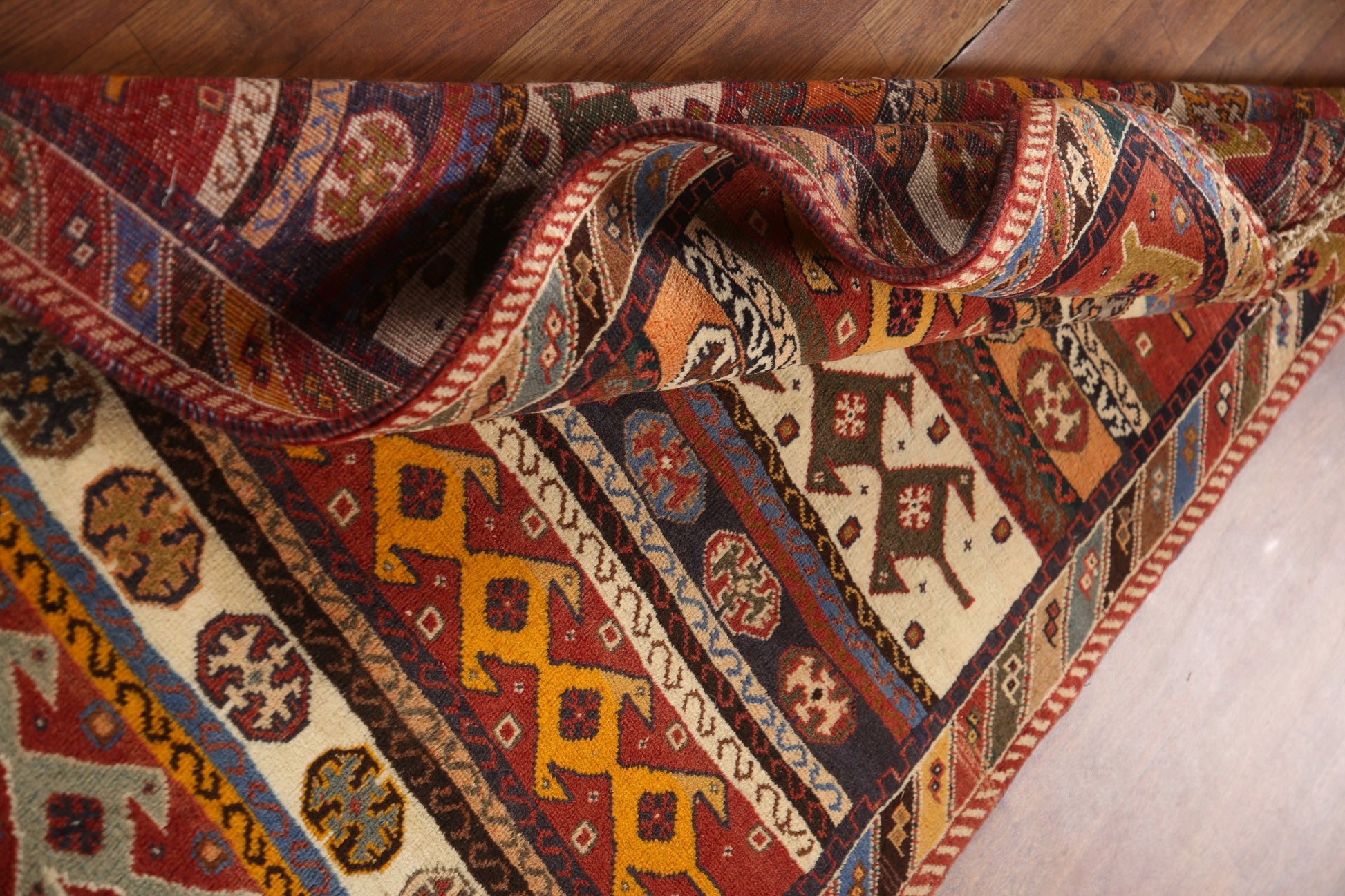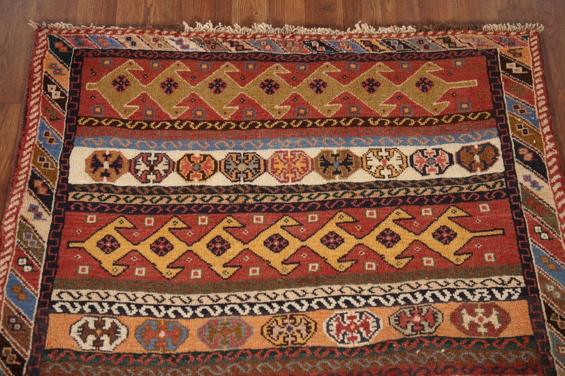 A Beautiful Genuine Persia ( Persia ) Shiraz (Kashkoli) rug is Hand Knotted by skillful weavers in Persia ( Persia ) with 100% Wool Material. This rug is in Excellent condition. dimensions are 5' 2'' X 3' 6'' in foot and 157 X 107 in centimeter. the primary color is Multi-Colored.
