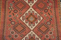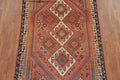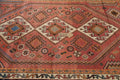A Beautiful Genuine Persia ( Persia ) Shiraz rug is Hand Knotted by skillful weavers in Persia ( Persia ) with 100% Wool Material. This rug is in Very Good (Low Pile-Abrash) condition. dimensions are 7' 9'' X 4' 10'' in foot and 236 X 147 in centimeter. the primary color is Red.