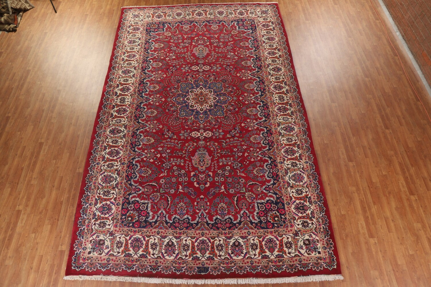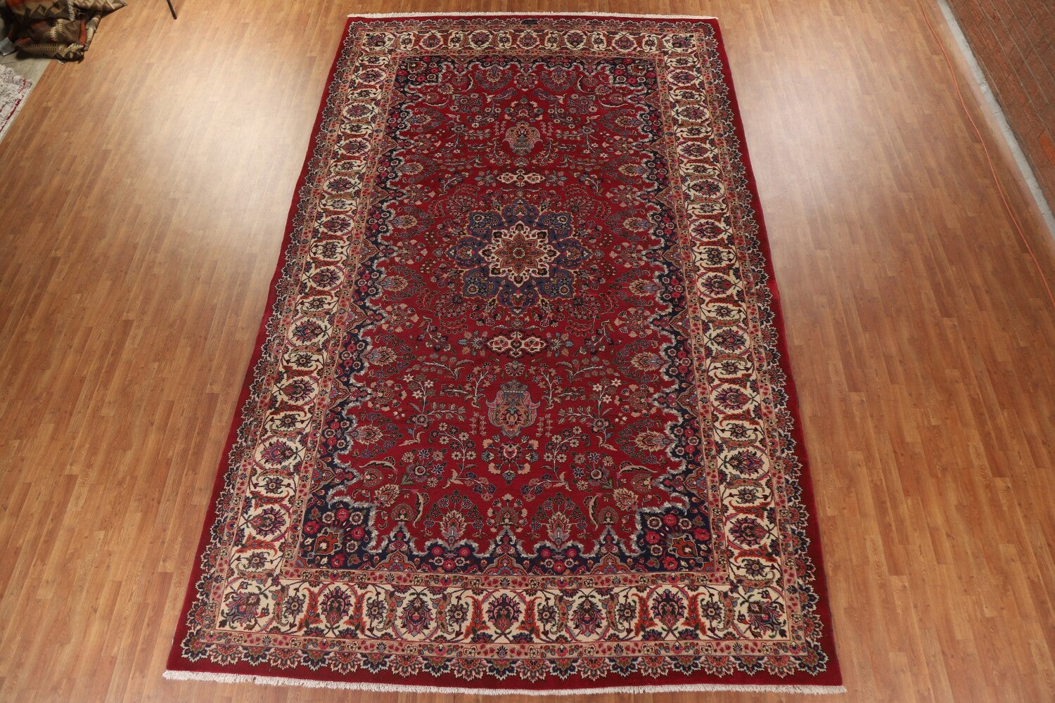A Beautiful Genuine Persia ( Persia ) Yazd rug is Hand Knotted by skillful weavers in Persia ( Persia ) with 100% Wool Material. This rug is in Very Good condition. dimensions are 16' 4'' X 10' 0'' in foot and 498 X 305 in centimeter. the primary color is Red.